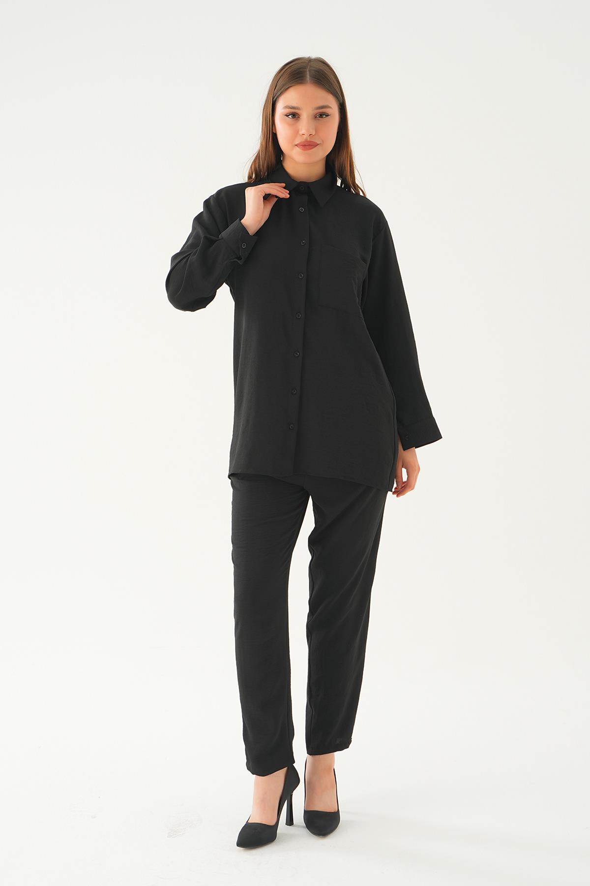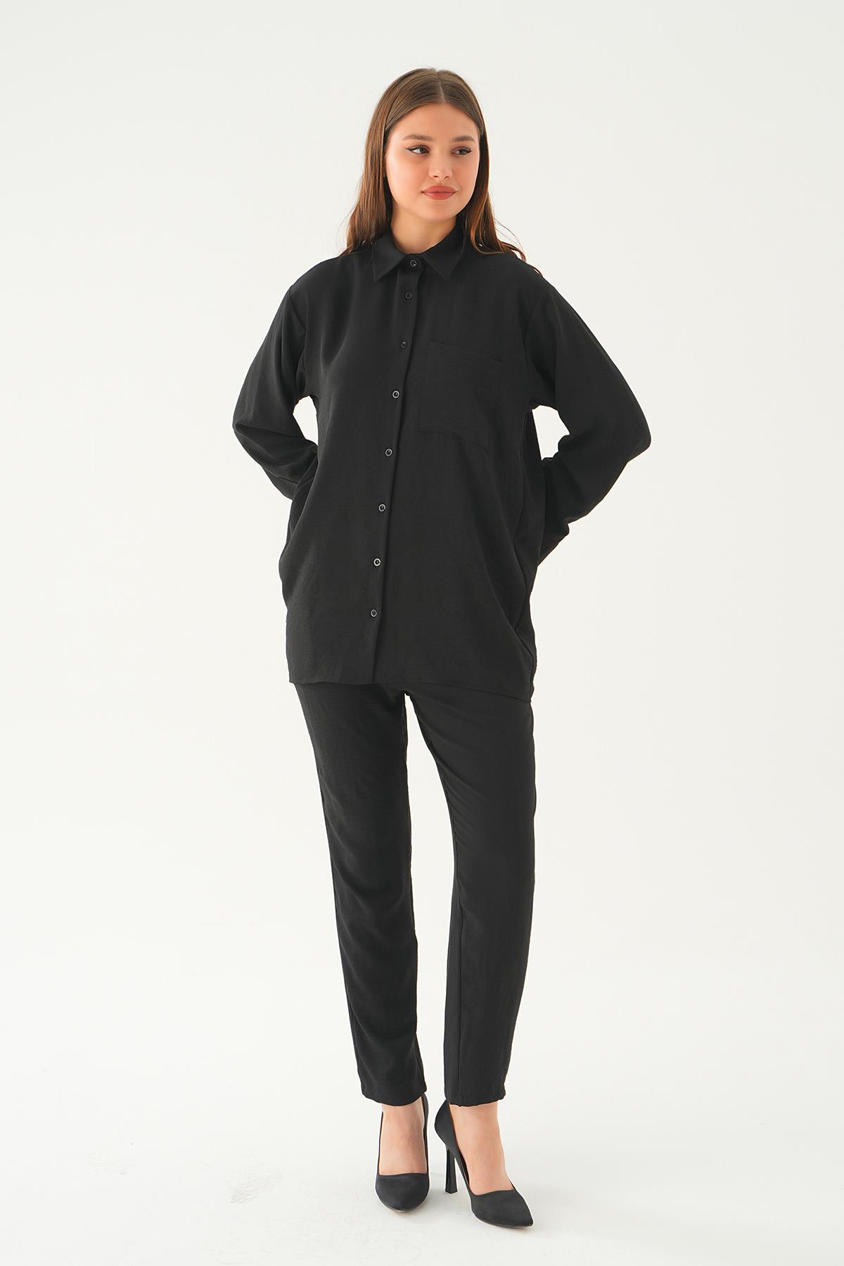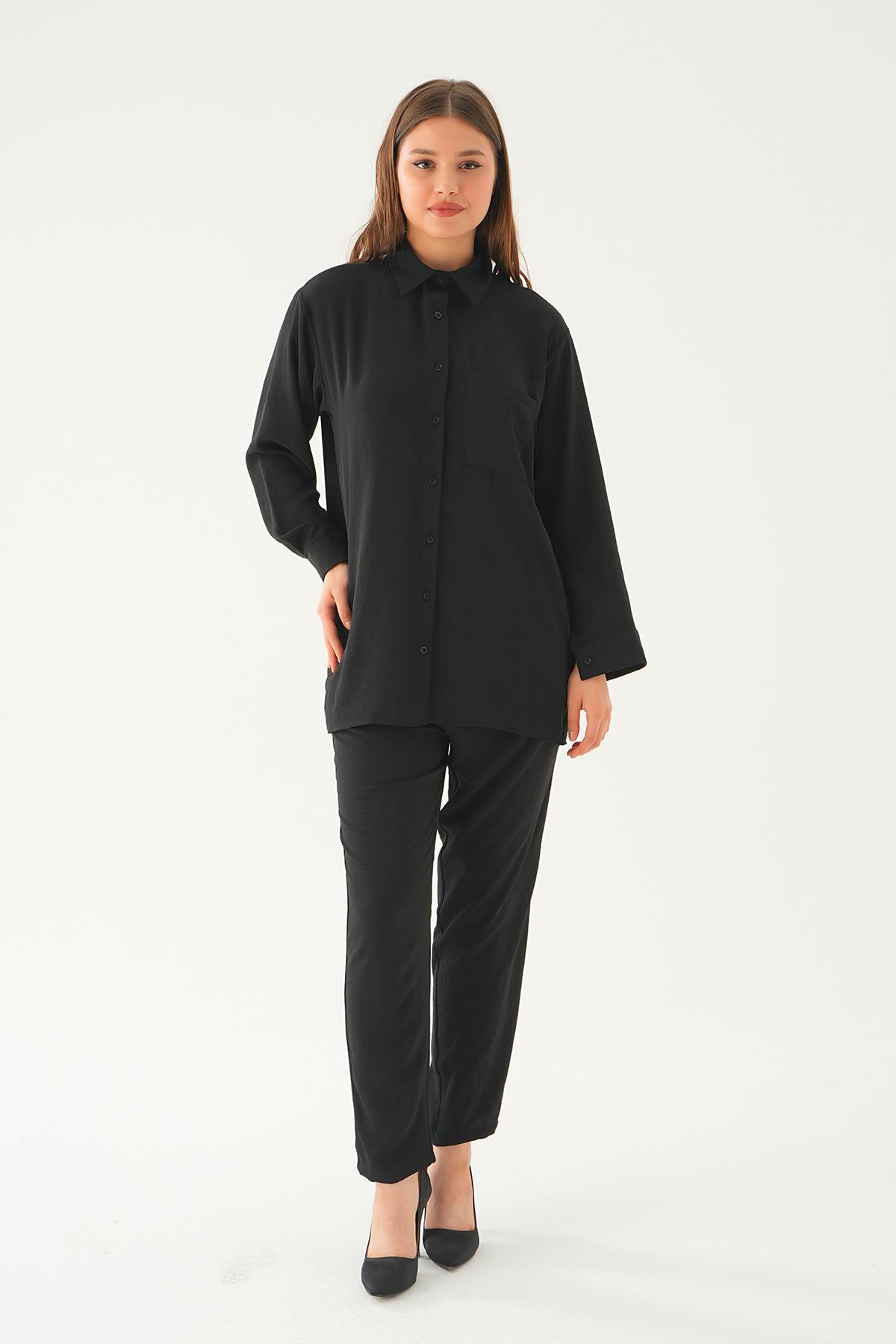 Siyah Tek Cep Gömlek-Pantolon Takım 6714A