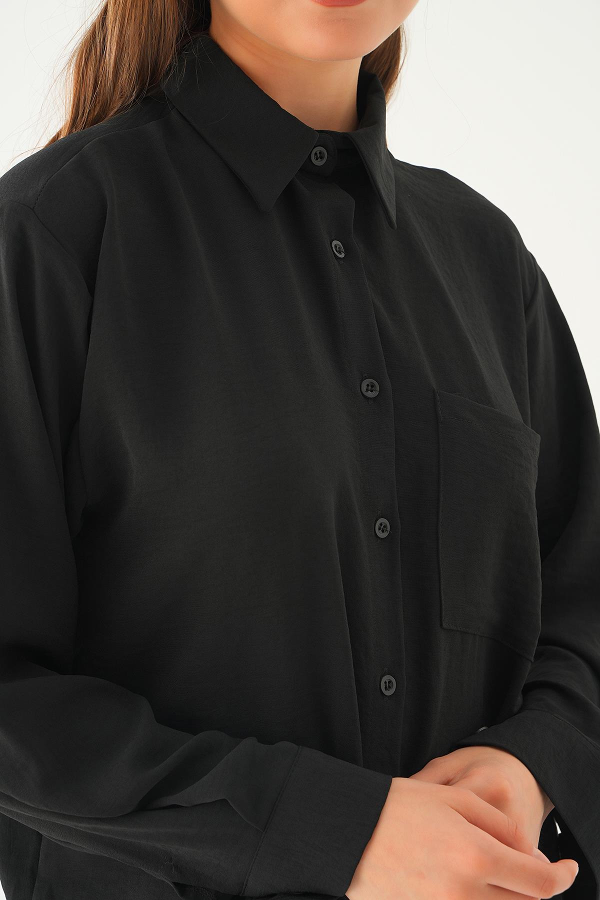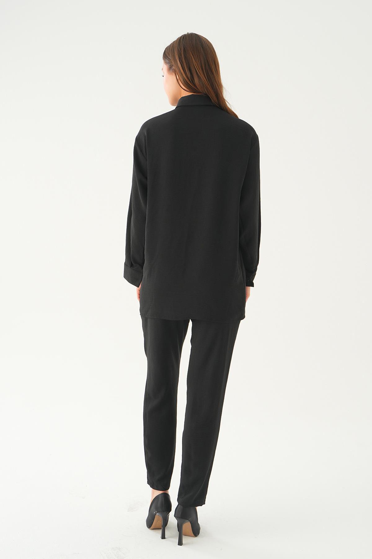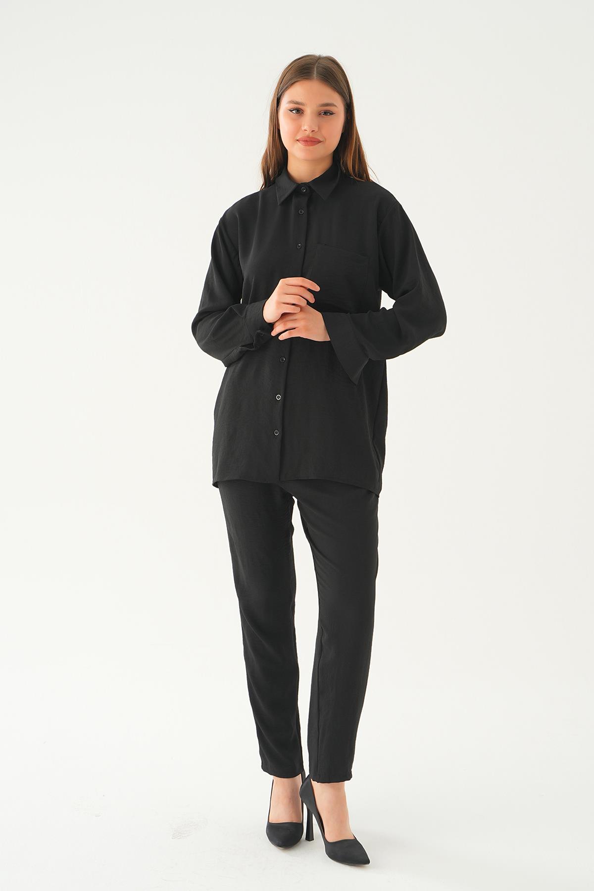 Siyah Tek Cep Gömlek-Pantolon Takım 6714A