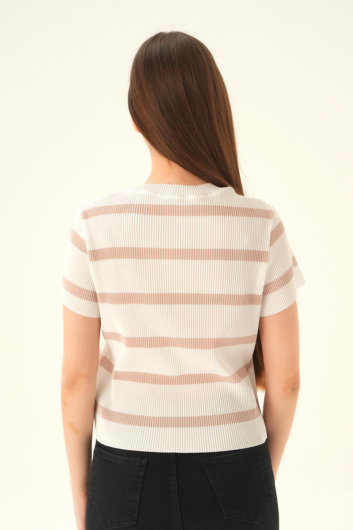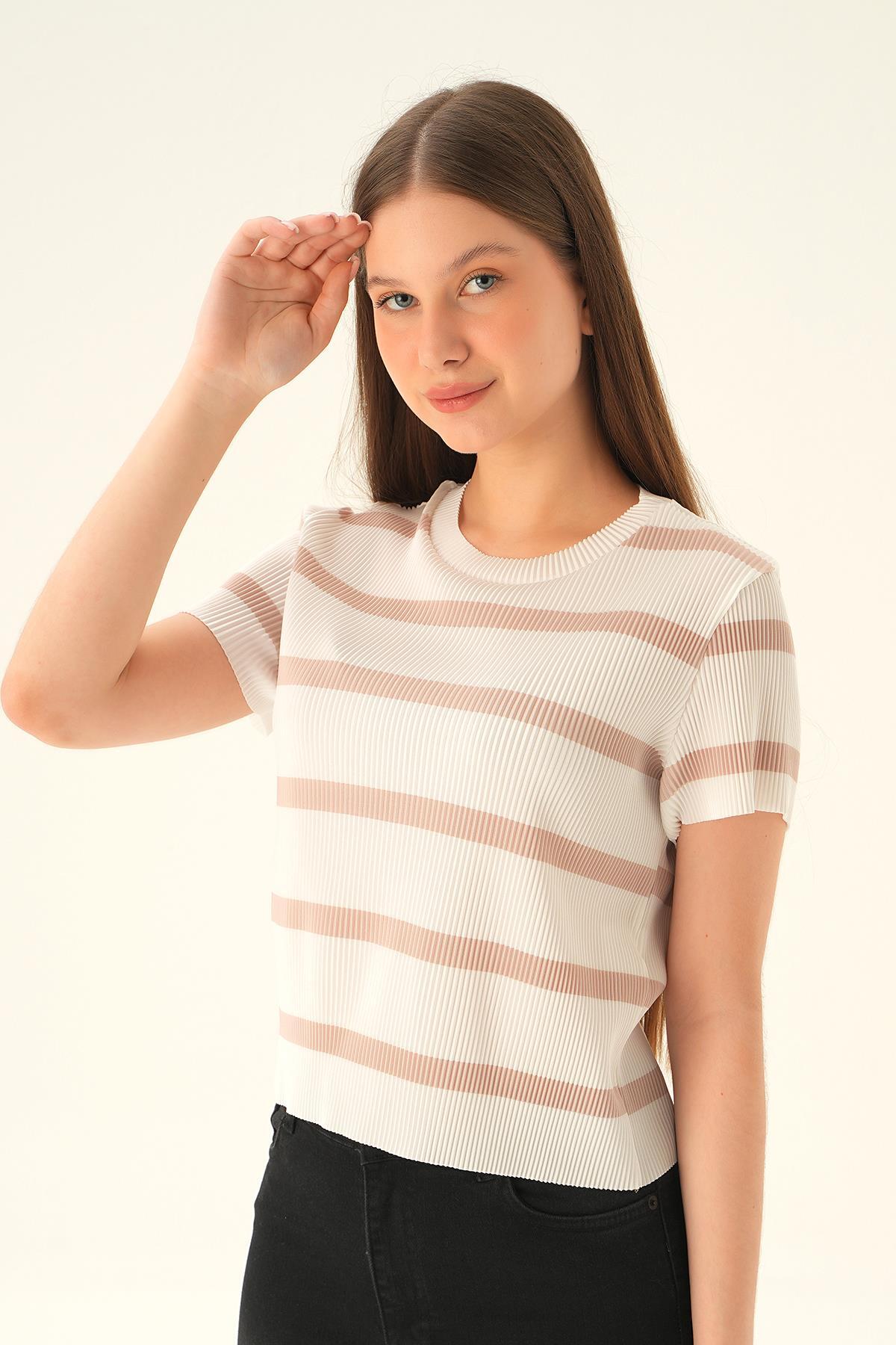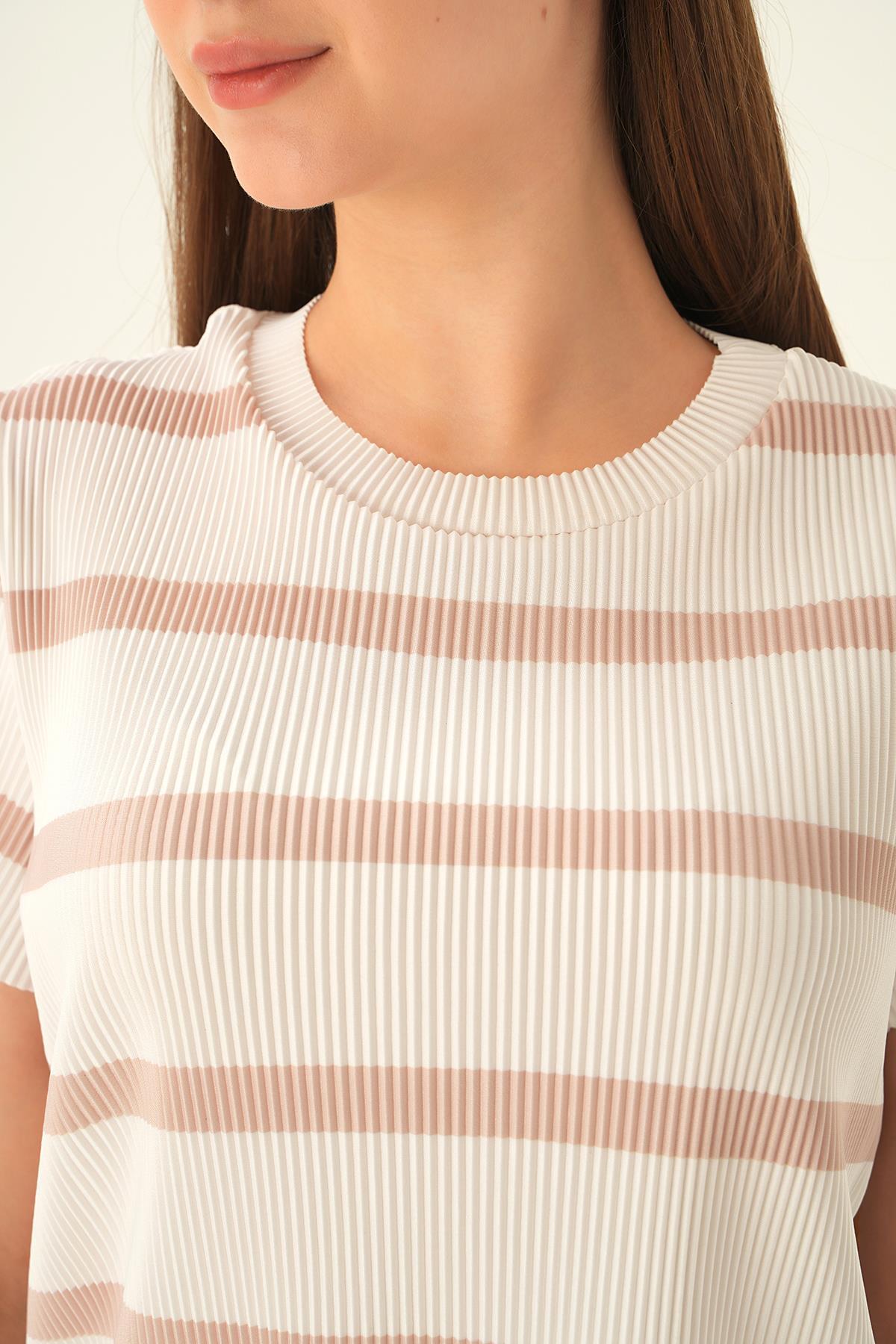 çizgili-bej Çizgi Detay Bluz 6720