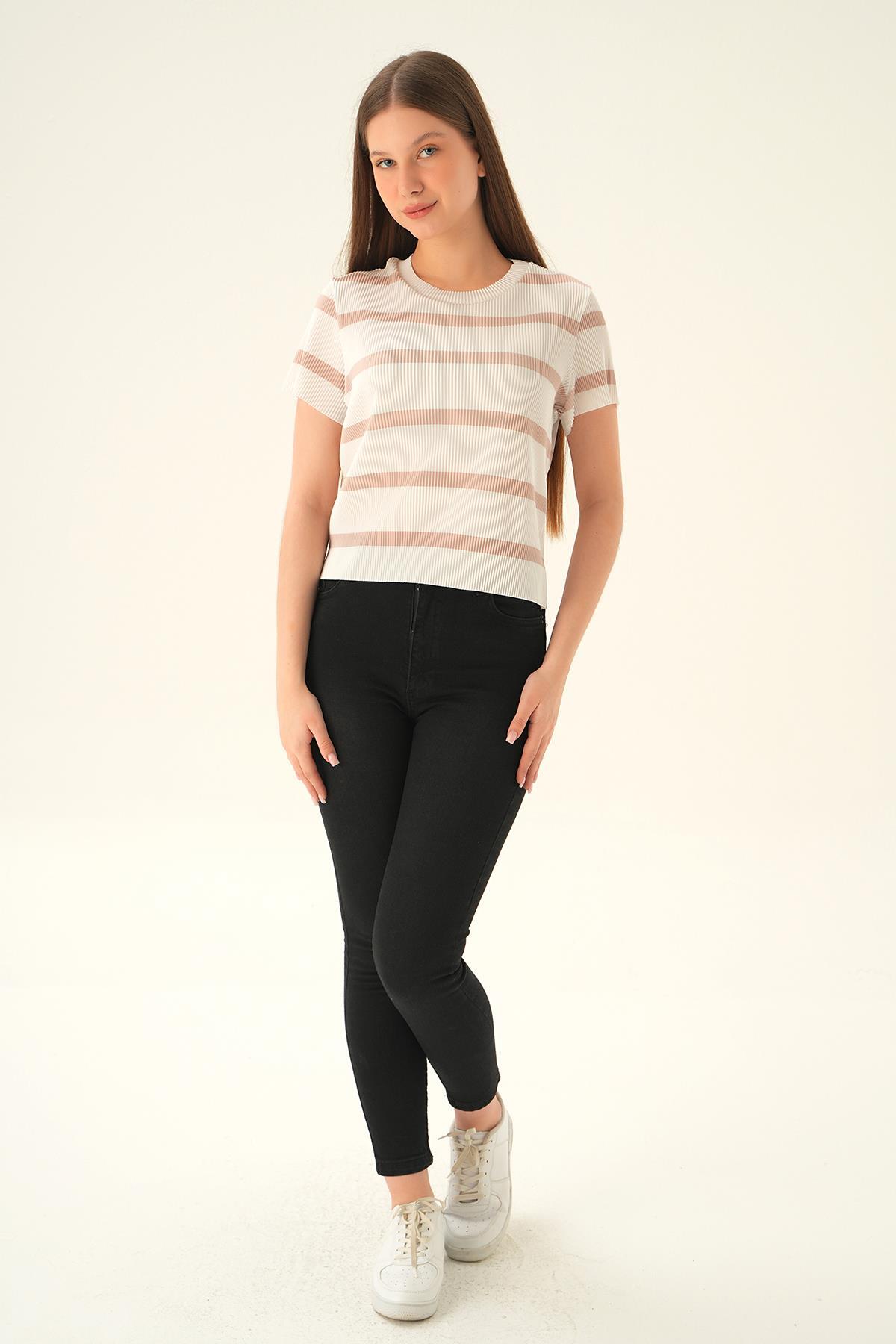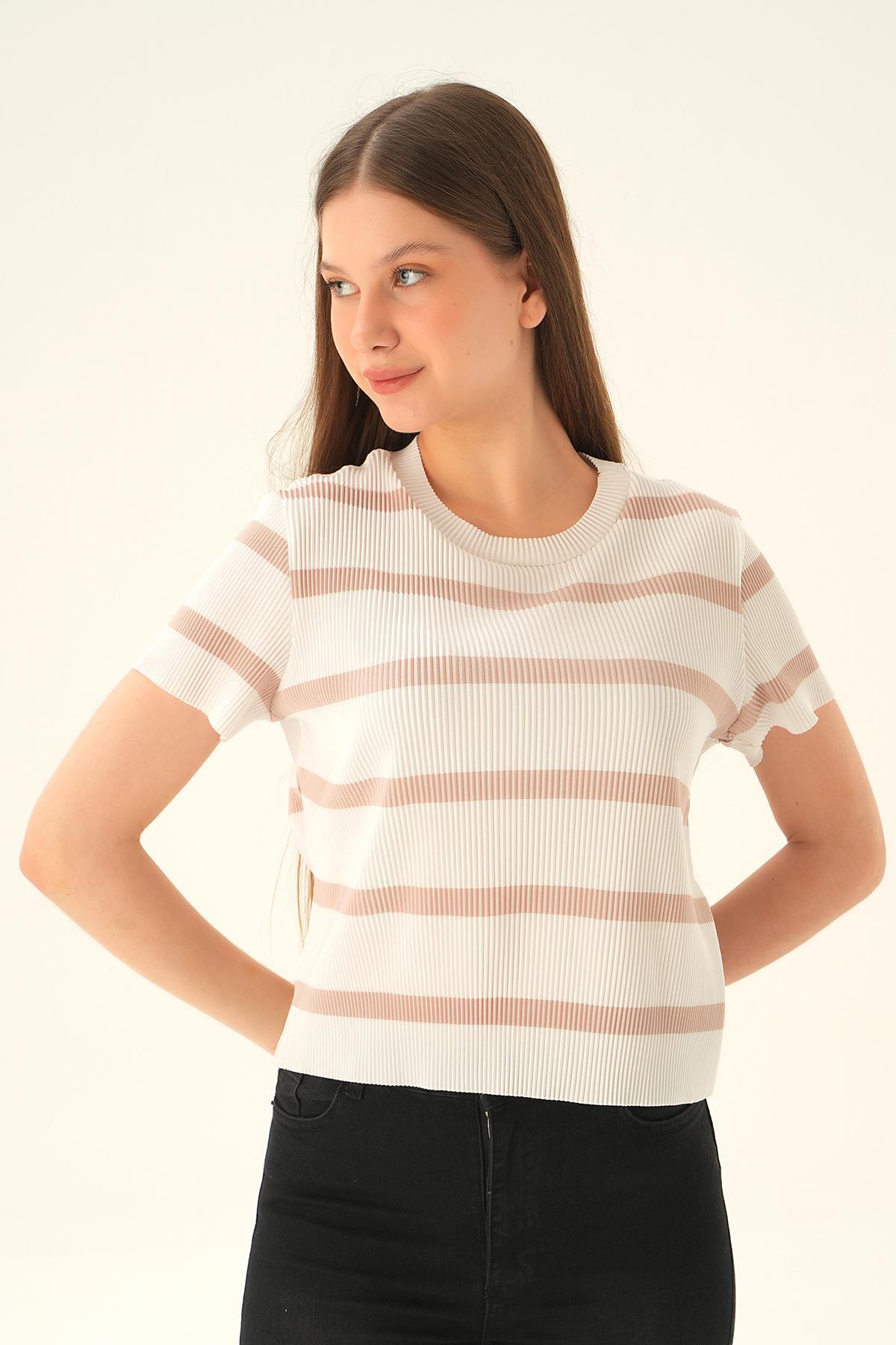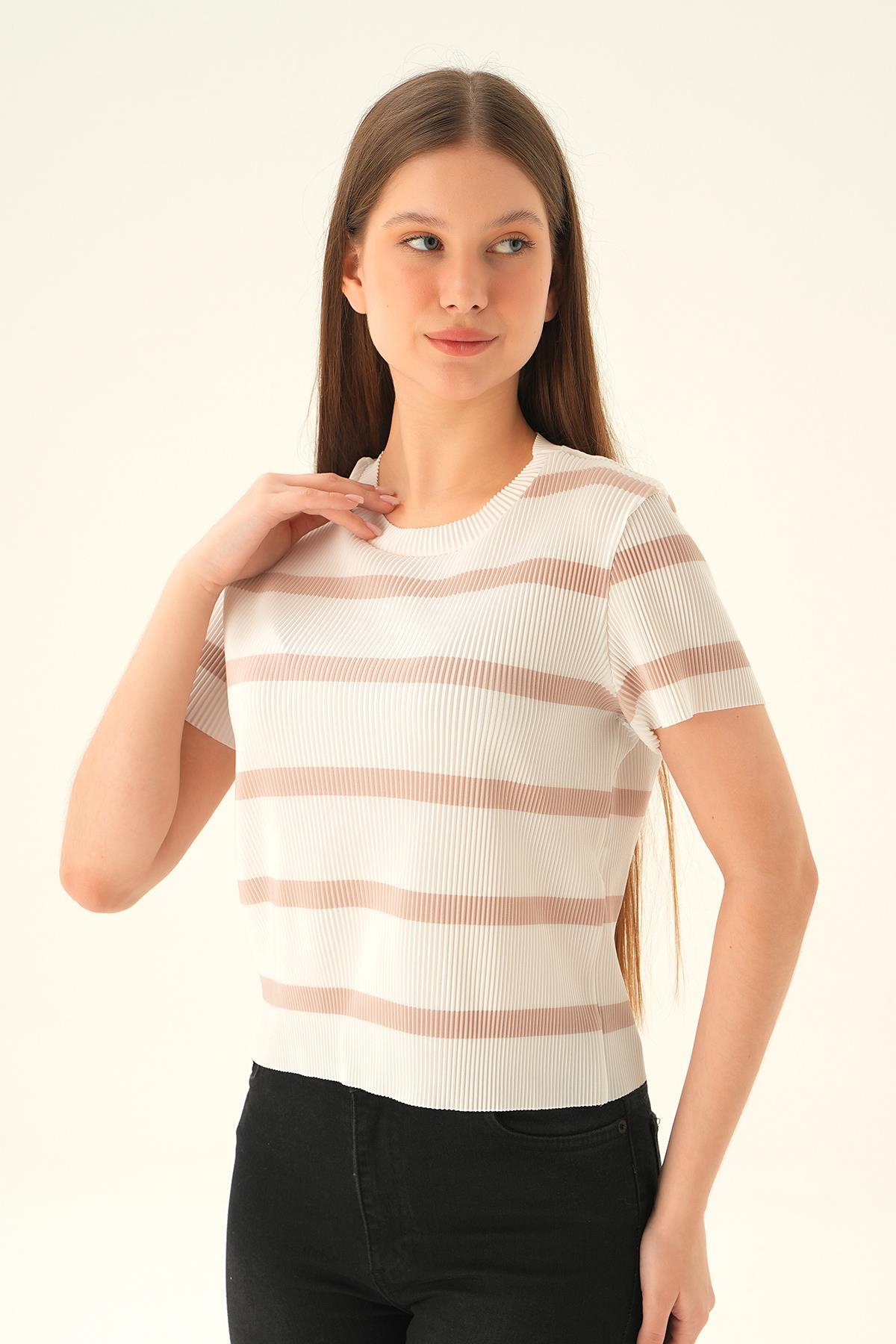 çizgili-bej Çizgi Detay Bluz 6720