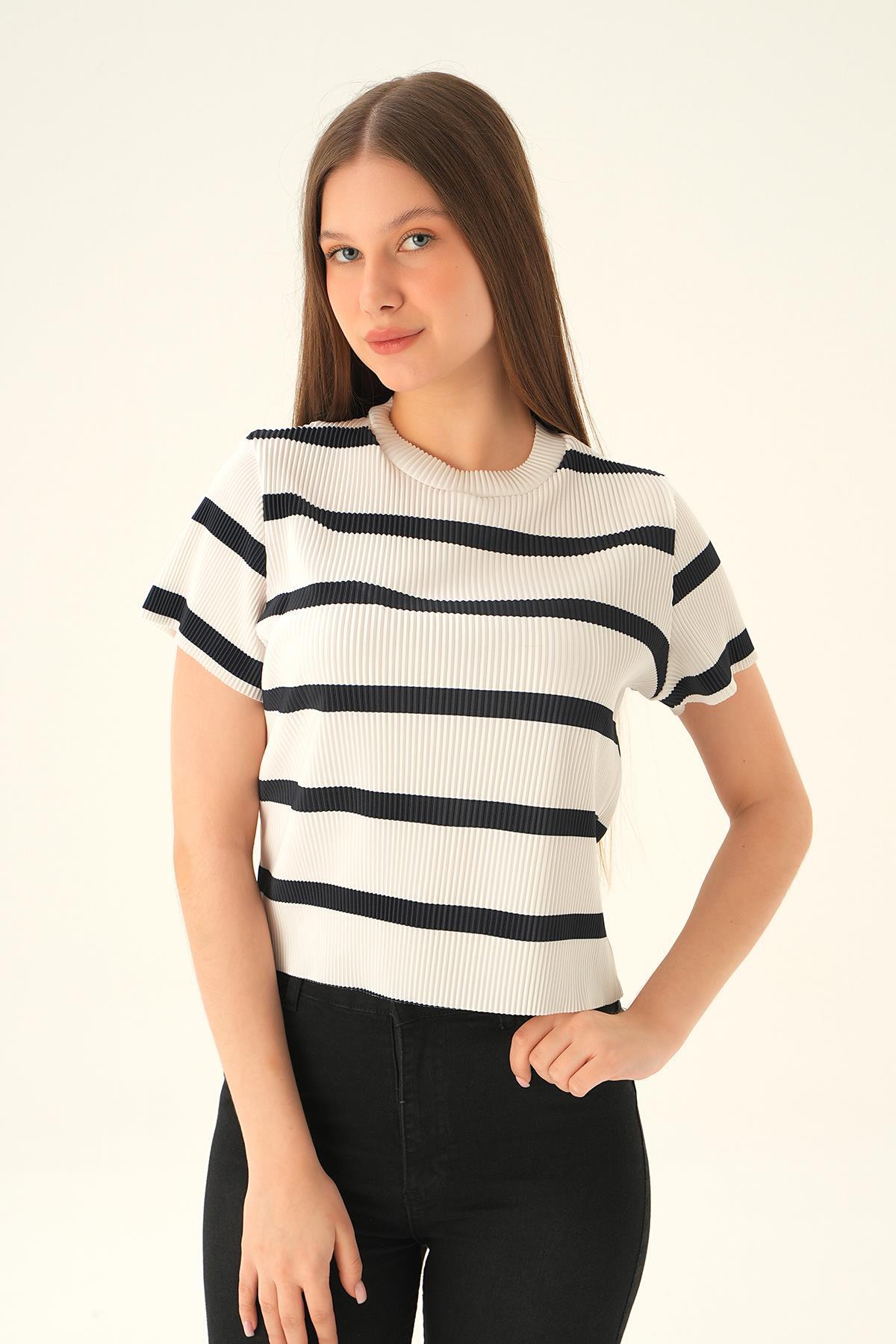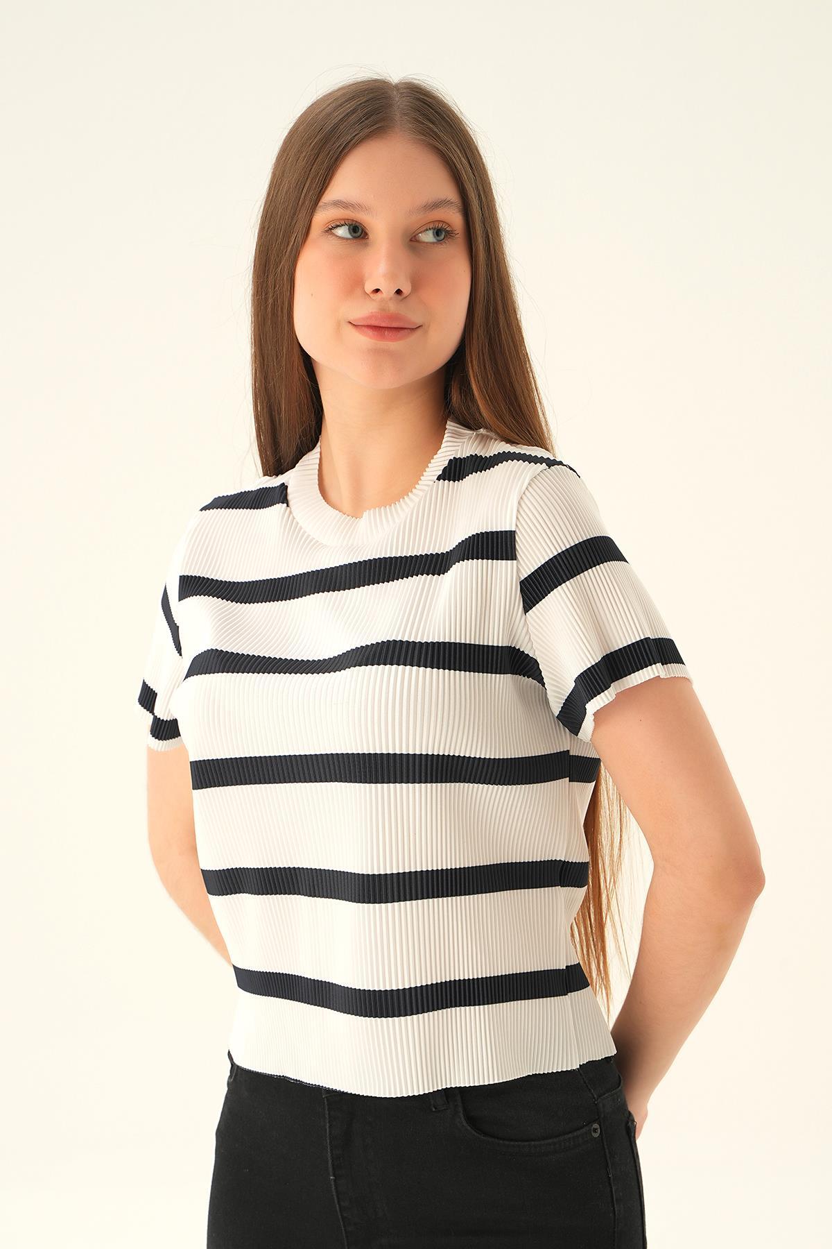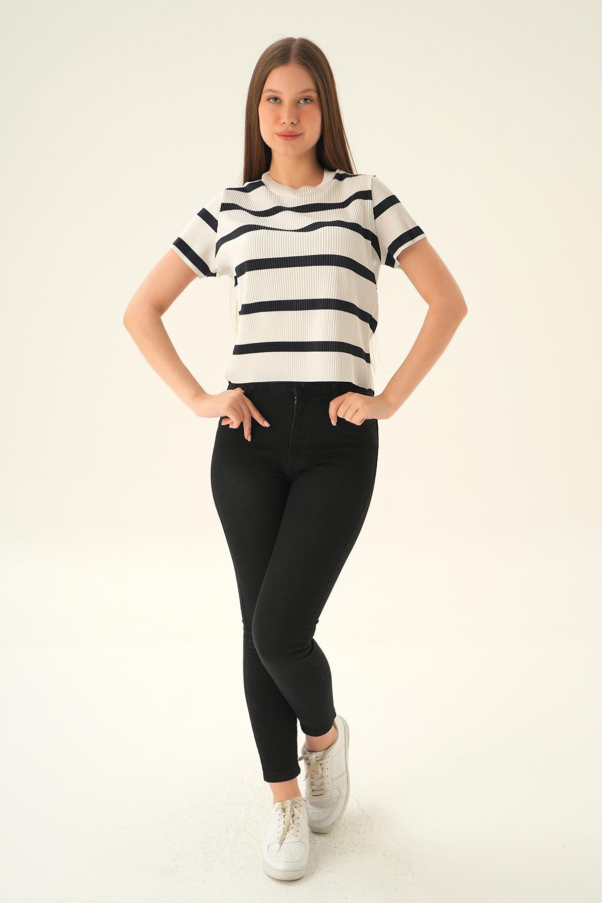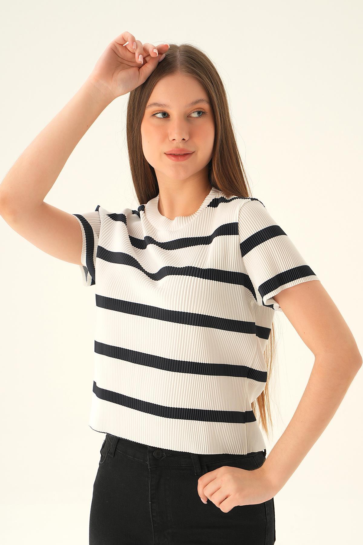 Çizgili-Siyah Çizgi Detay Bluz 6720