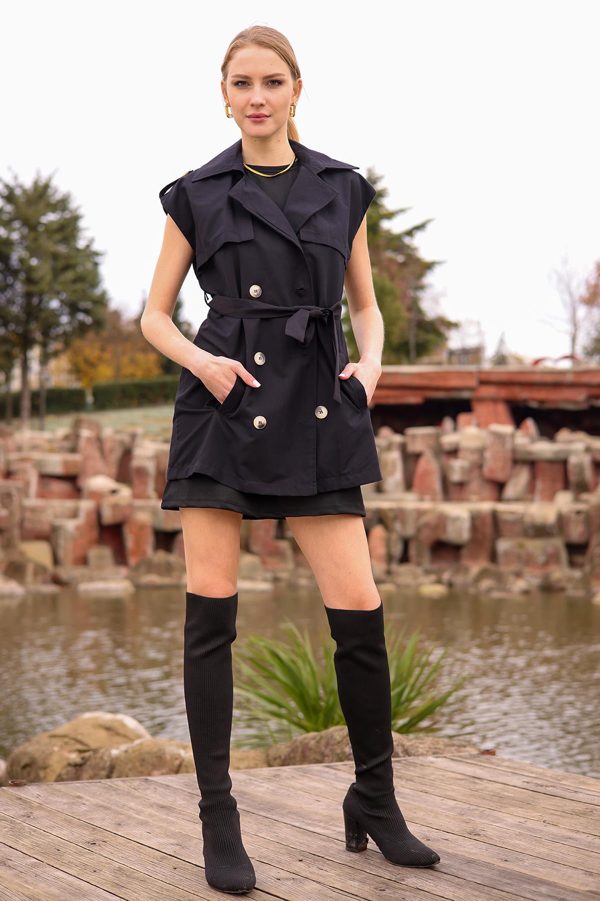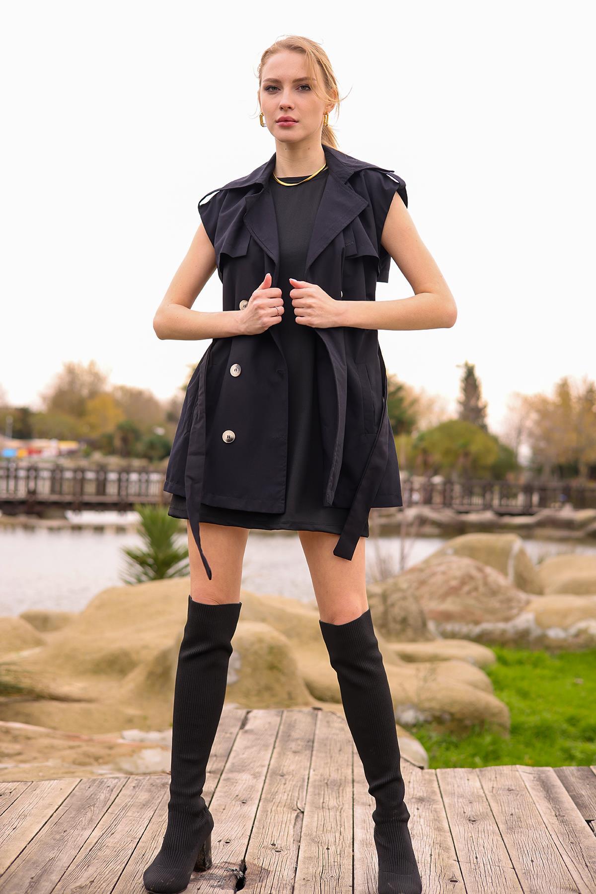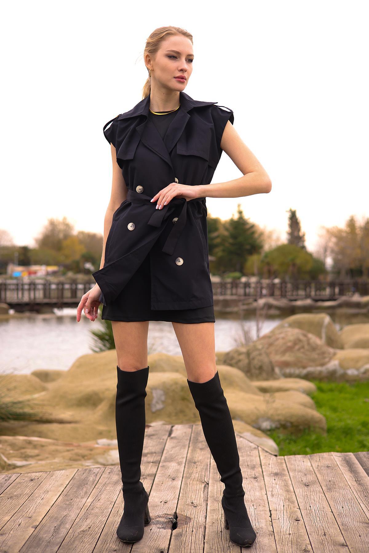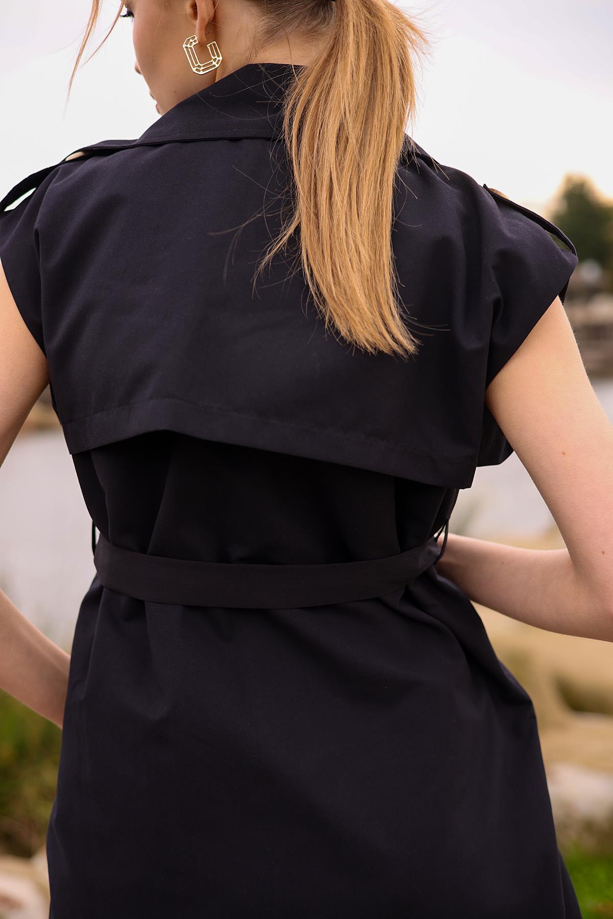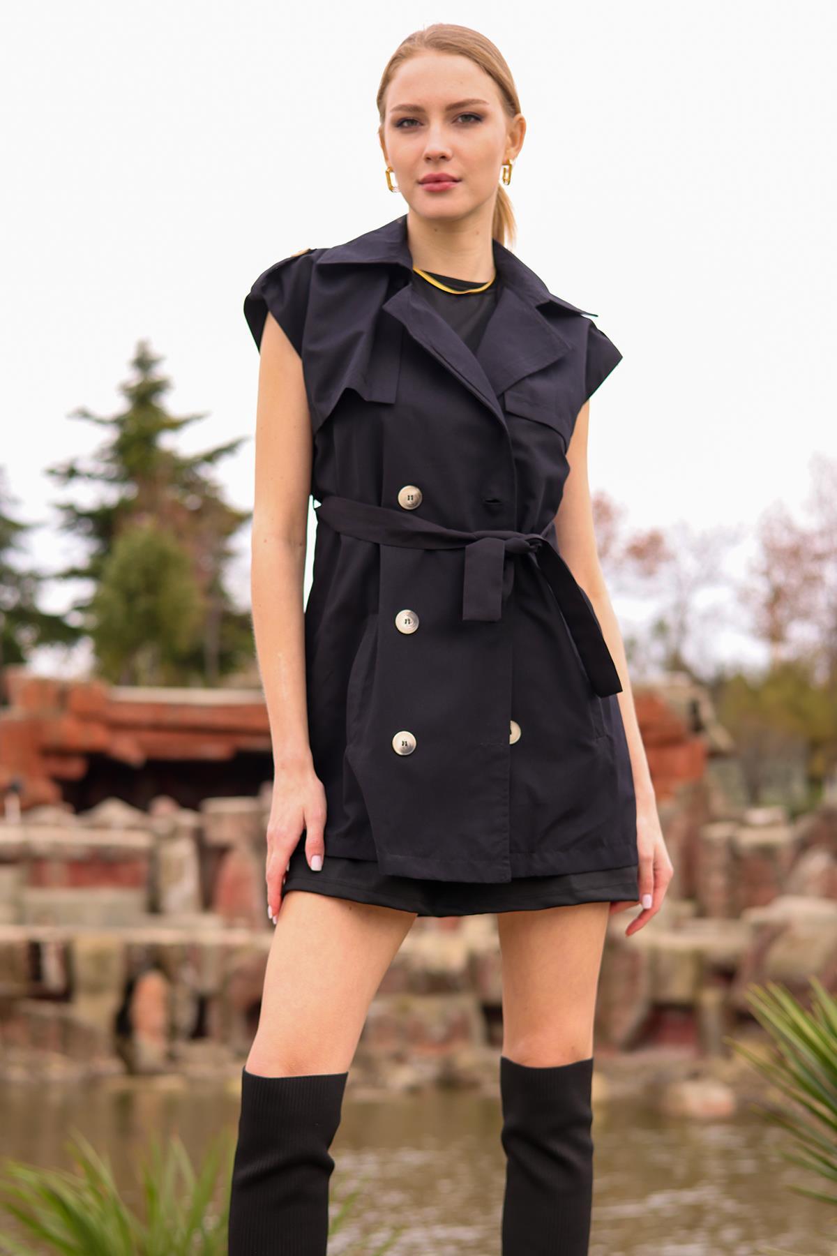 Siyah Parça Detay Düğmeli Yelek 6728A