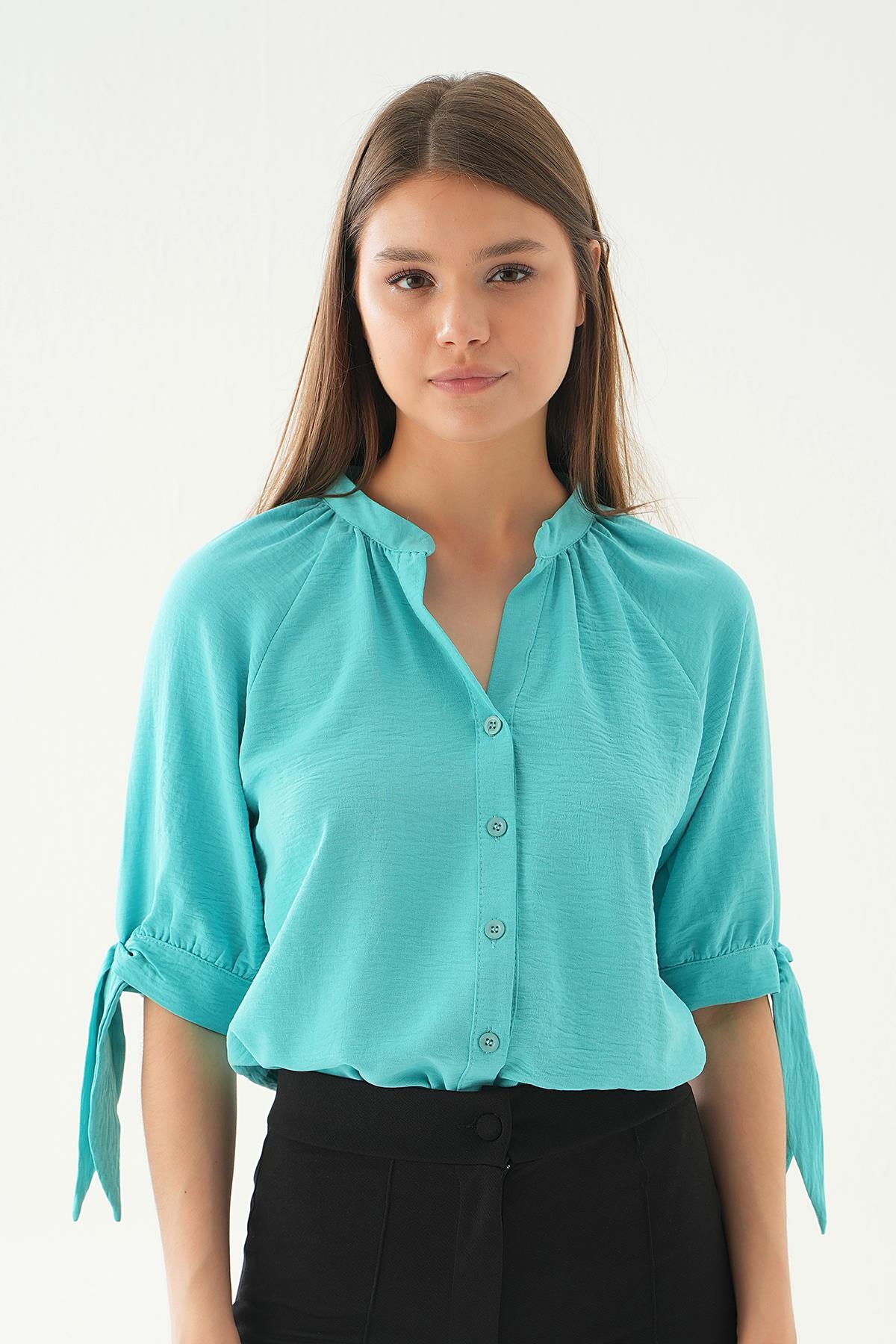 Turkuaz Fakir Kol Bağlamalı Gömlek 6743A