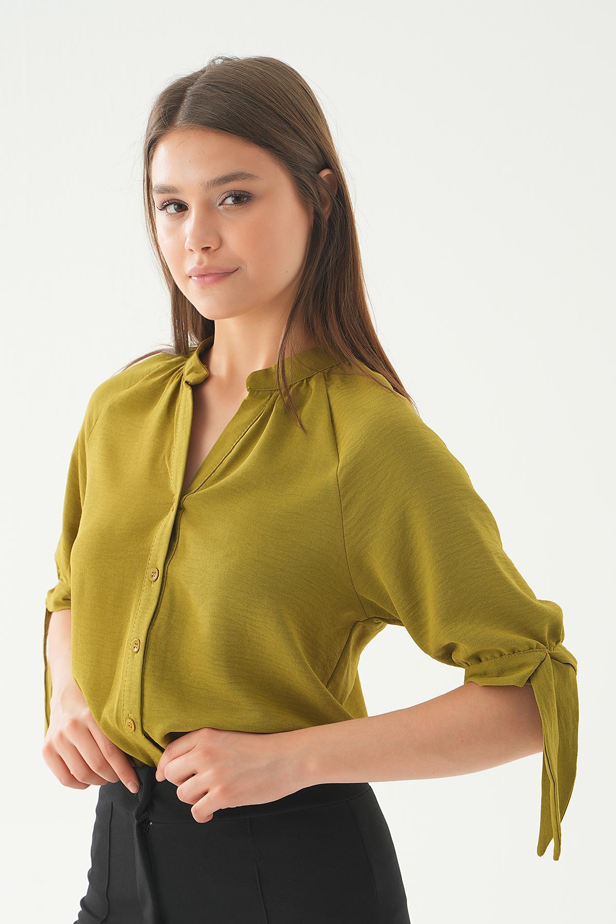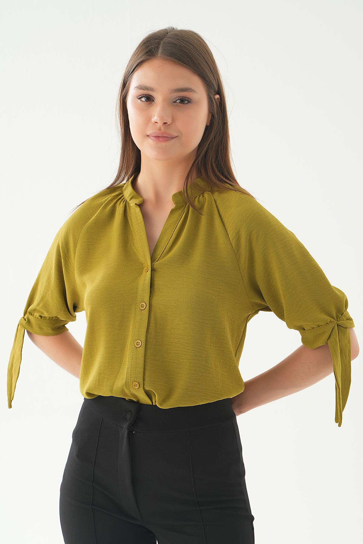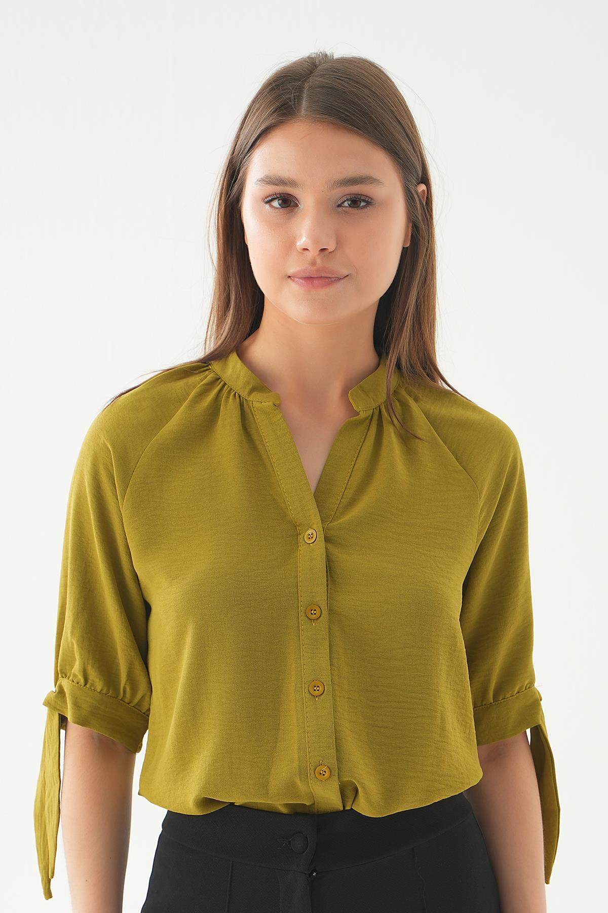 Yağ Yeşili Fakir Kol Bağlamalı Gömlek 6743A