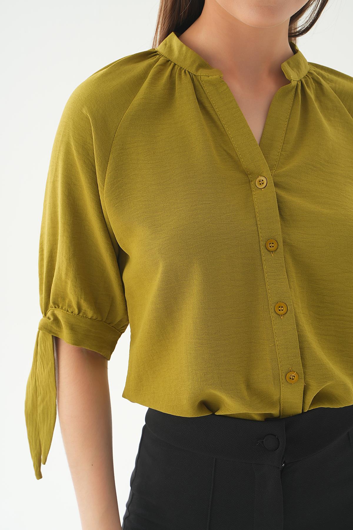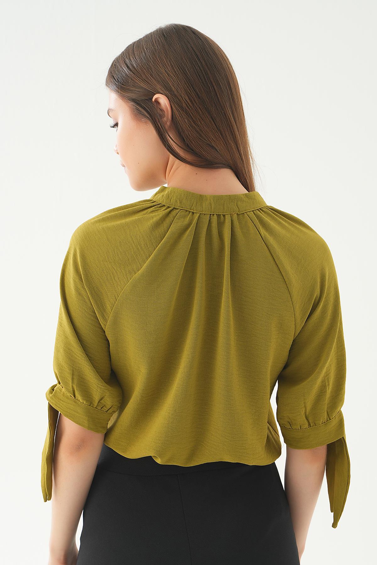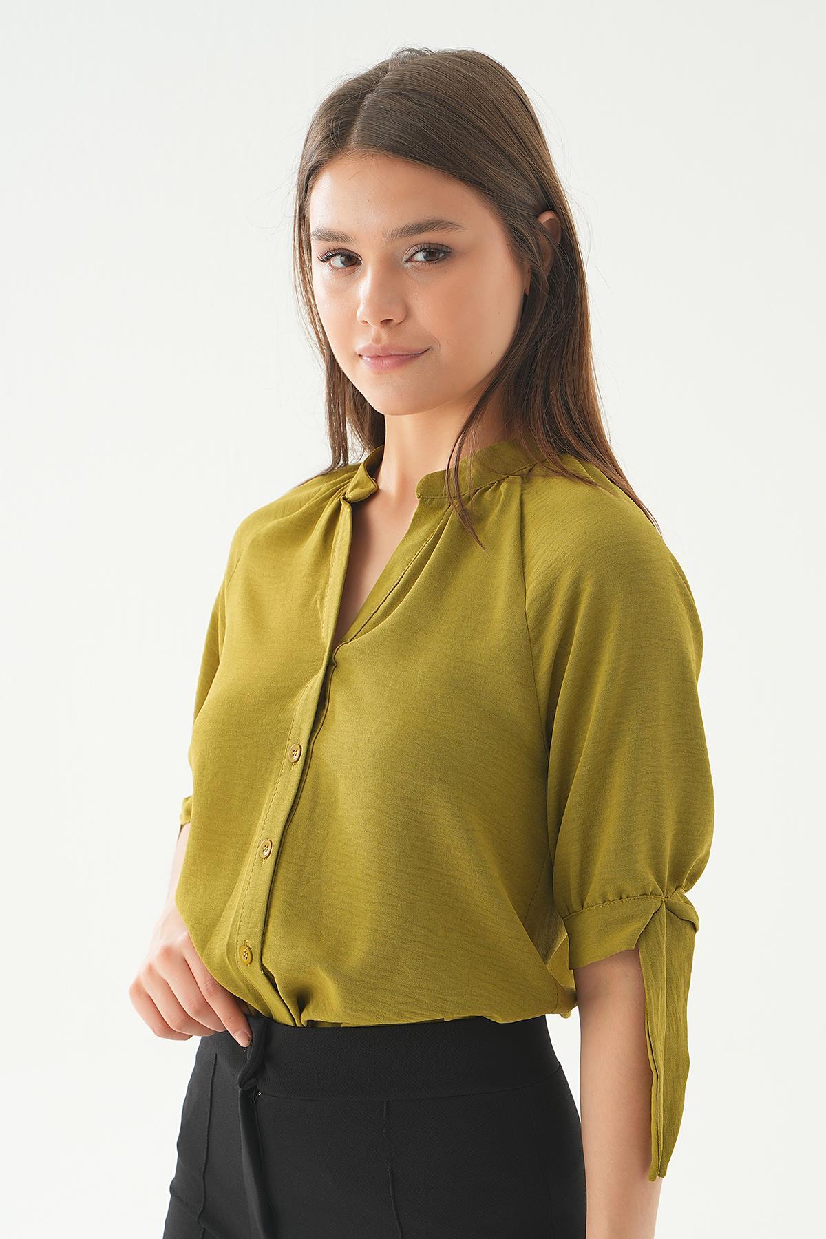 Yağ Yeşili Fakir Kol Bağlamalı Gömlek 6743A