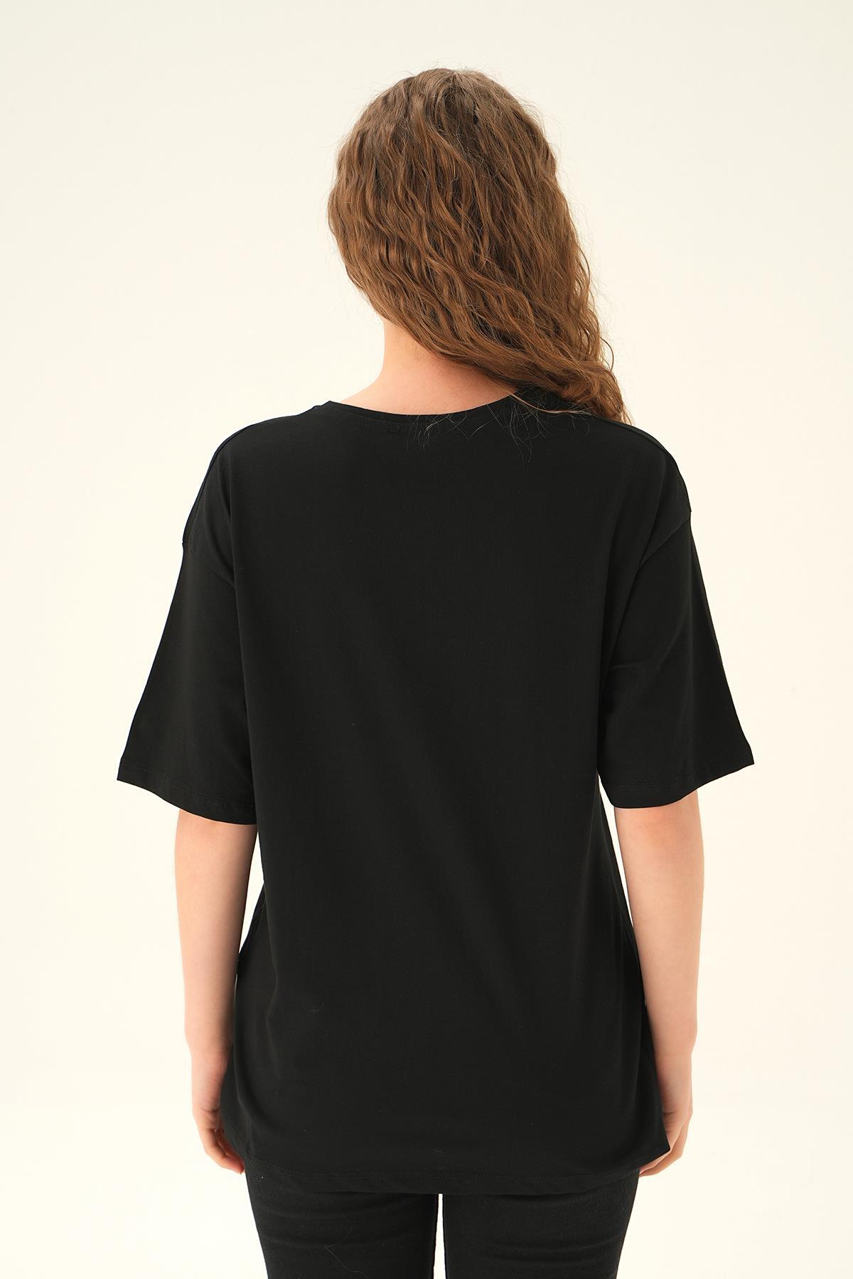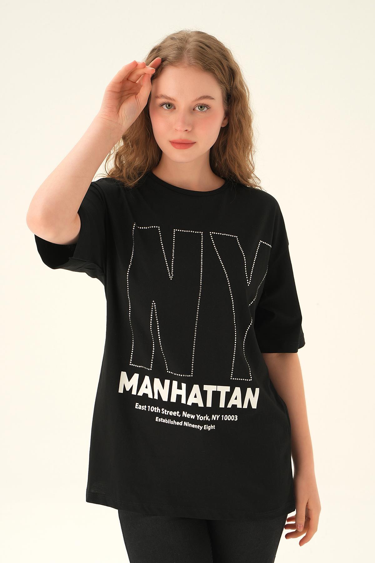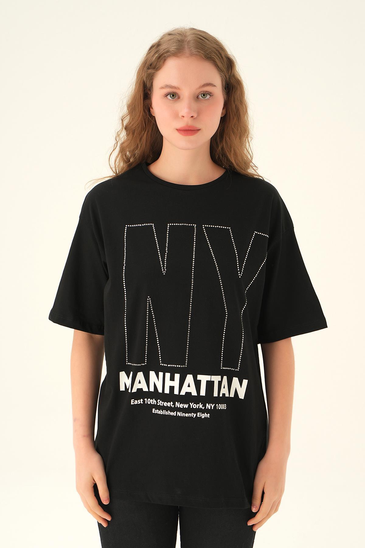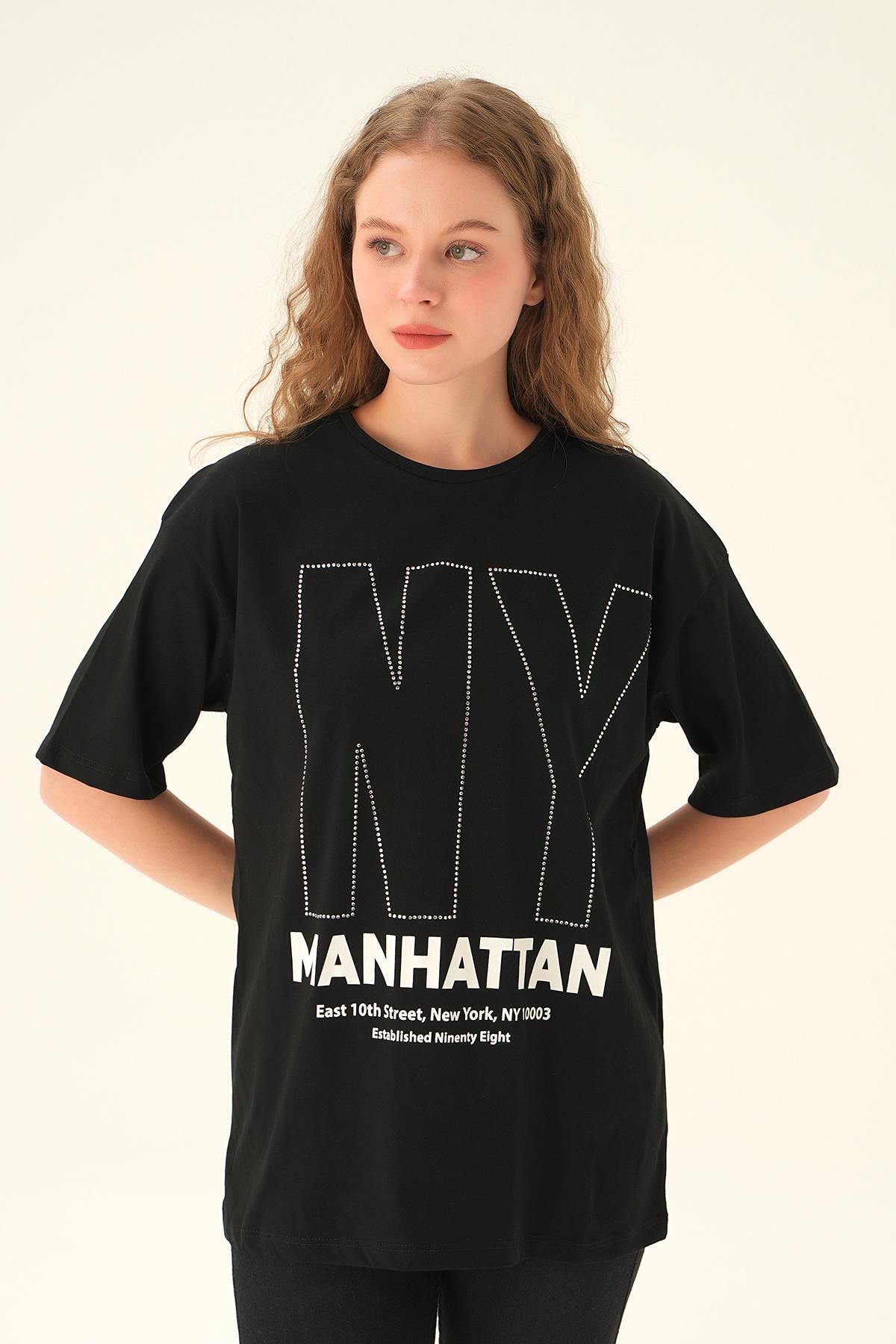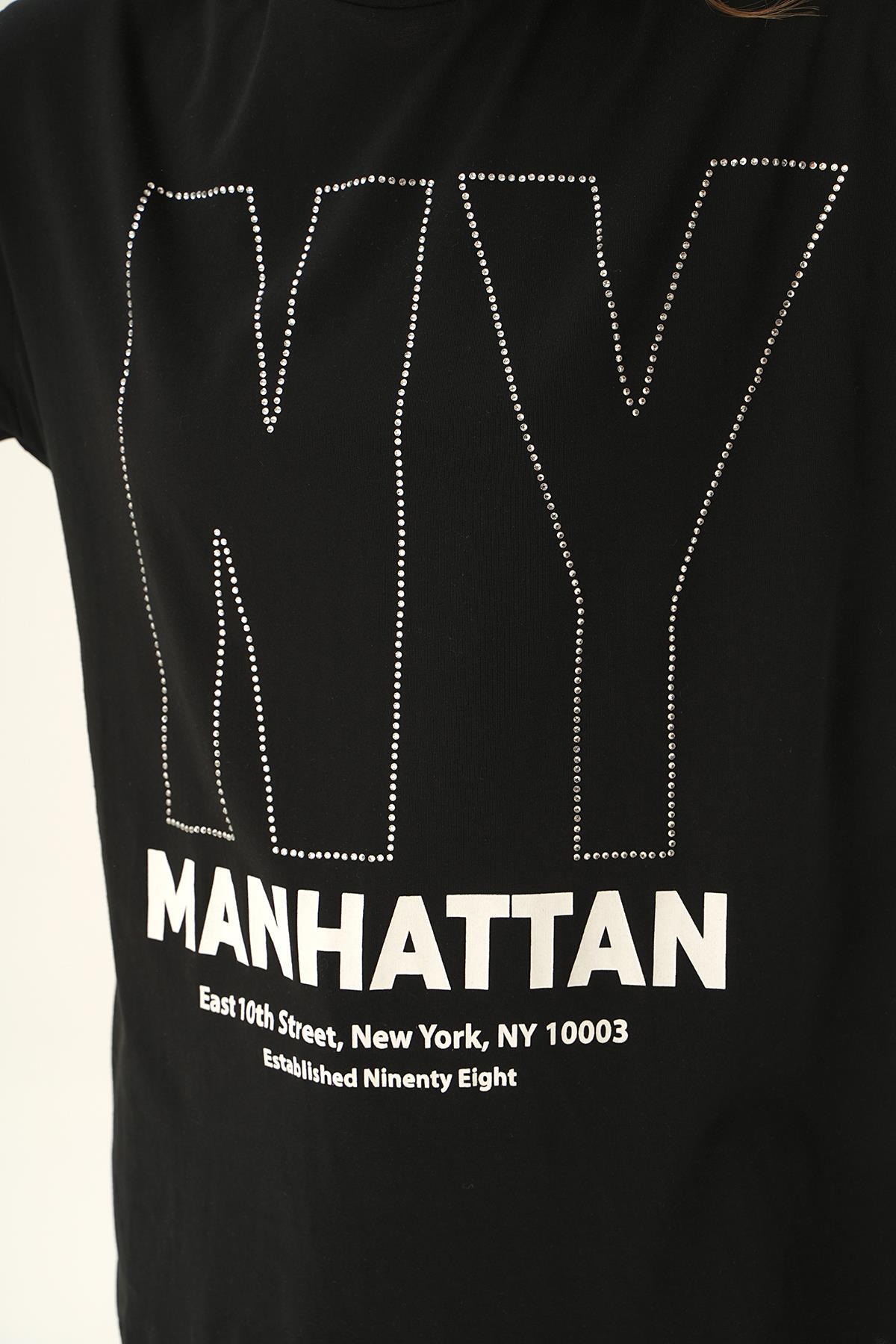 Siyah NY İşlemeli Tişört 6744