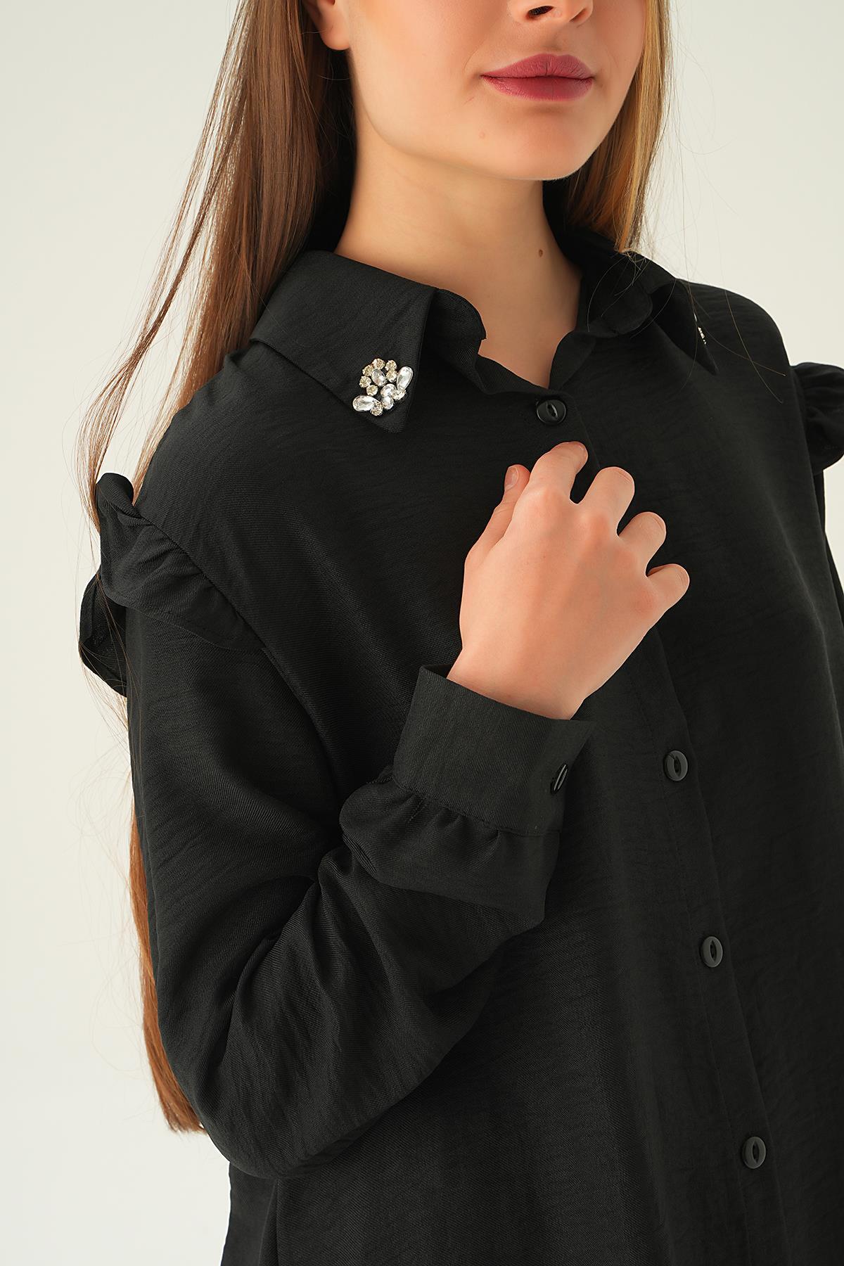 6762A Yaka Taşlı Tunik Pantolon Takım Siyah
