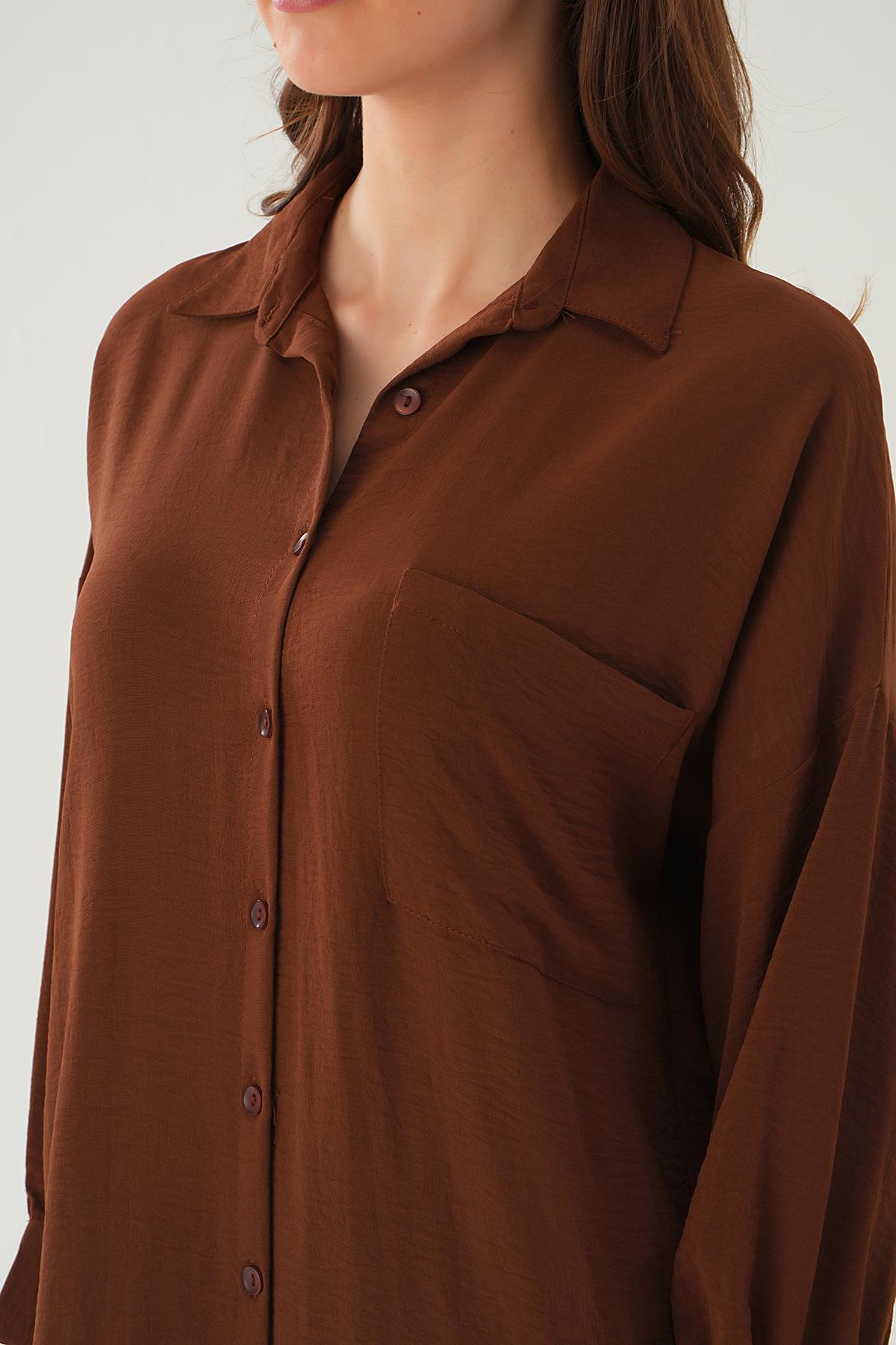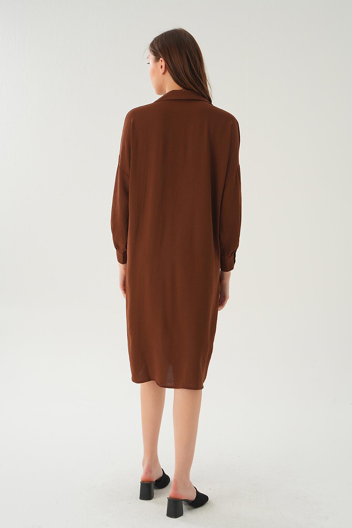 Kahve Cep Detay Uzun Tunik 6773-1