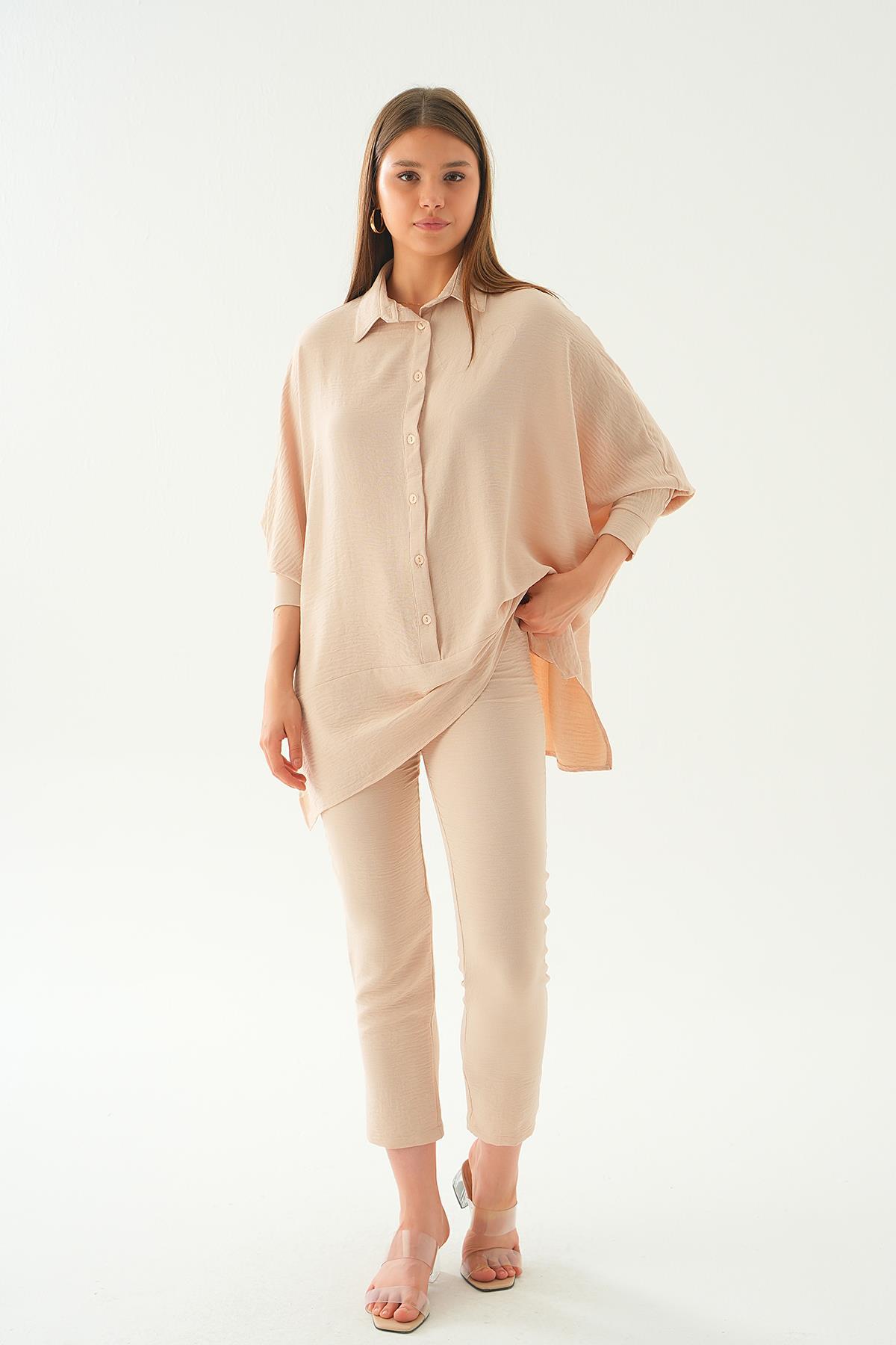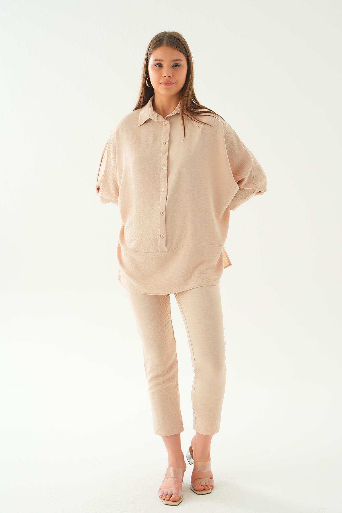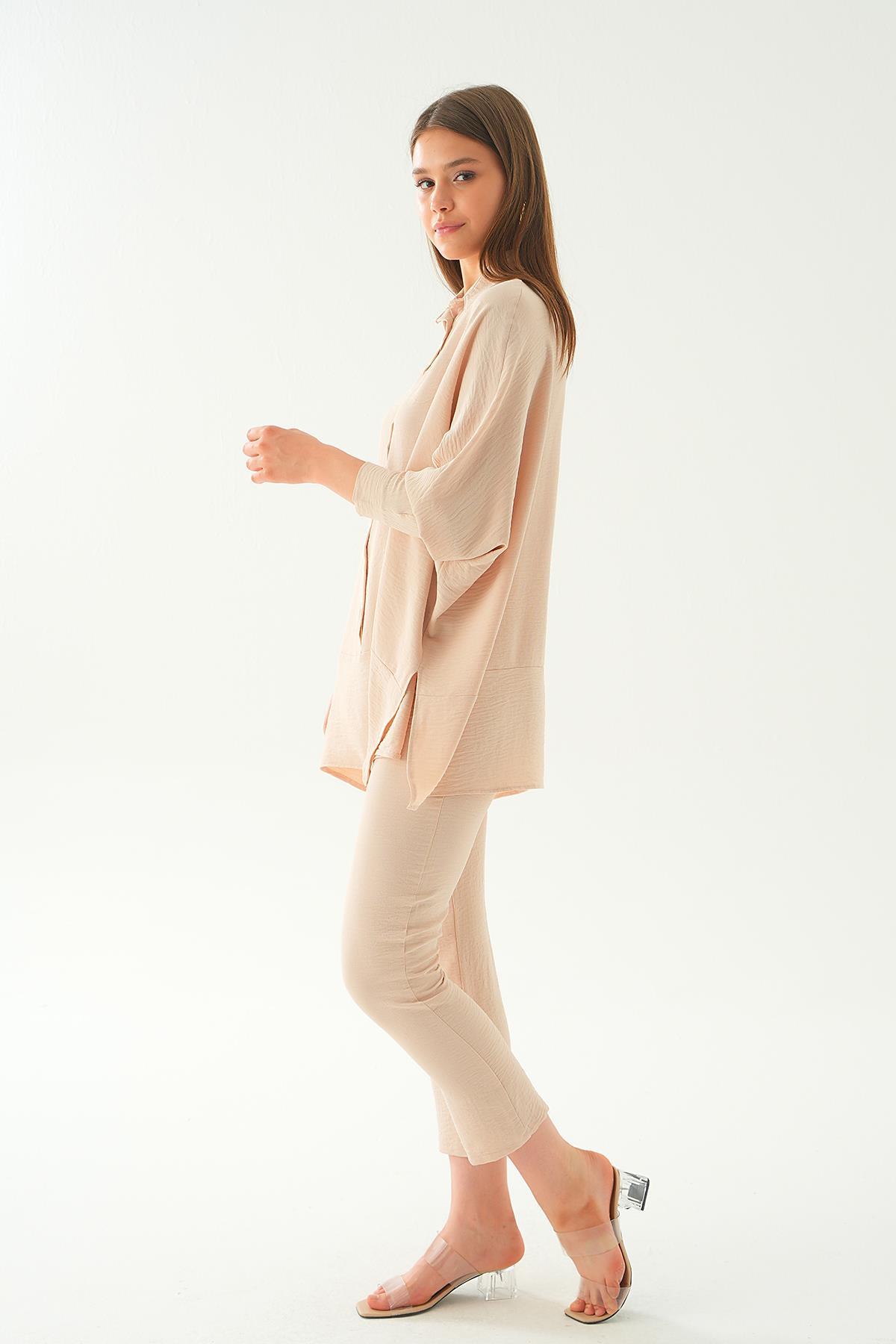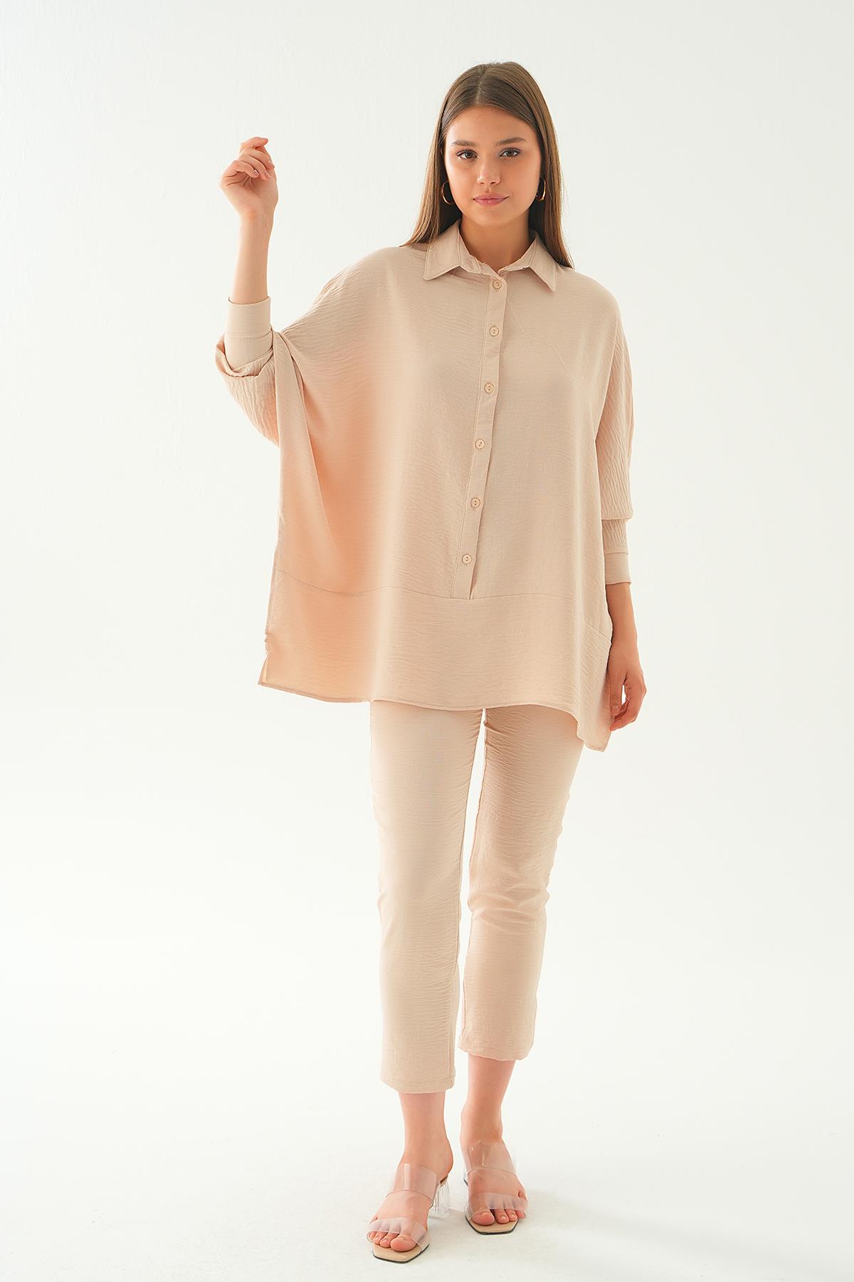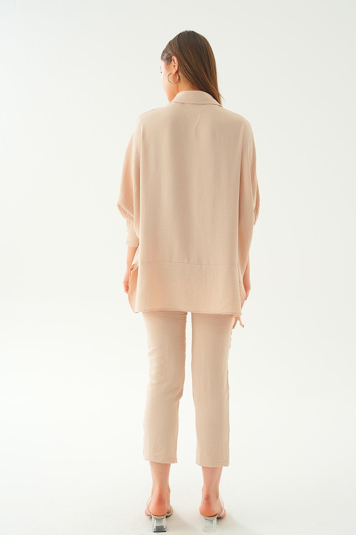 Bej Etek Parça Detay Pantolon Takım 6775A