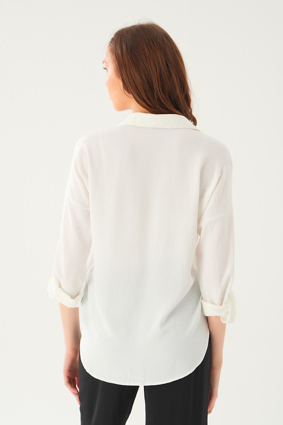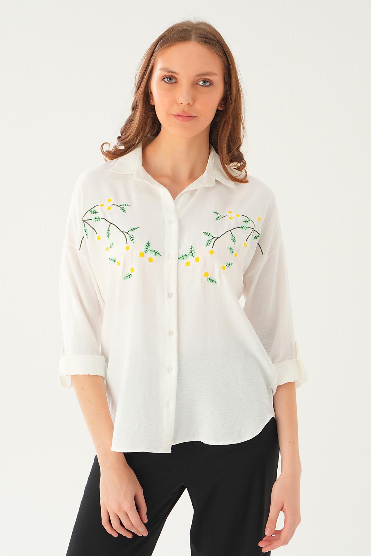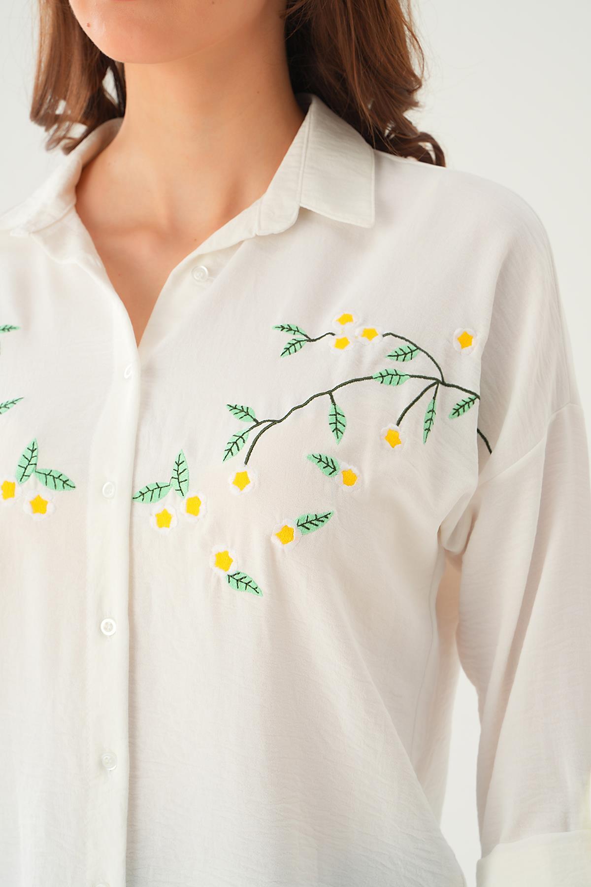 Ekru Çiçek Nakış Detay Gömlek 6787A