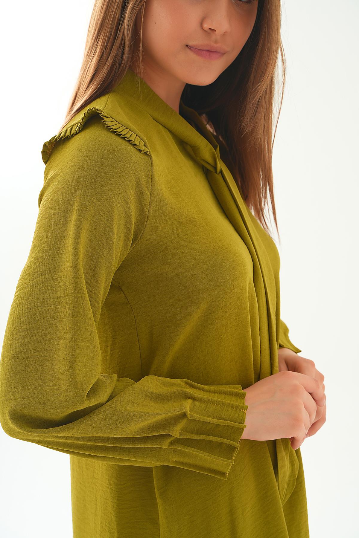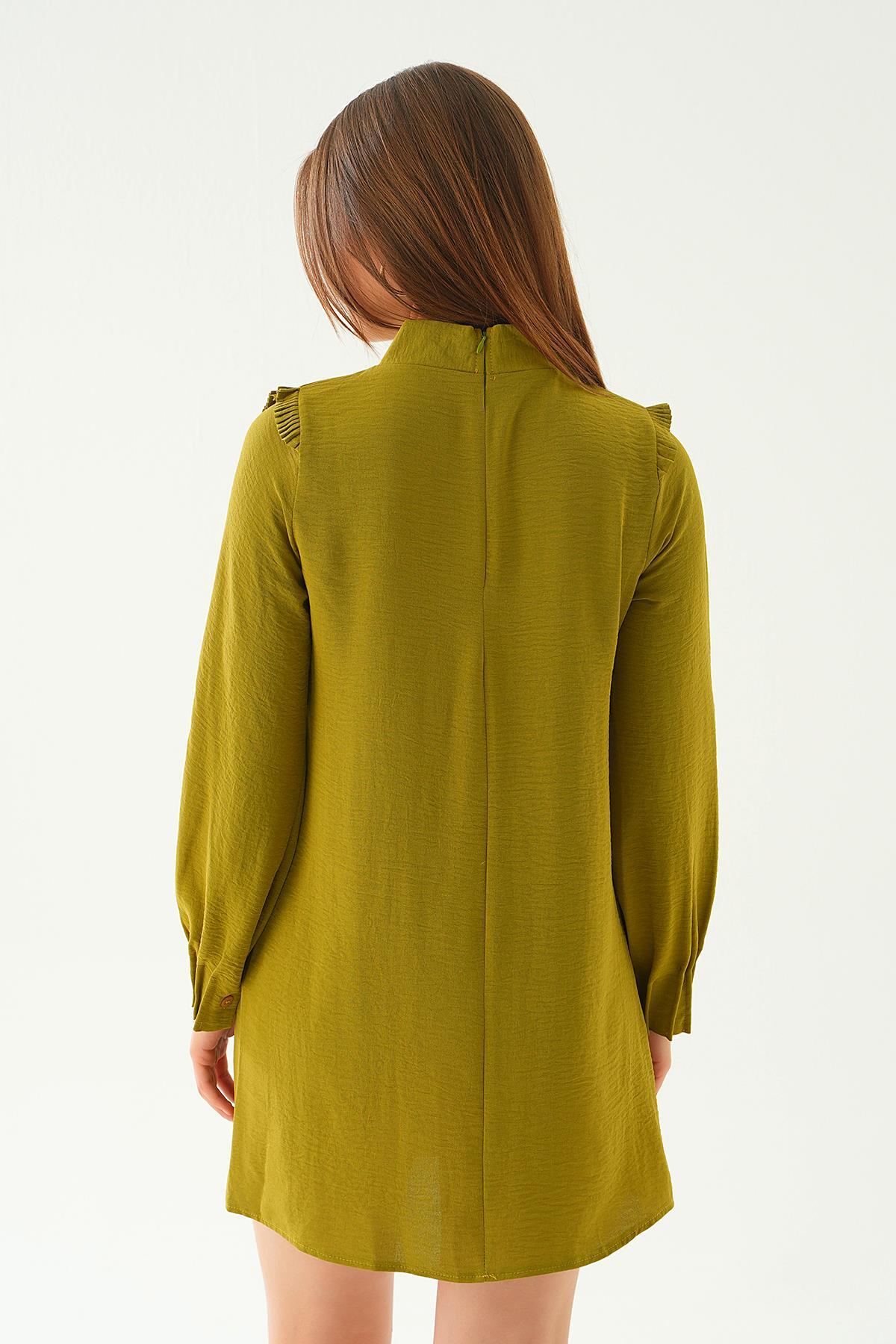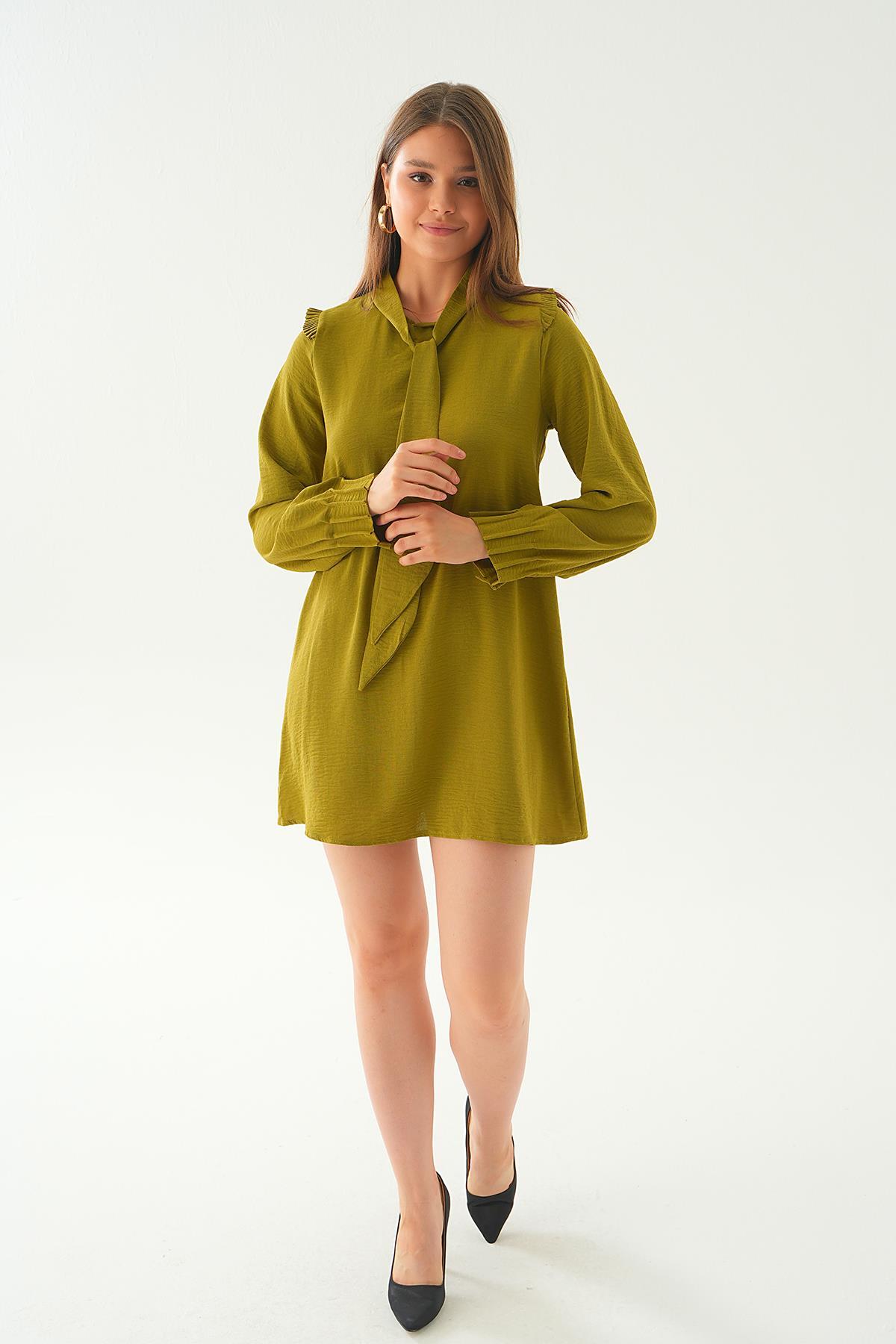 Yağ Yeşili Omuz Fırfırlı Fiyonklu Tunik 6796A