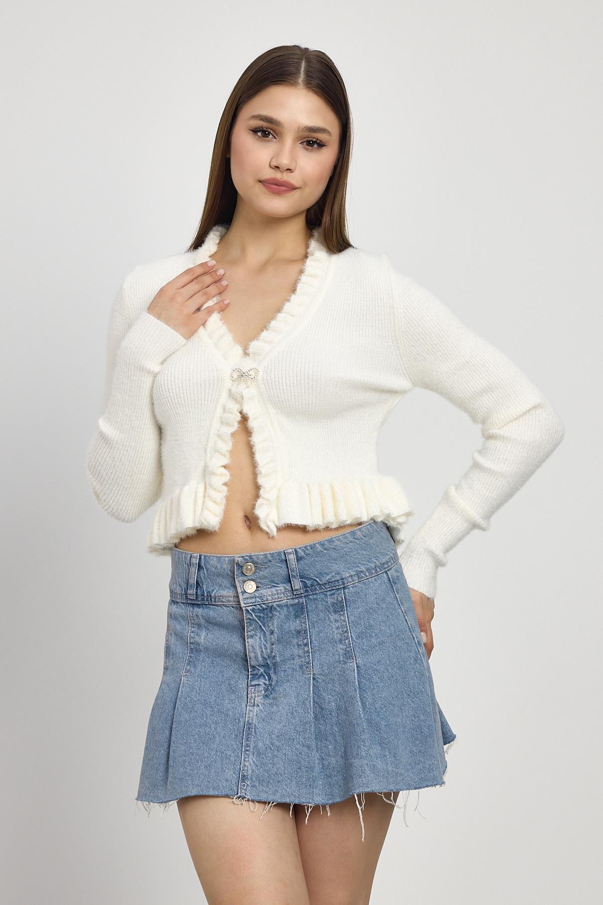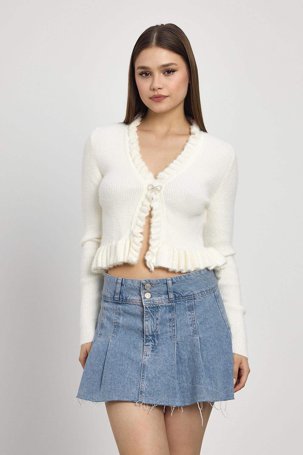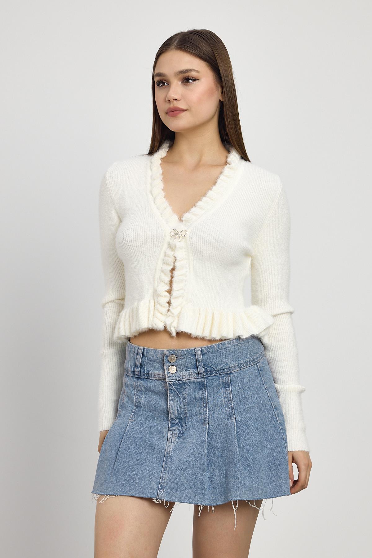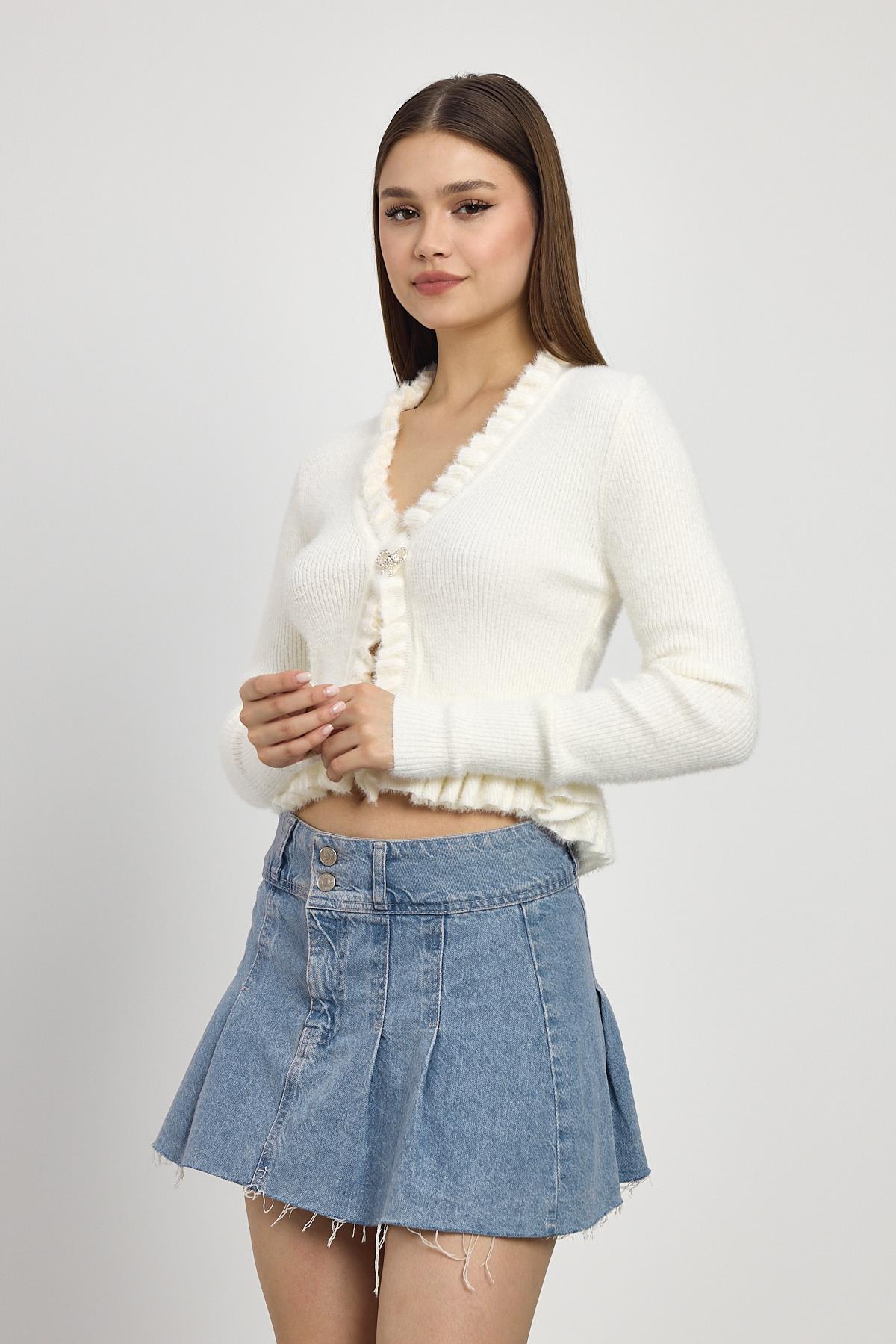 Kemik Etek Fırfır Detay Kısa Hırka 6801