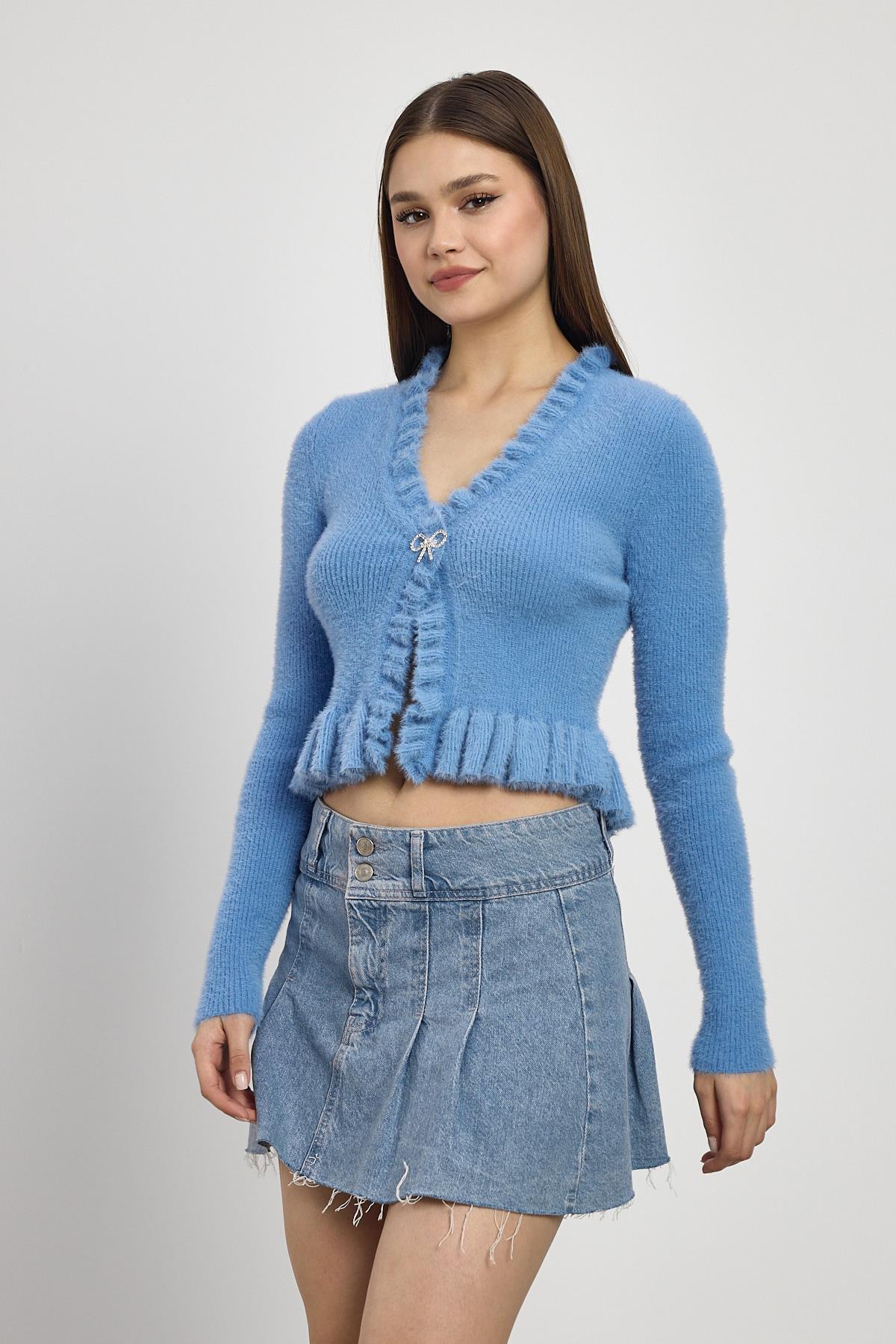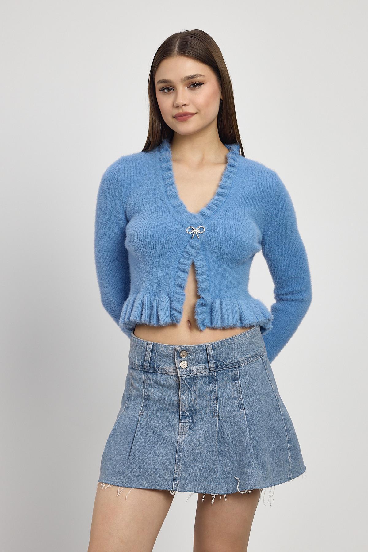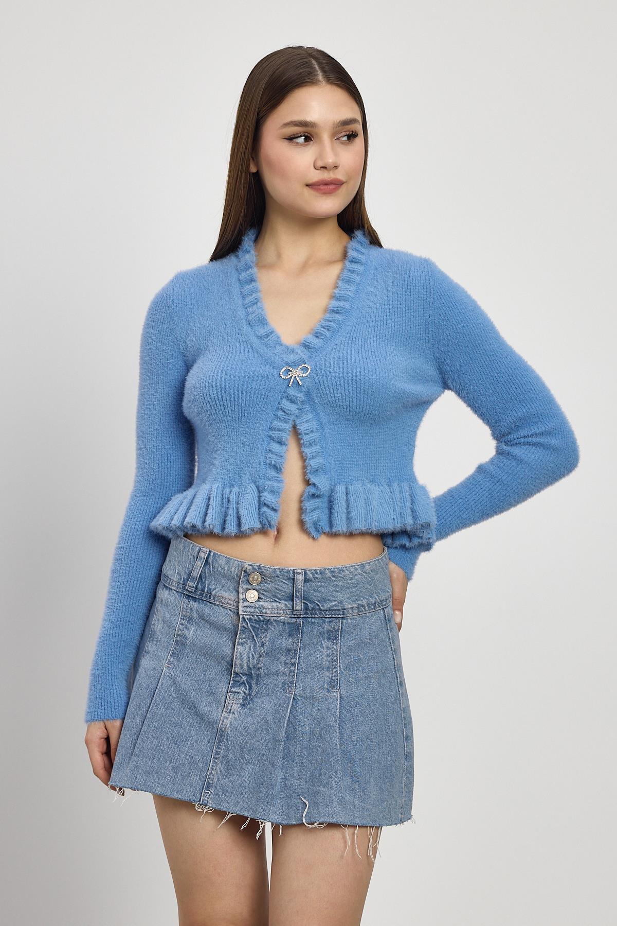 Mavi Etek Fırfır Detay Kısa Hırka 6801