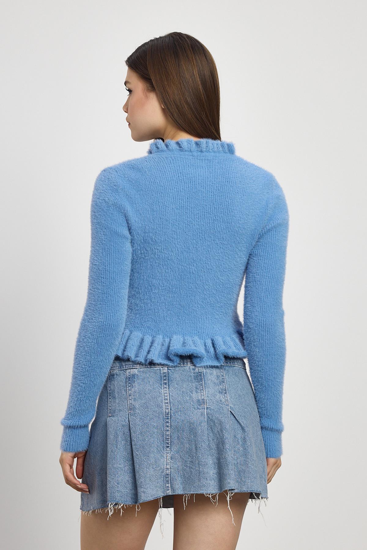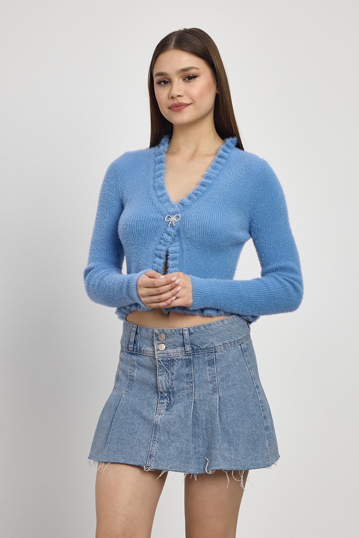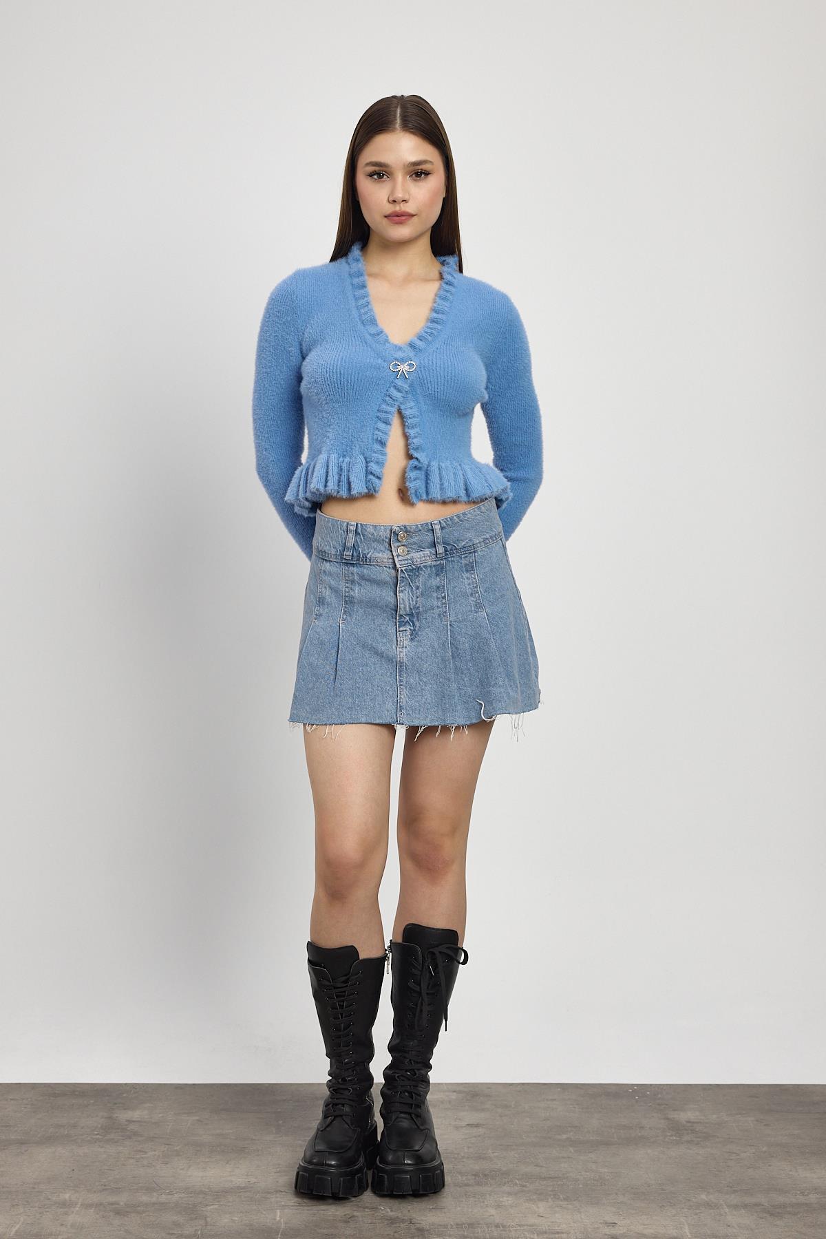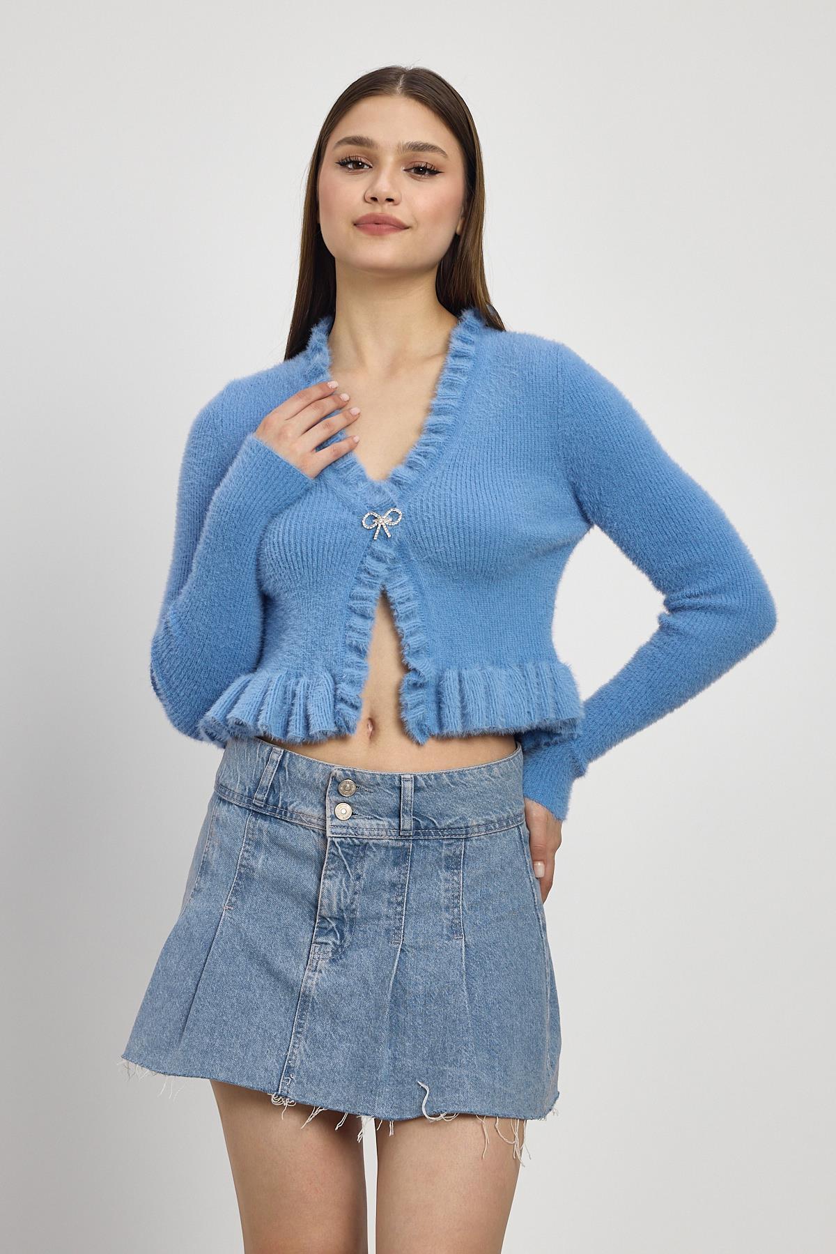 Mavi Etek Fırfır Detay Kısa Hırka 6801