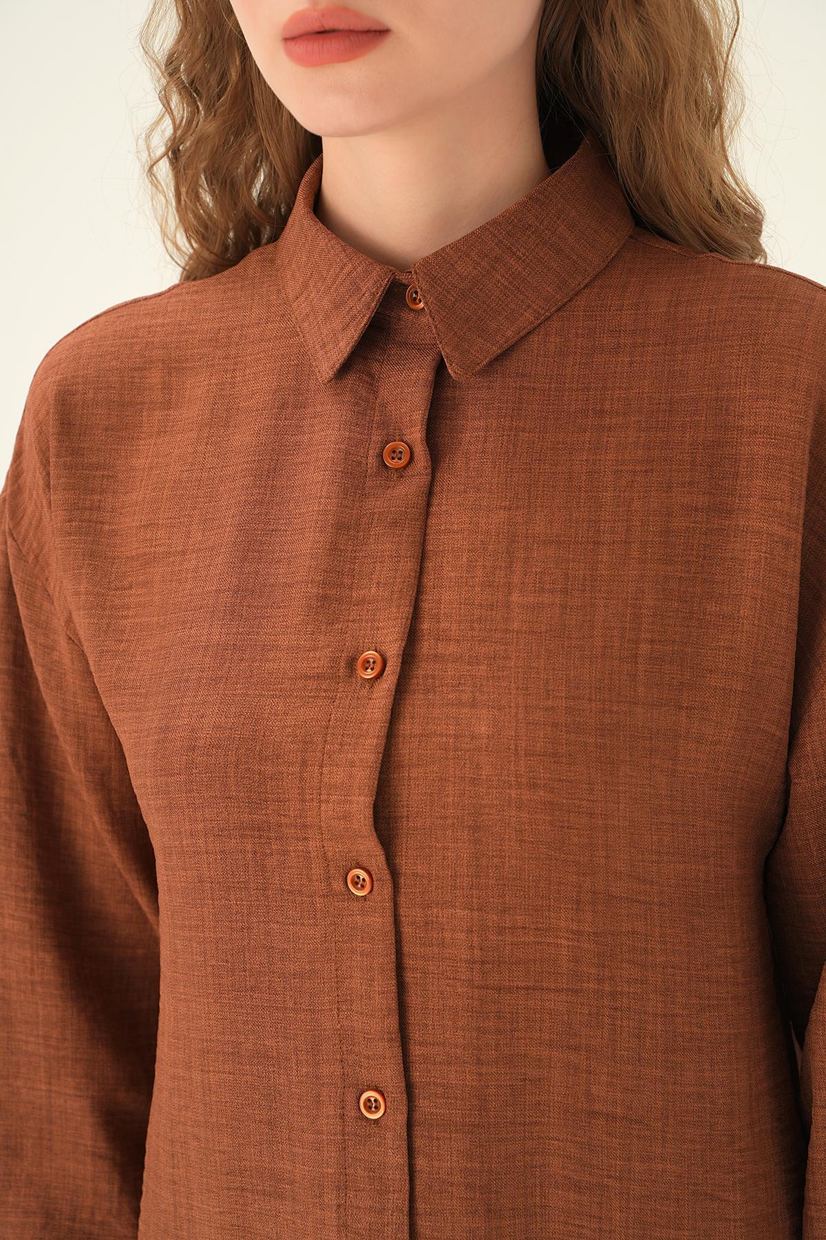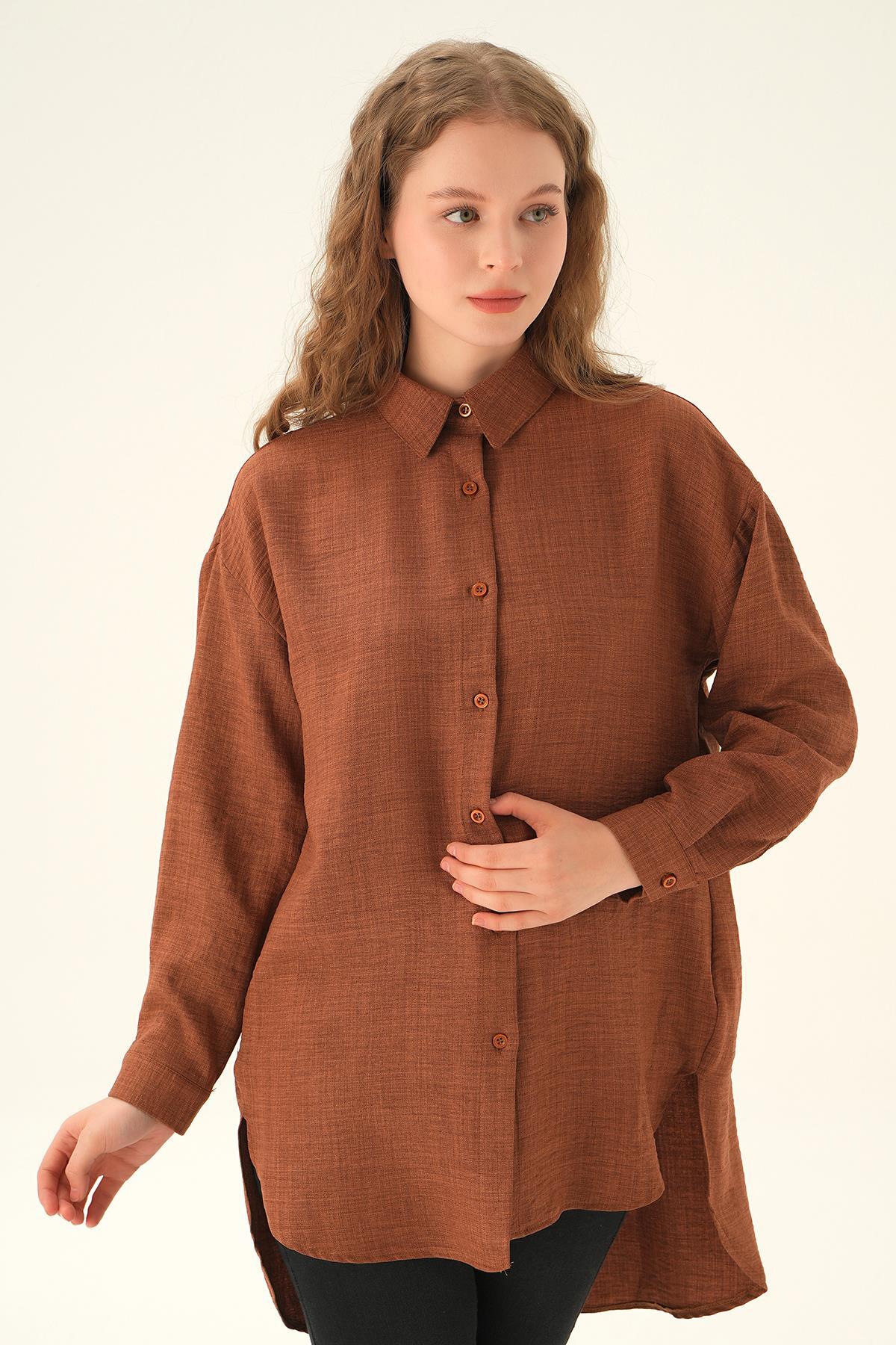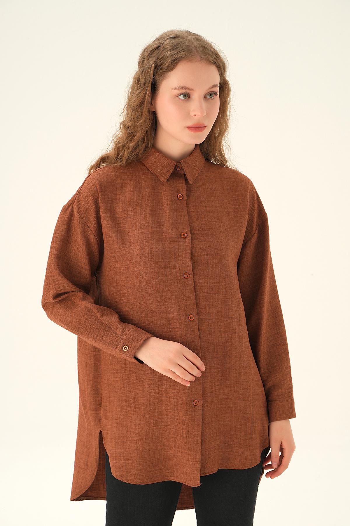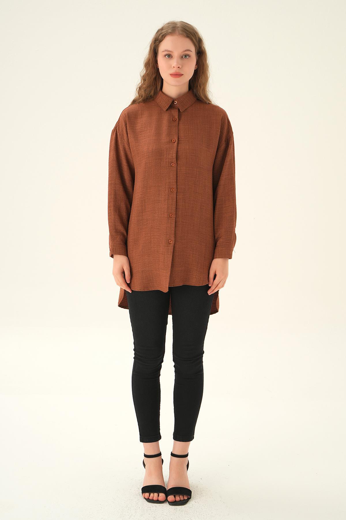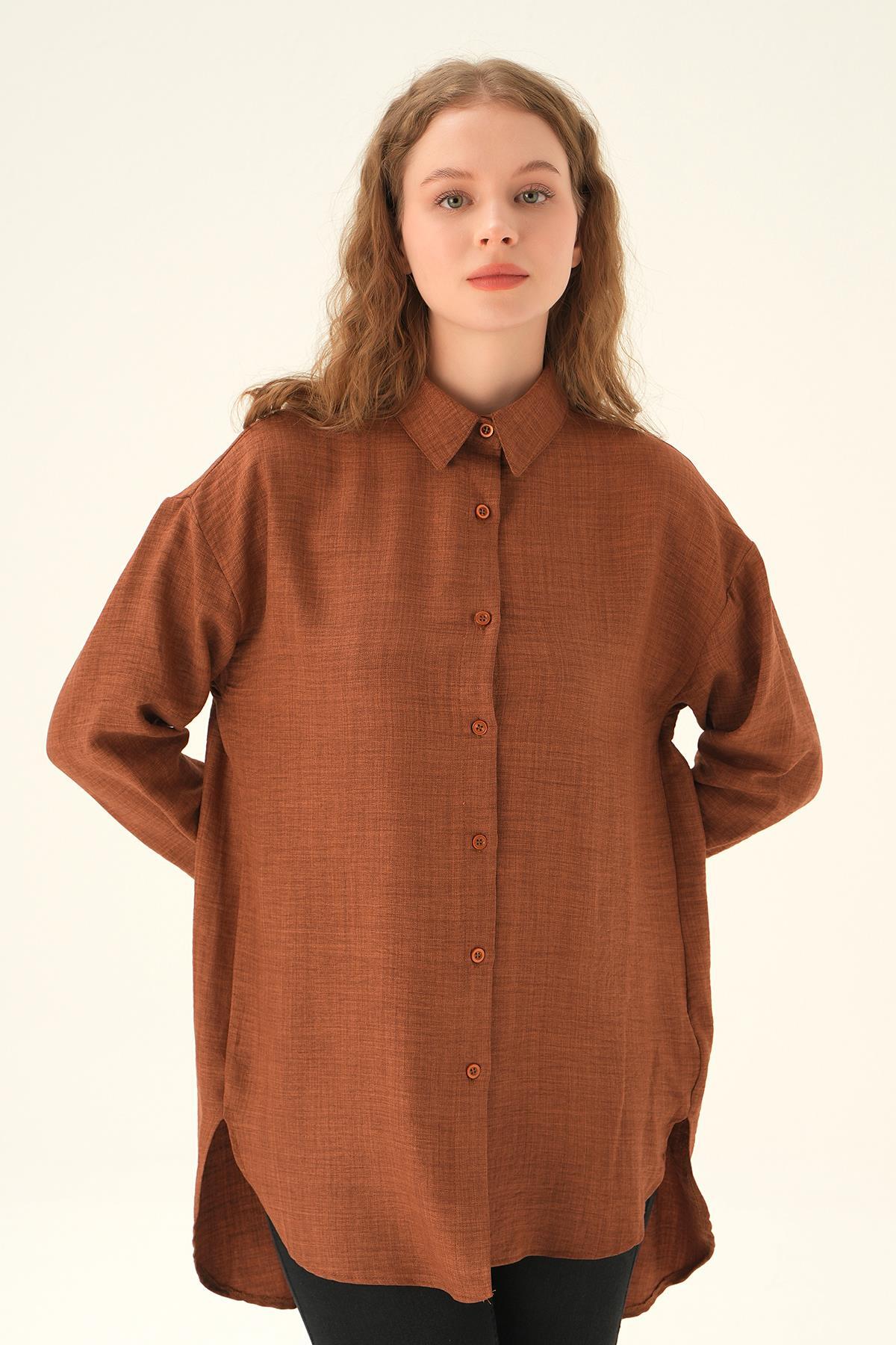 Kahve Çizgili Oversize Gömlek 5460 - RAYS Kahve Çizgili Oversize Gömlek 5460 - RAYS (1)