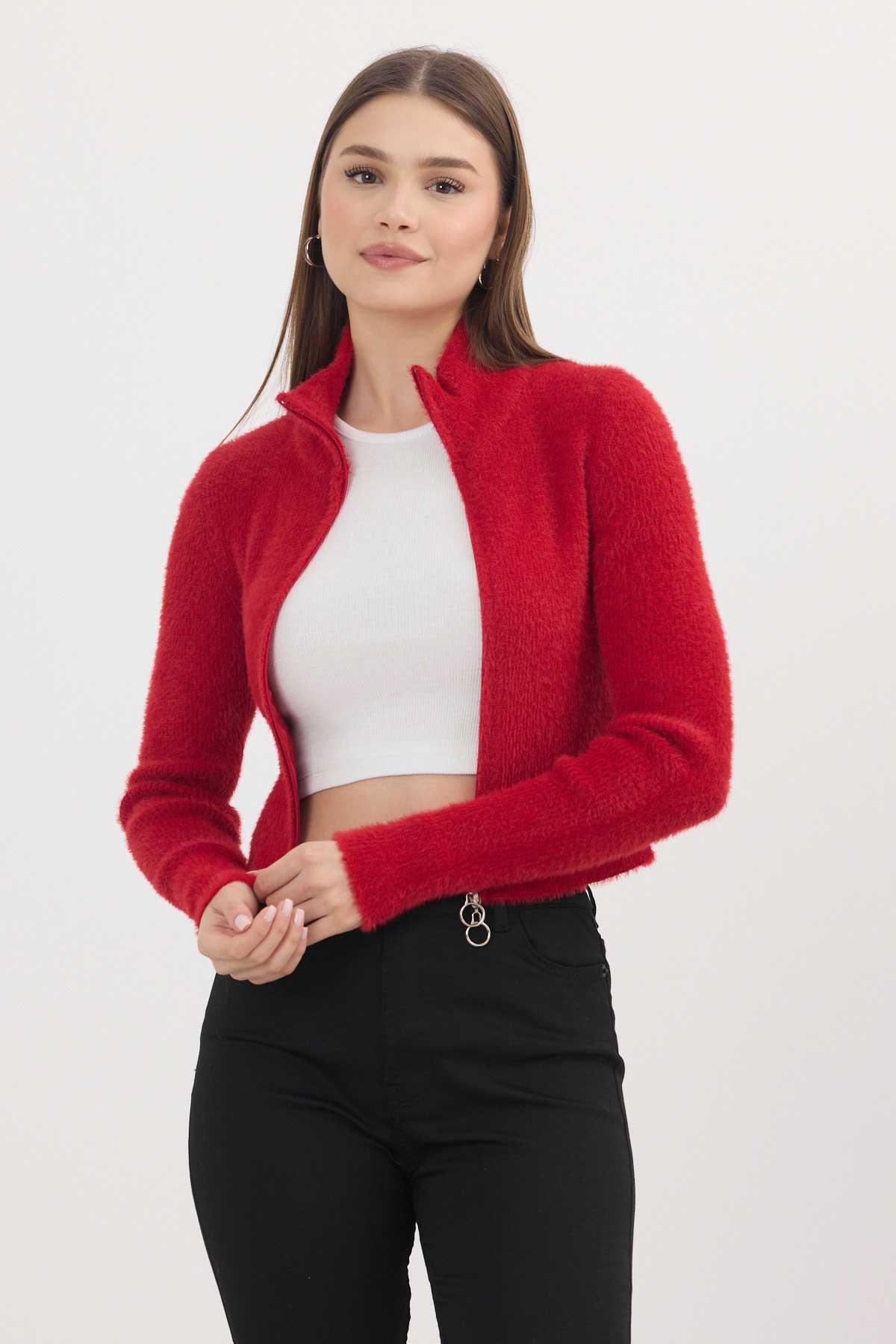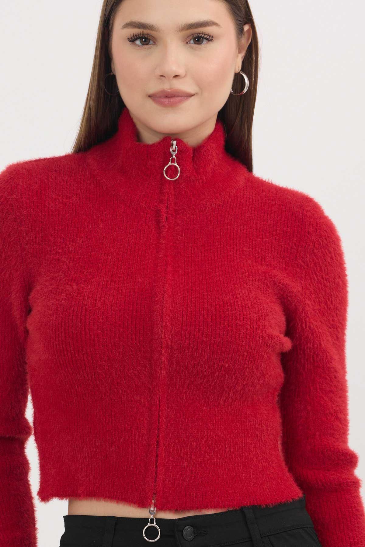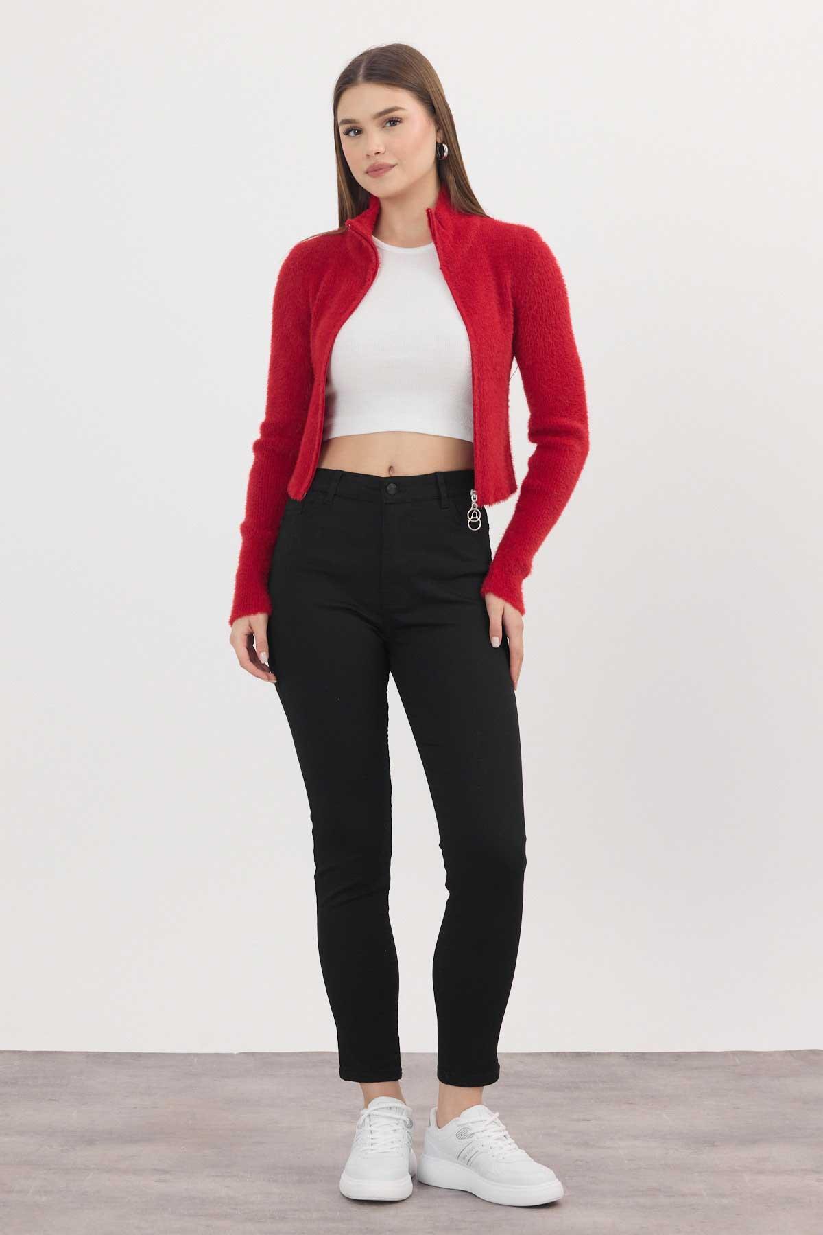 Kırmızı Fermuarlı Kısa Yumoş Hırka 6806