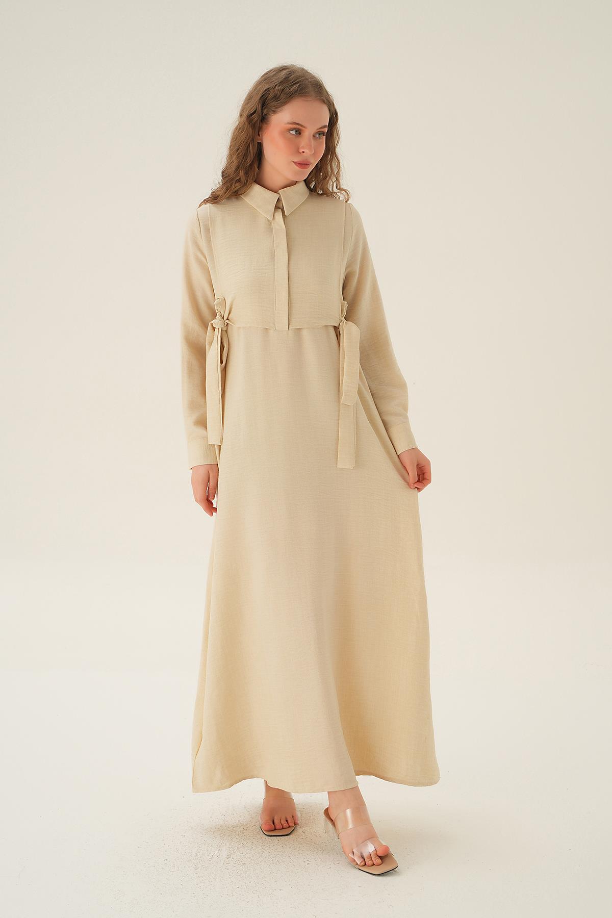 Kahve Düğmeli Kat Kat Elbise 2817 - RAYS Kahve Düğmeli Kat Kat Elbise 2817 - RAYS (1)