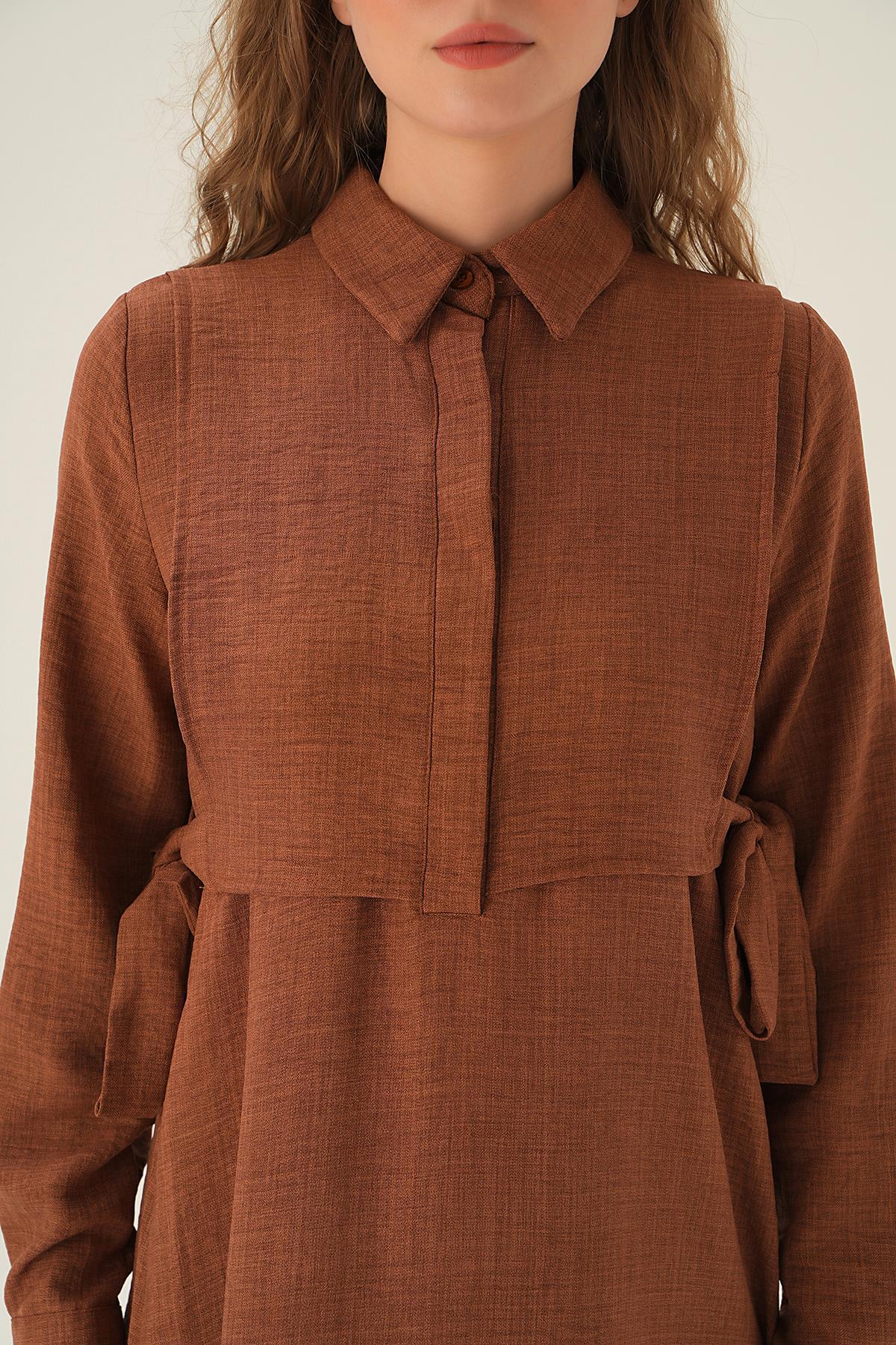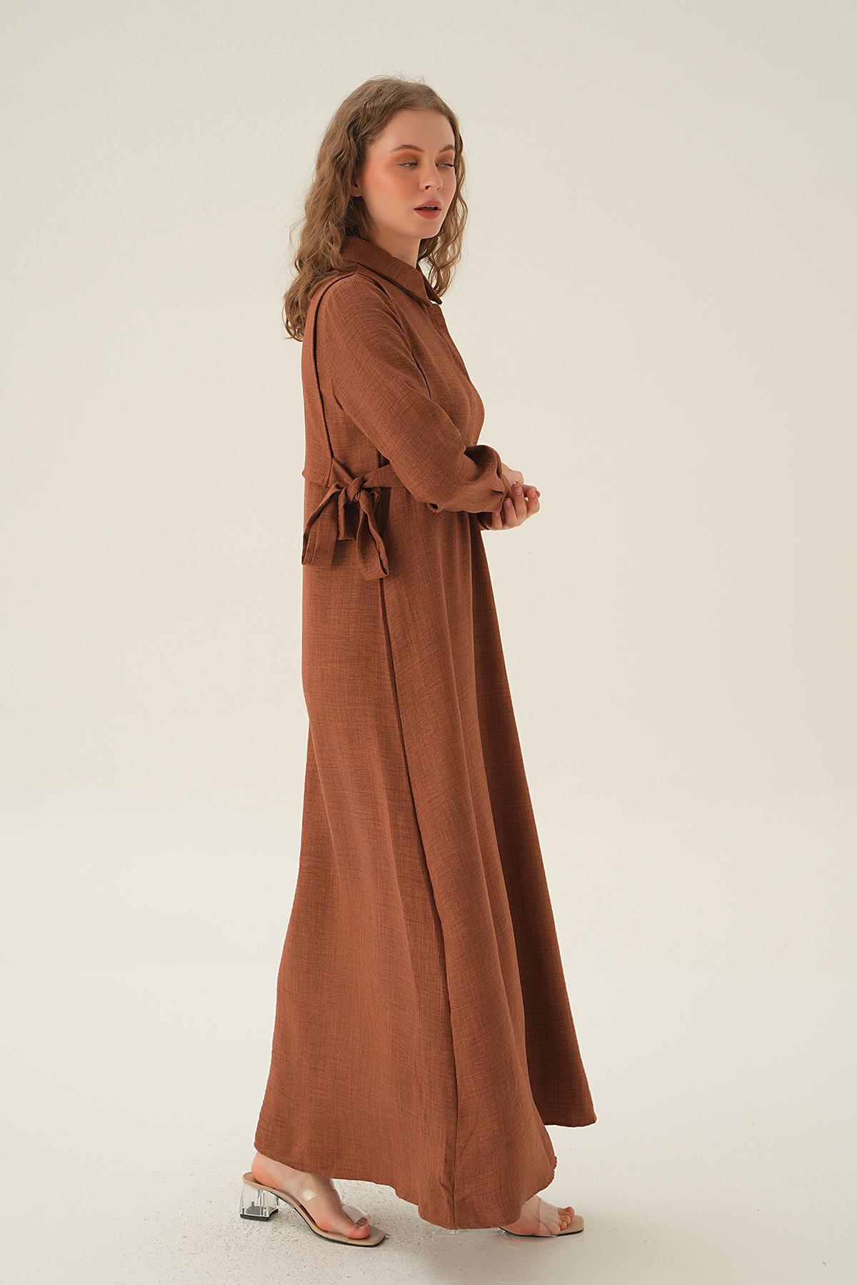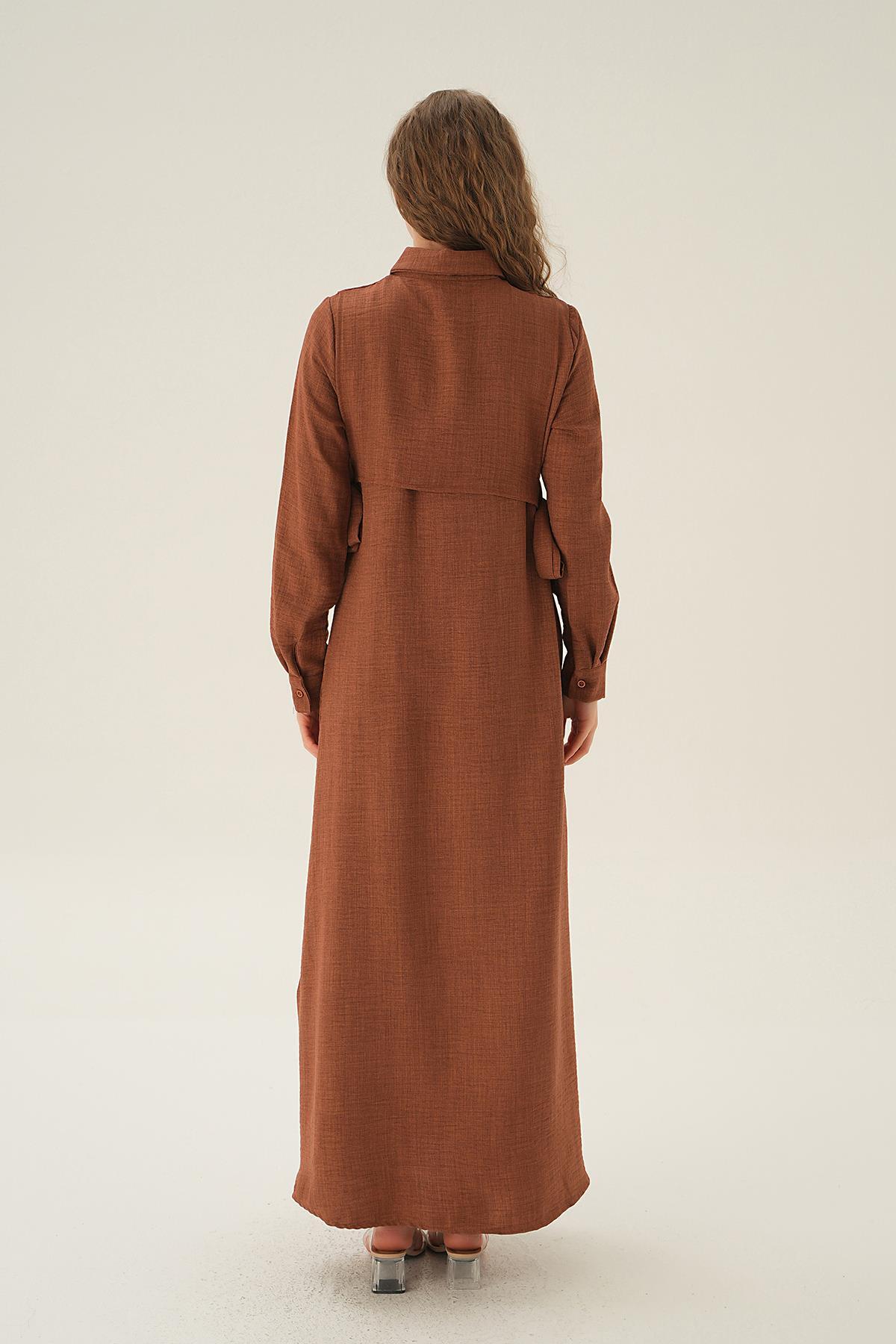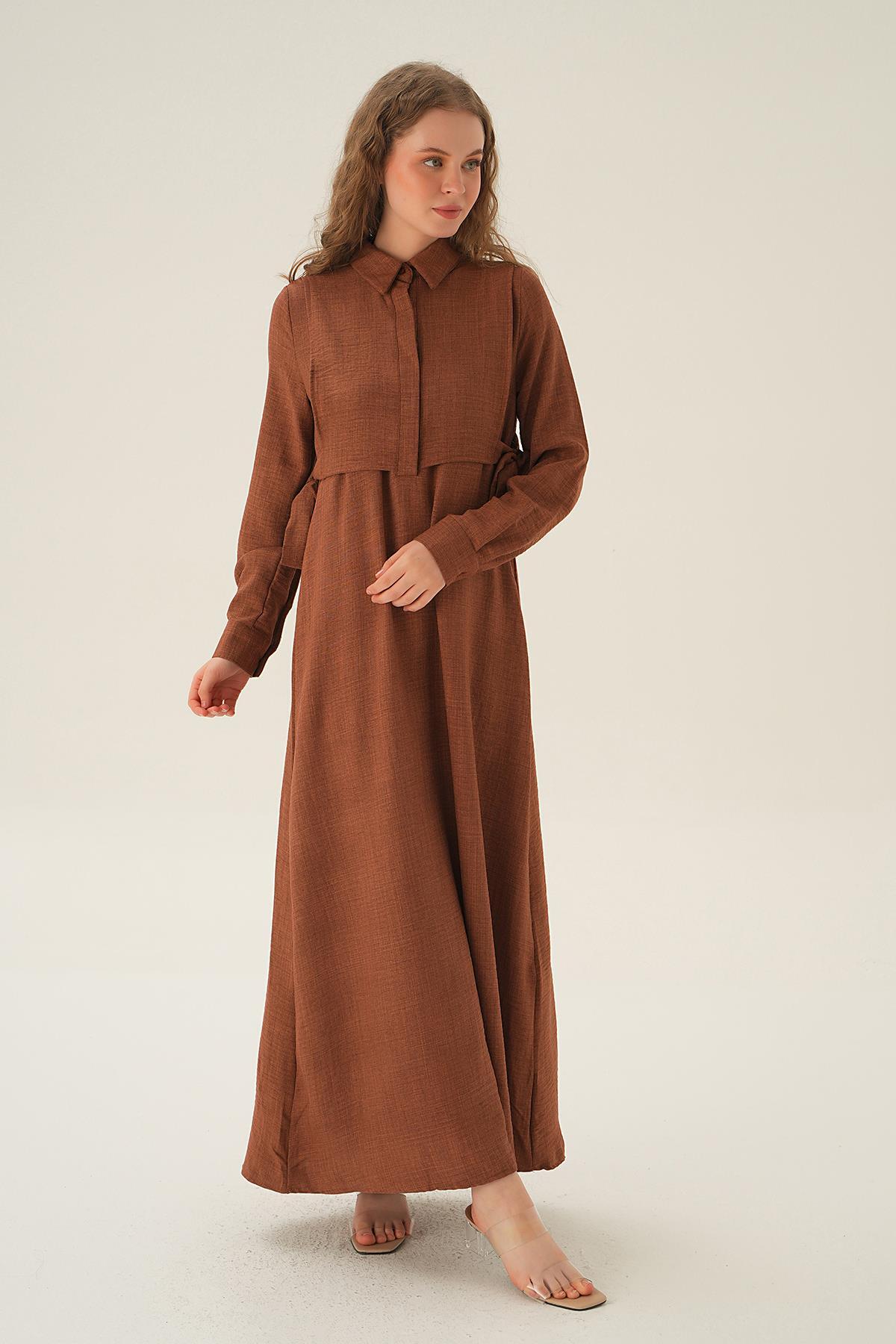 Kahve Düğmeli Kat Kat Elbise 2817 - RAYS Kahve Düğmeli Kat Kat Elbise 2817 - RAYS (1)