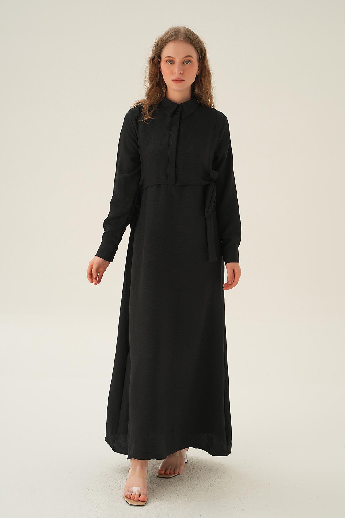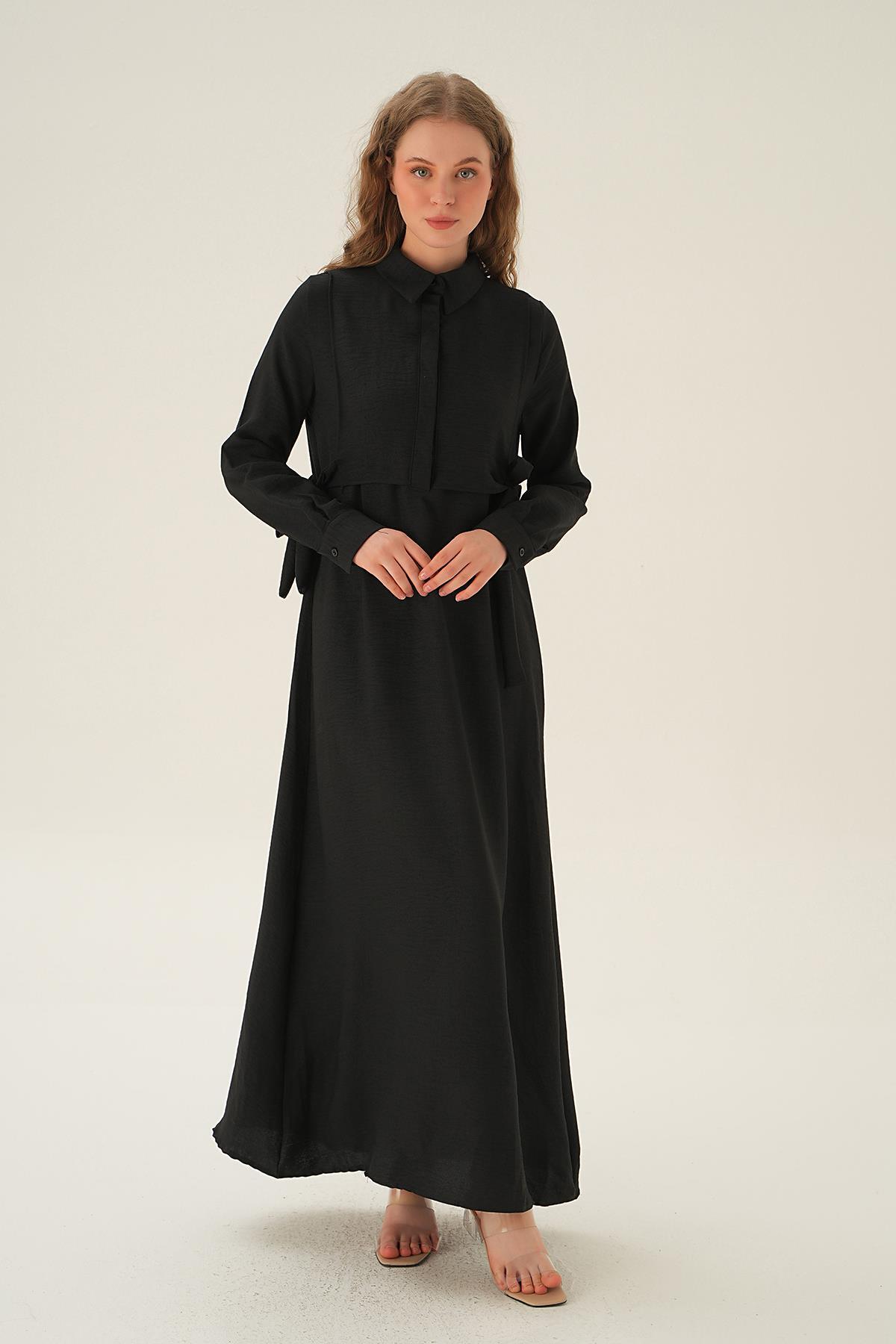 Siyah Düğmeli Kat Kat Elbise 2817 - RAYS Siyah Düğmeli Kat Kat Elbise 2817 - RAYS (1)