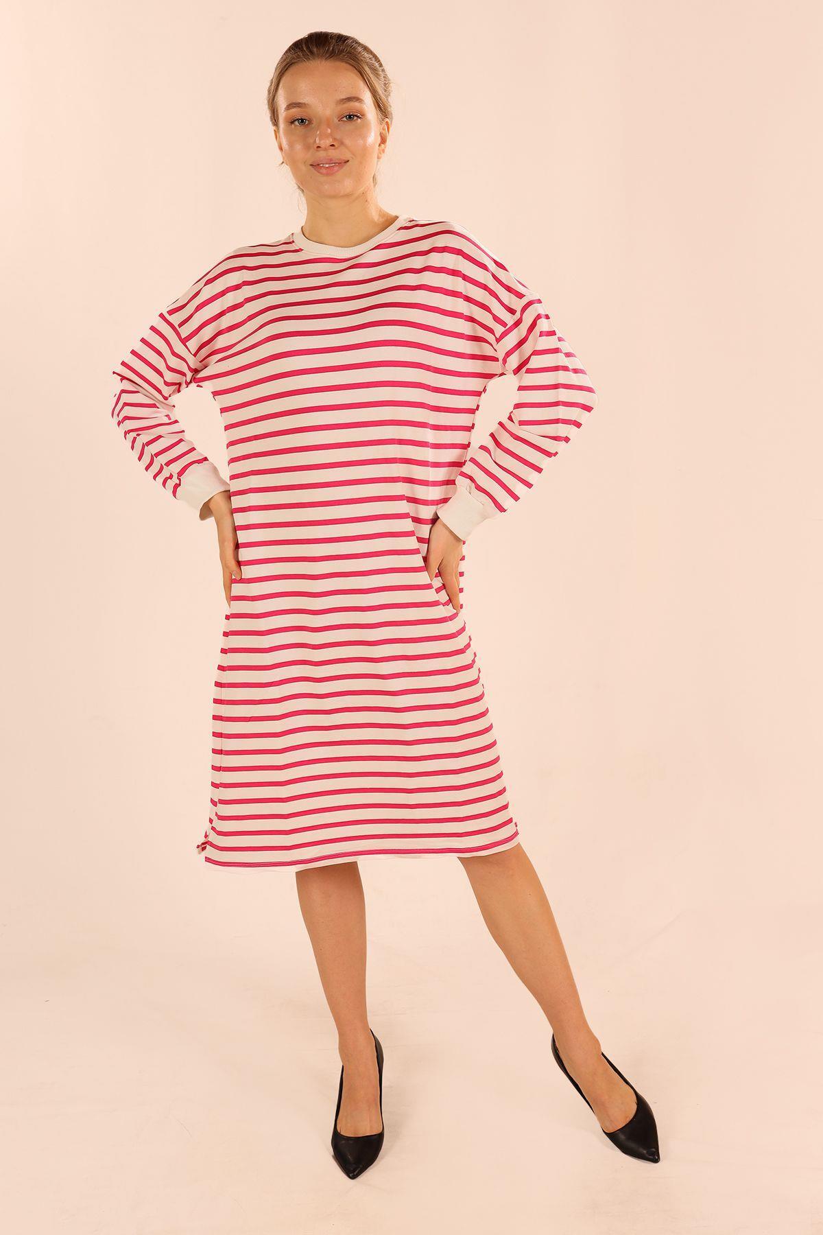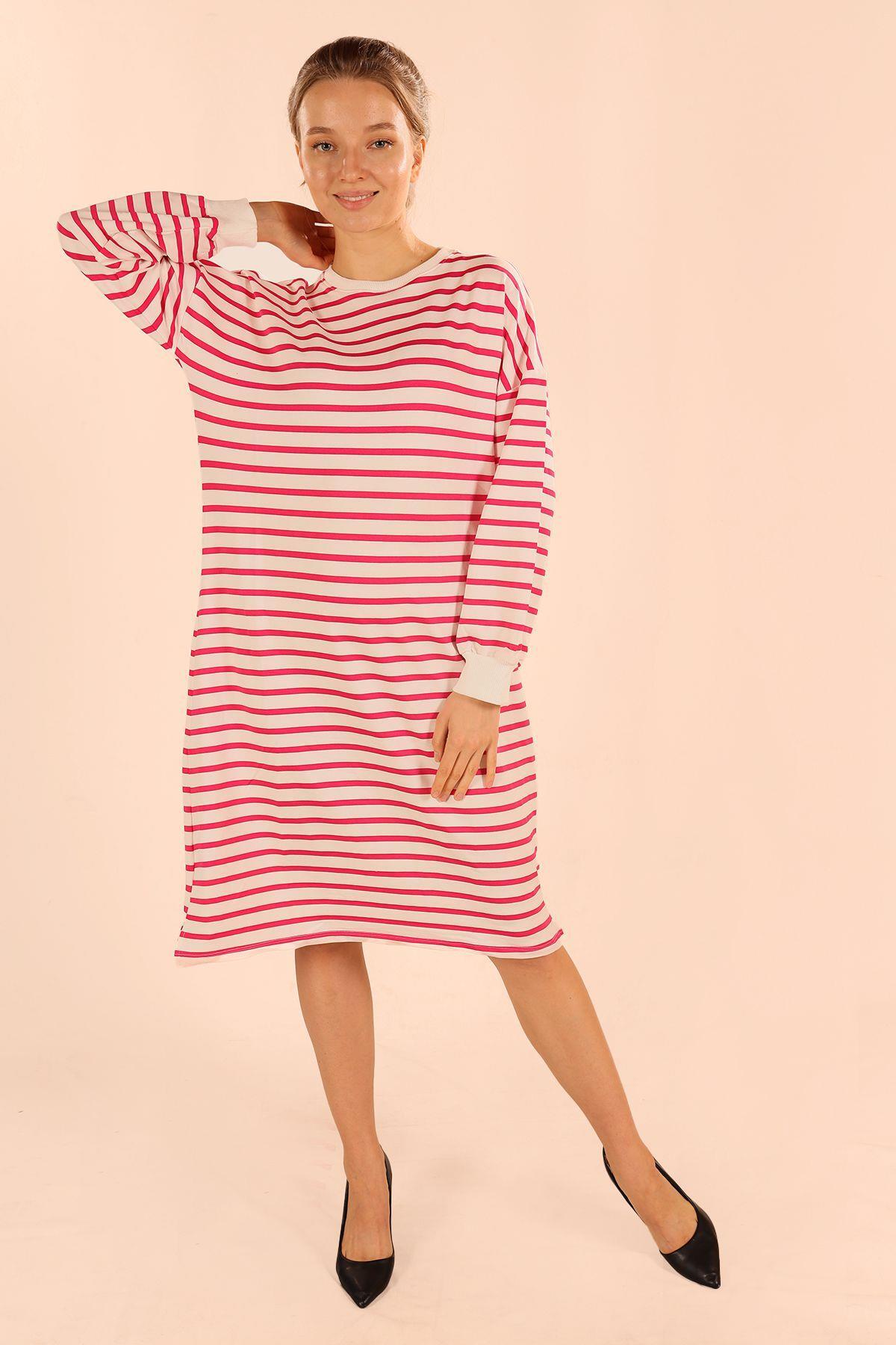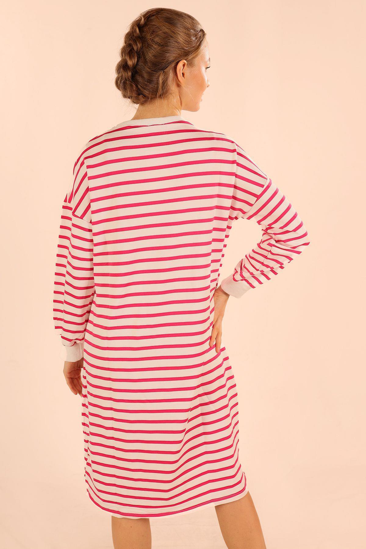 Fuşya Çizgili Uzun Sweat 6810