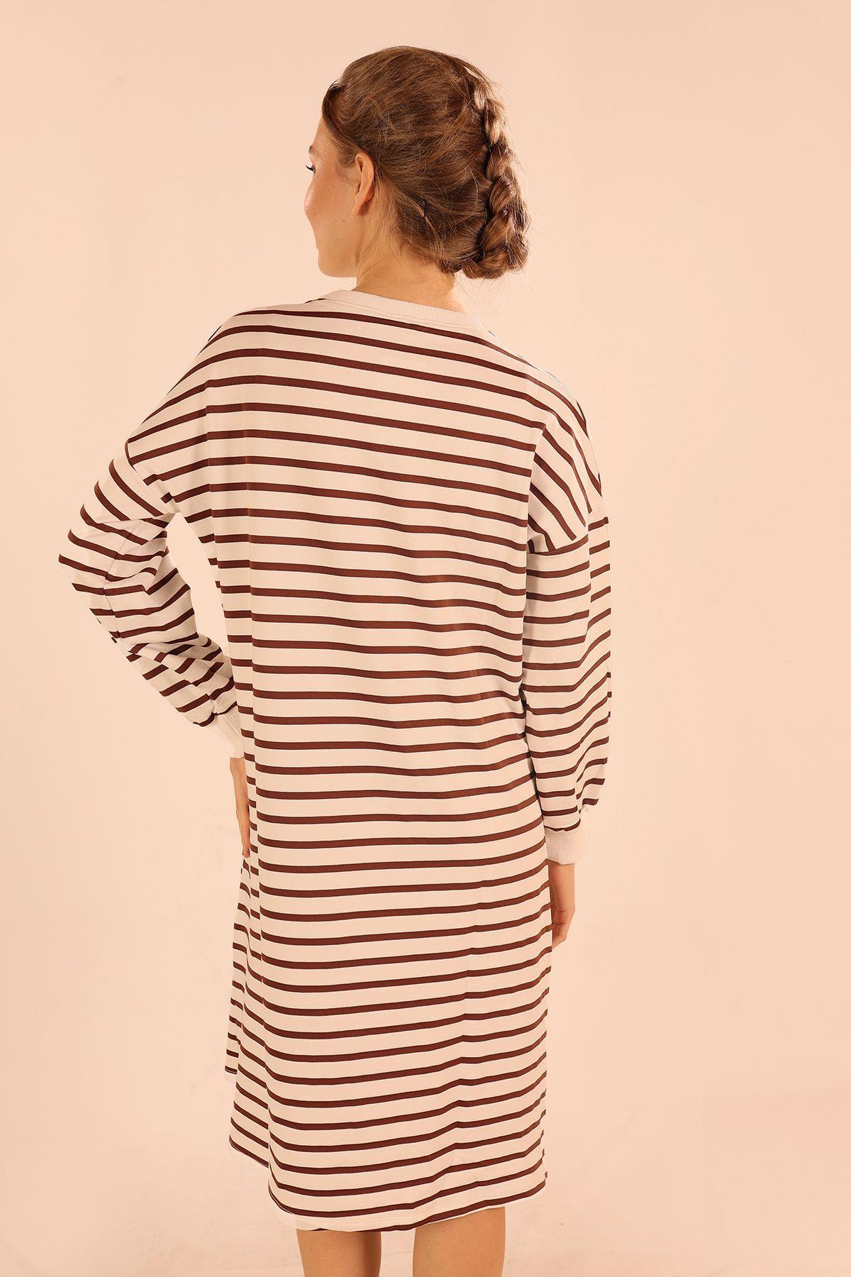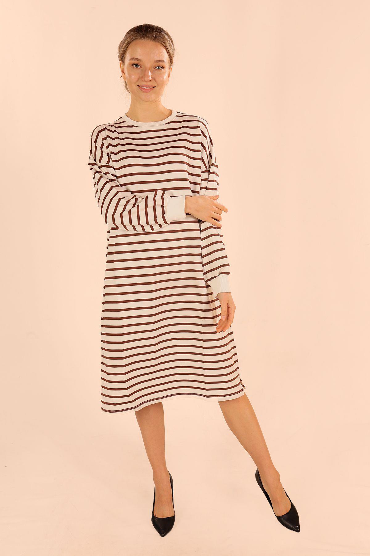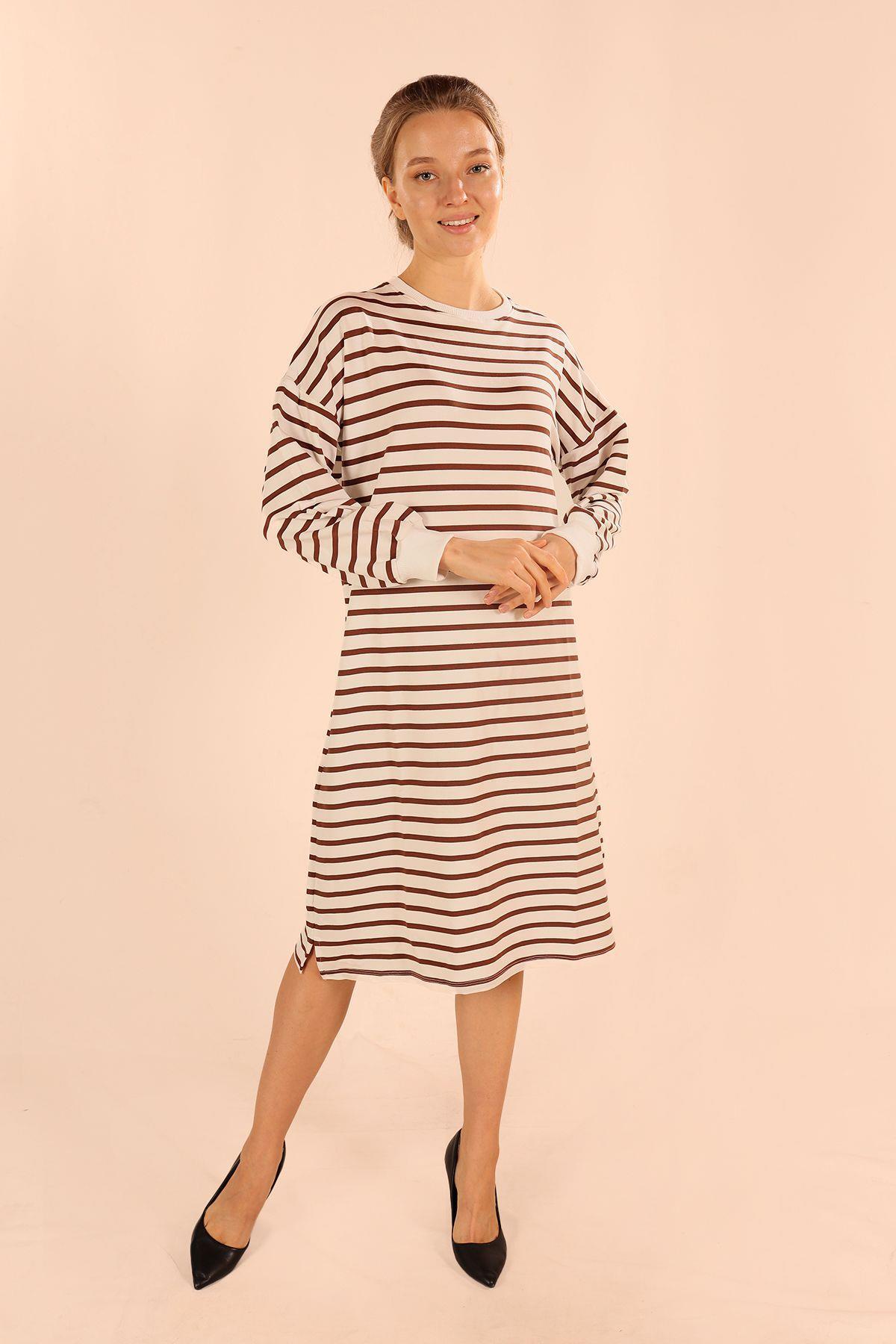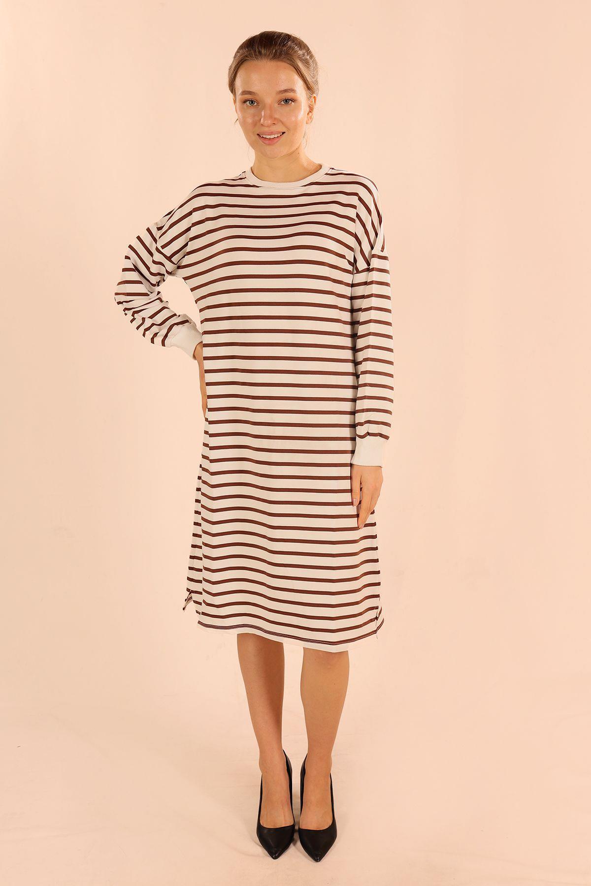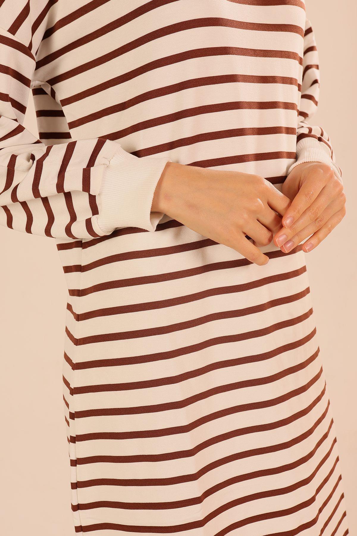 Kahve Çizgili Uzun Sweat 6810