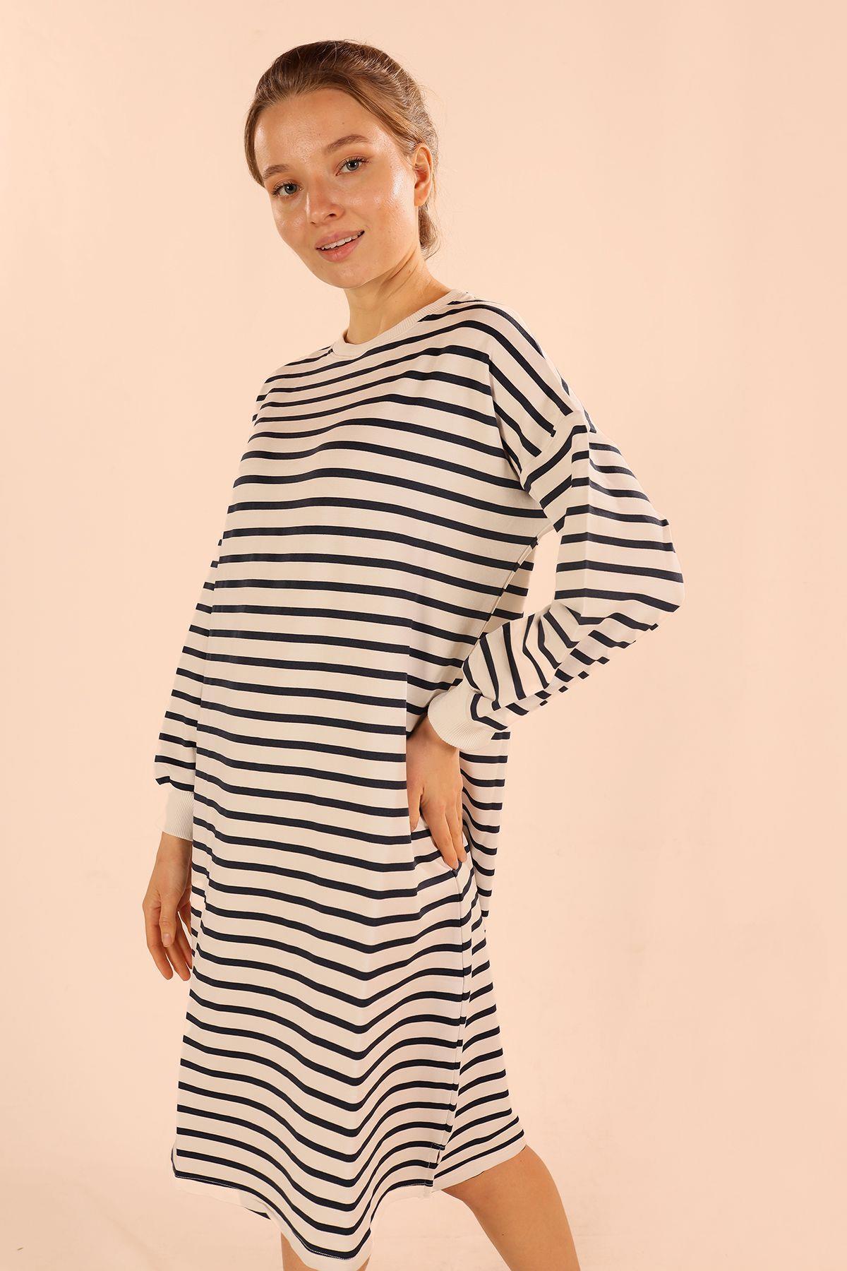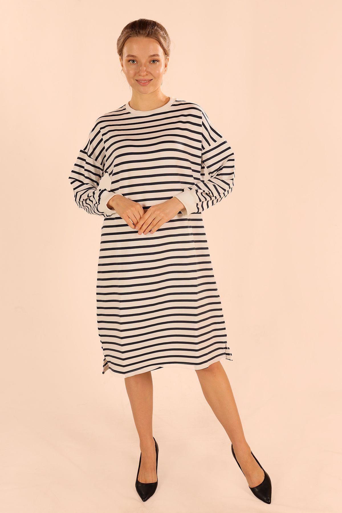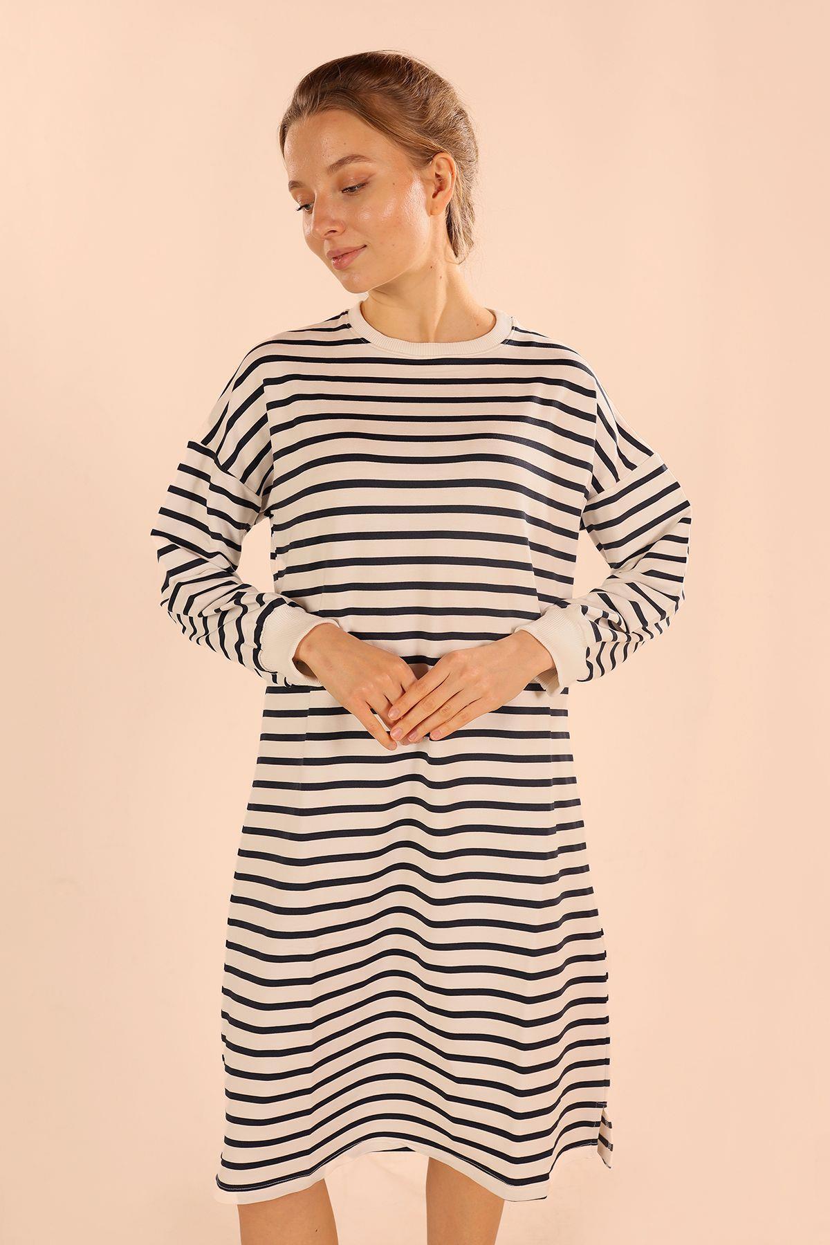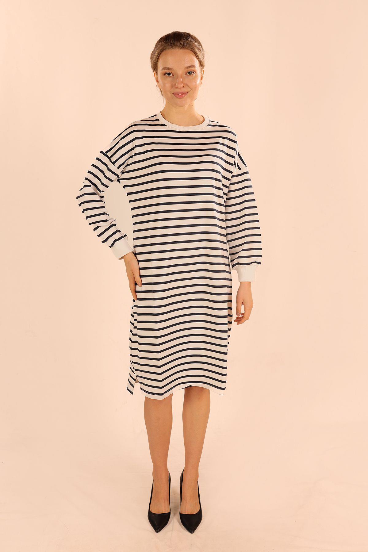 Laci Çizgili Uzun Sweat 6810