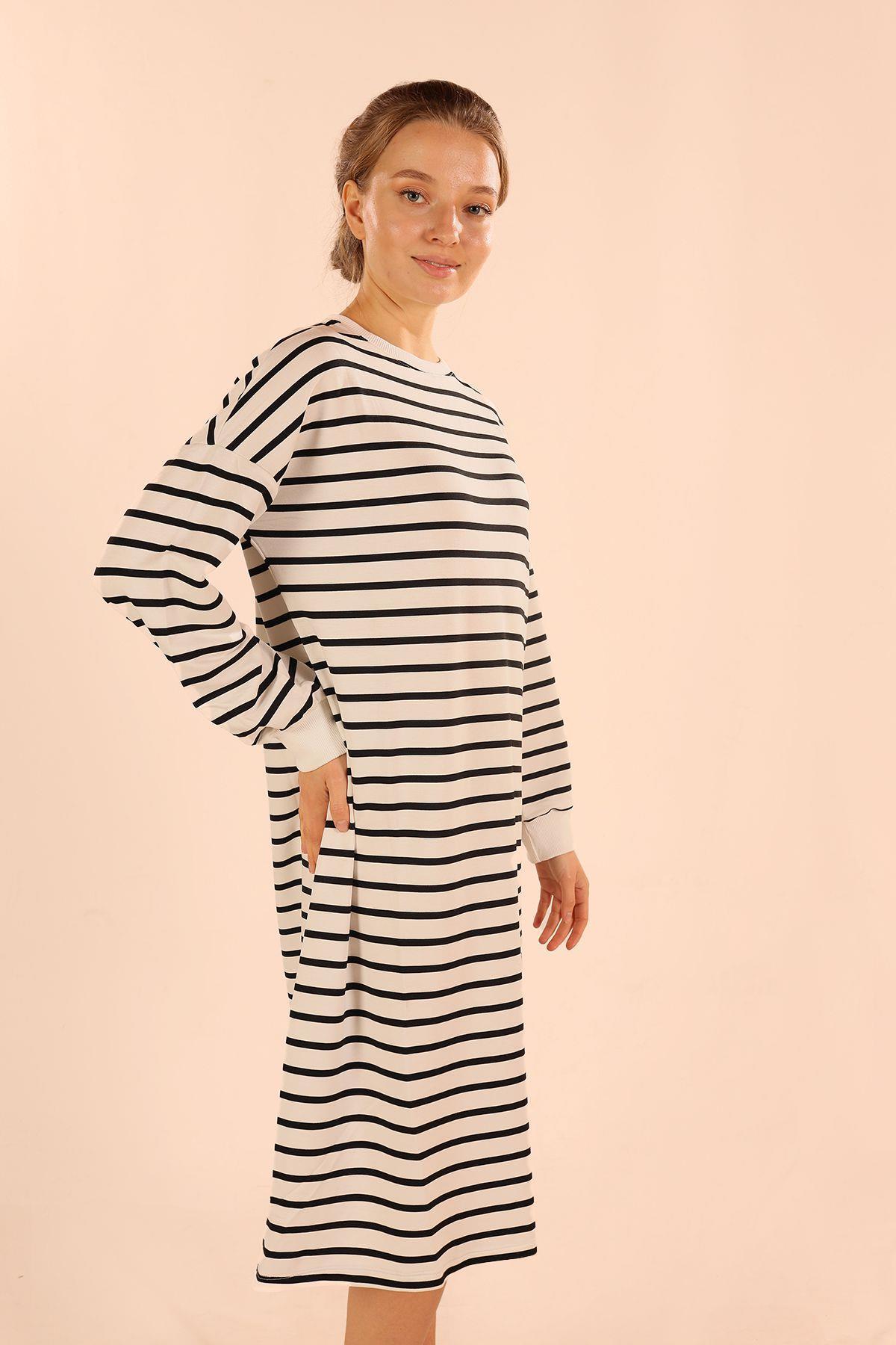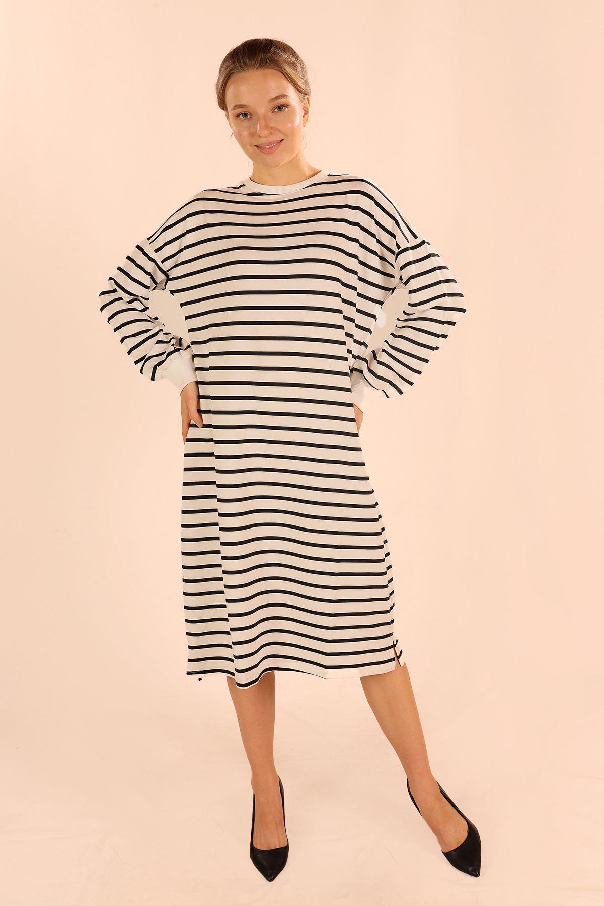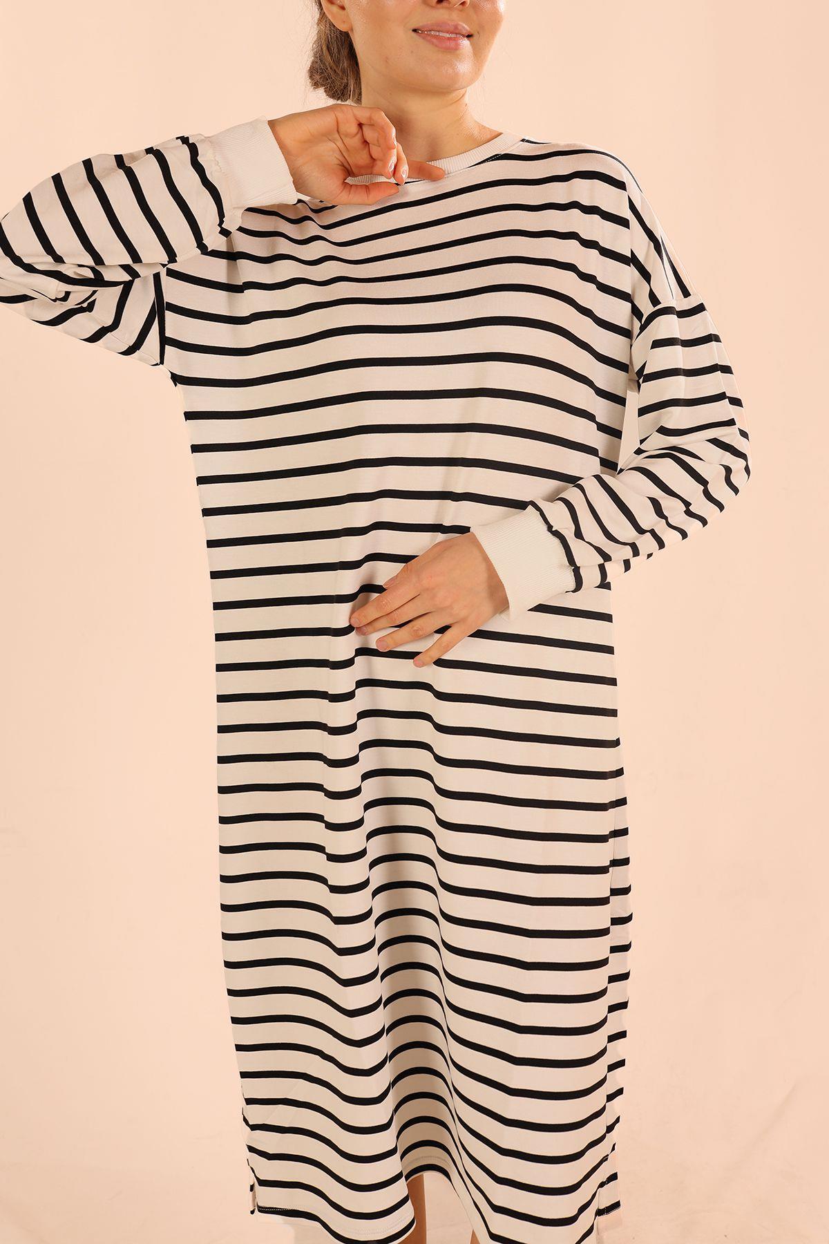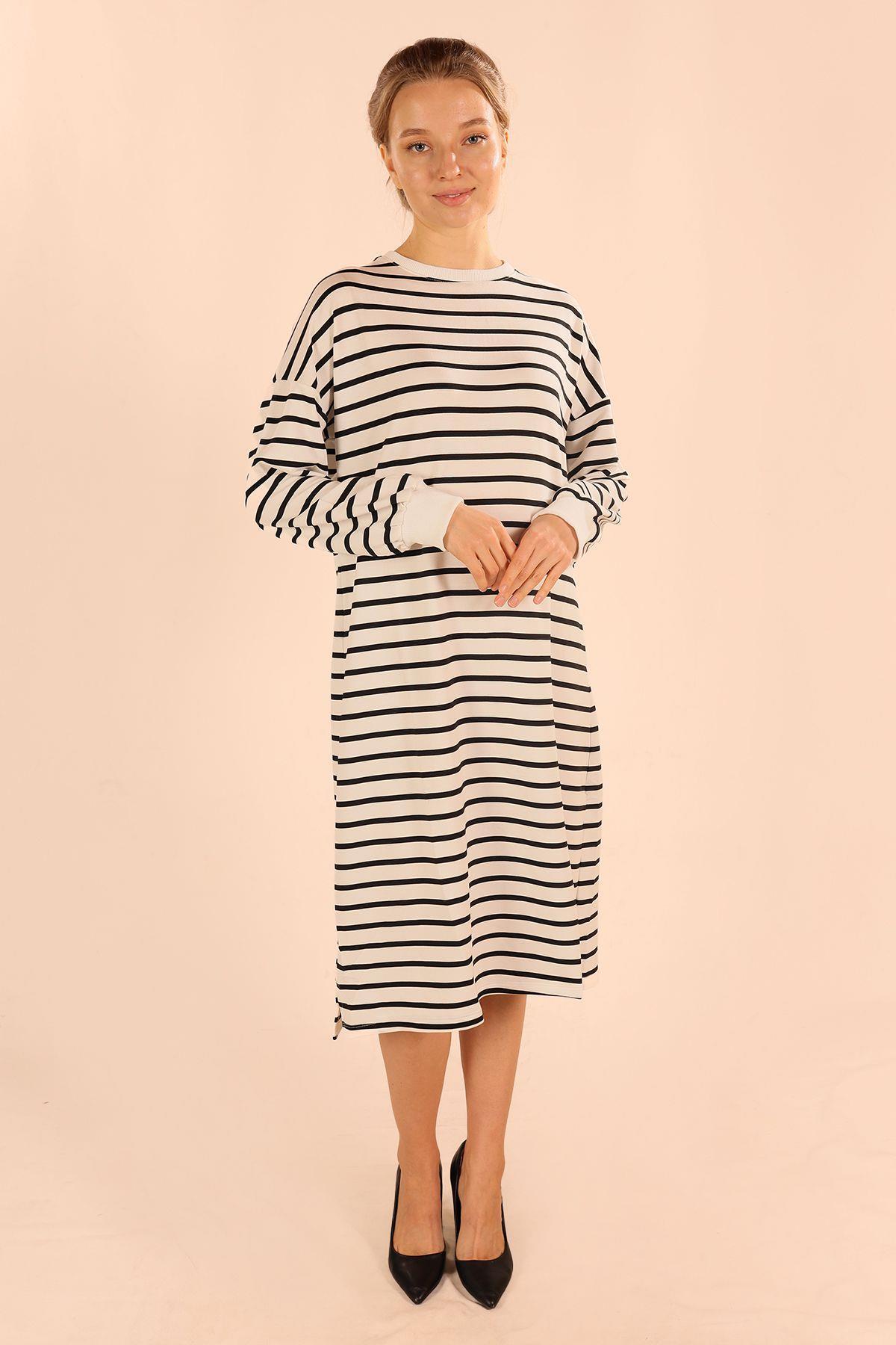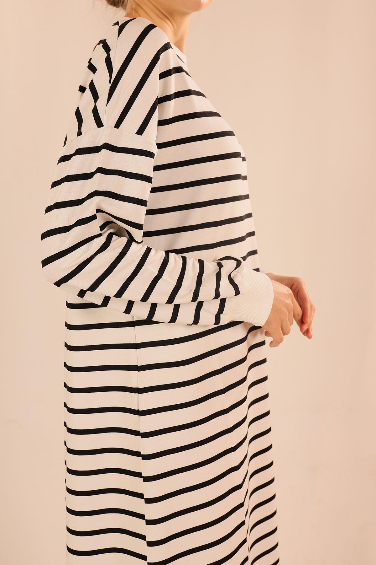 Siyah Çizgili Uzun Sweat 6810