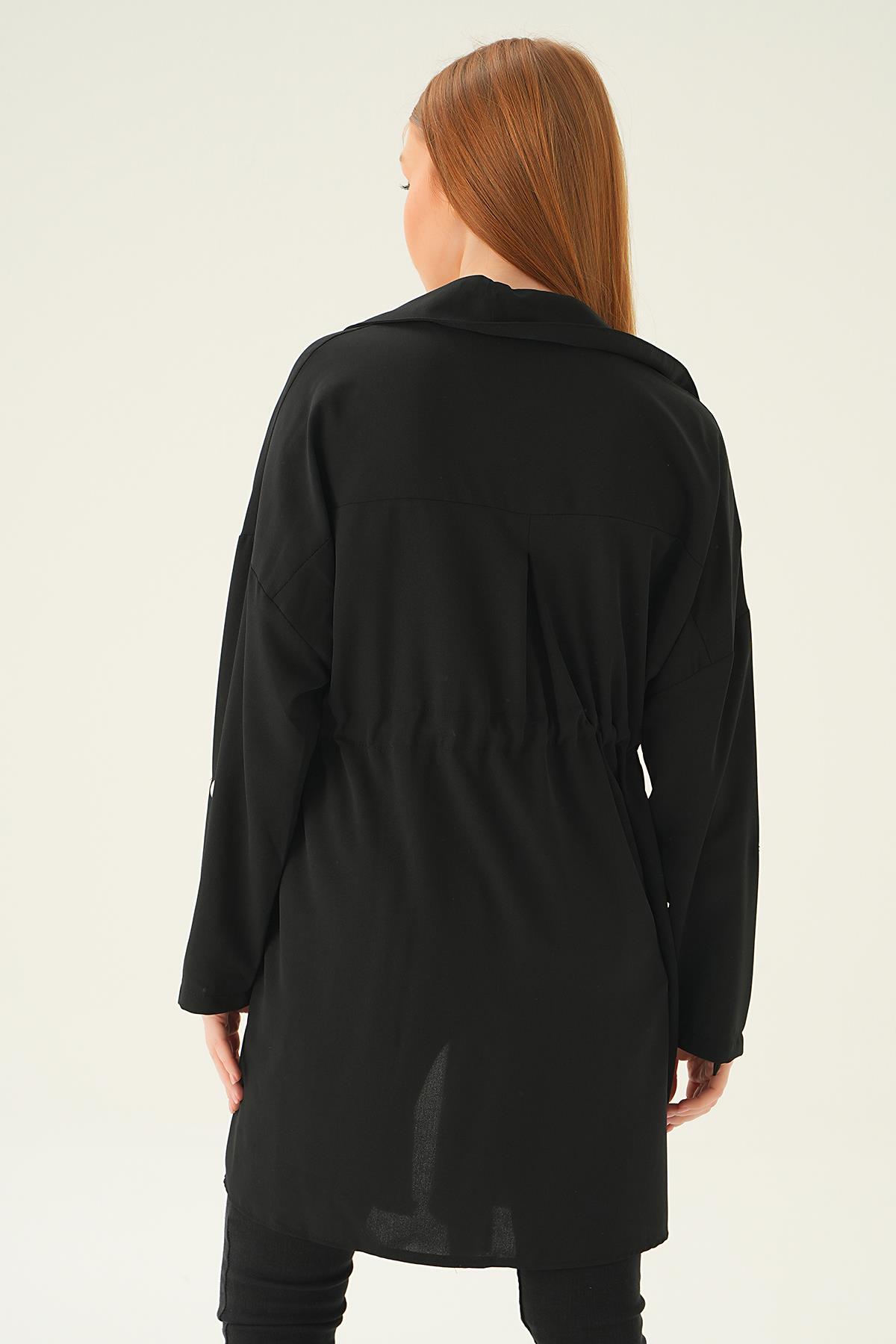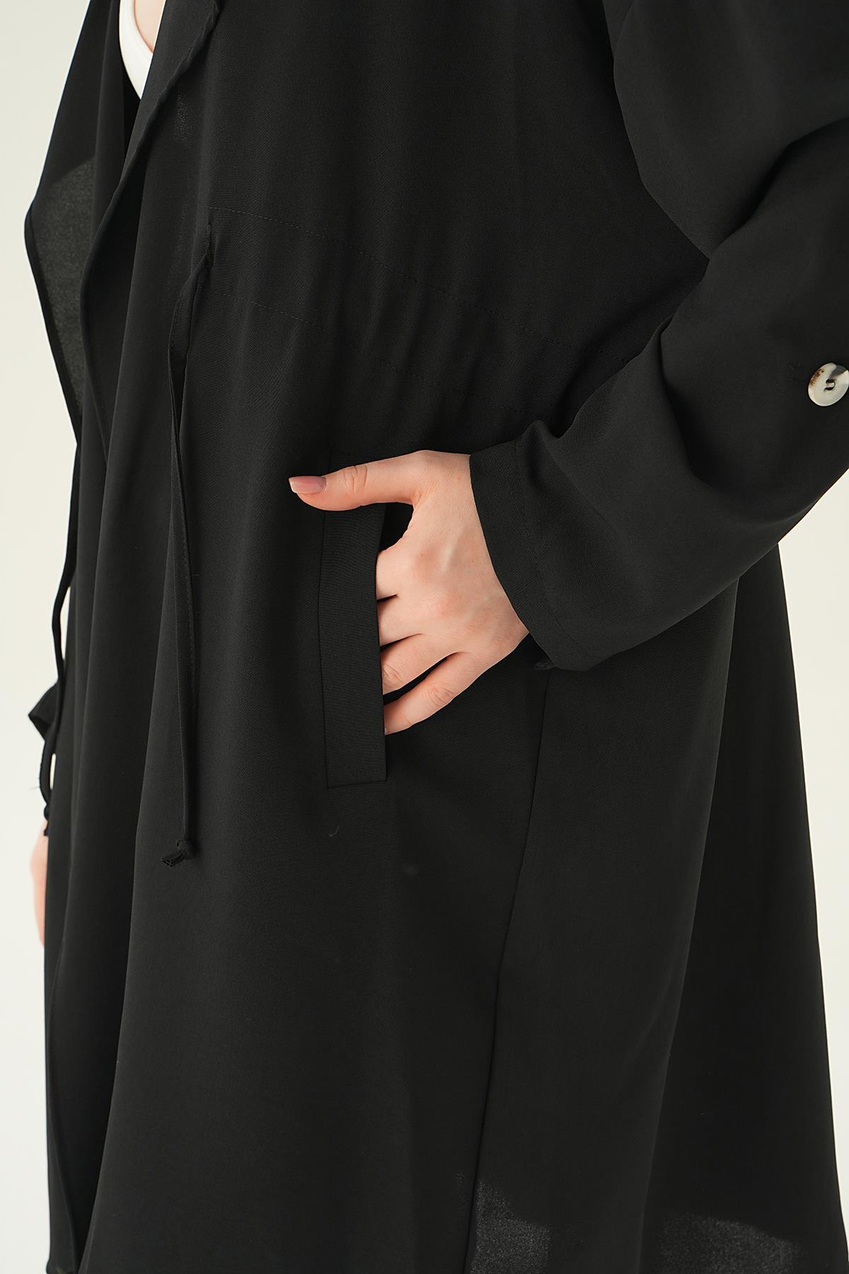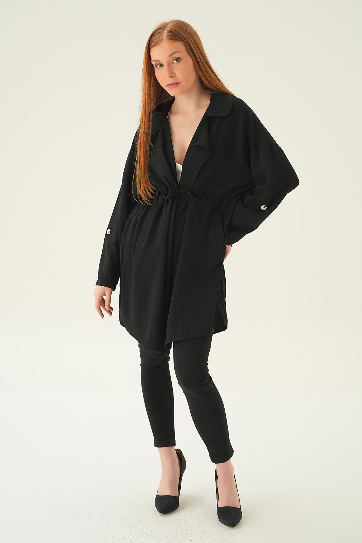 Siyah Kol Katlama Bel Bağlamalı Ceket 6833A
