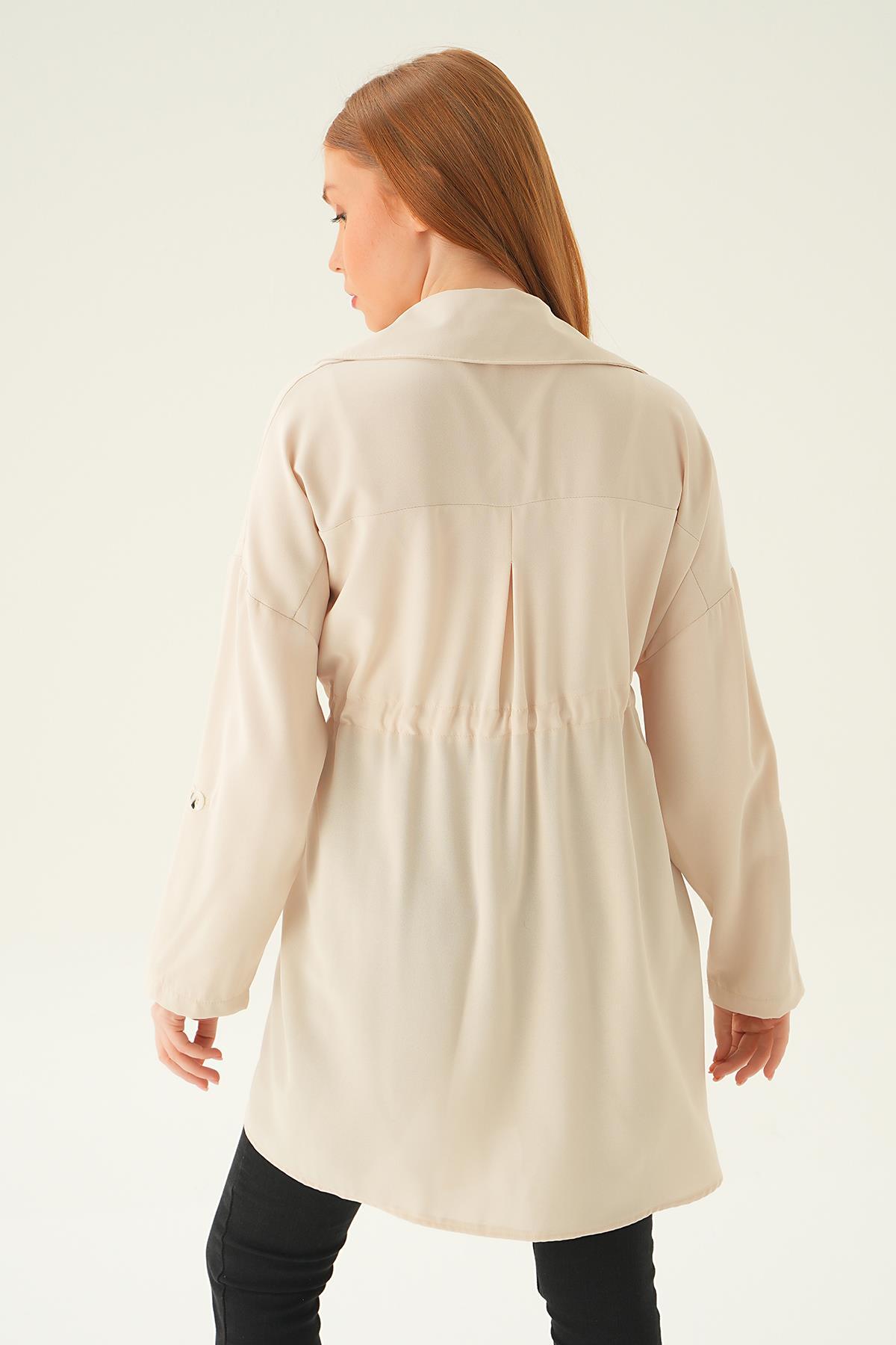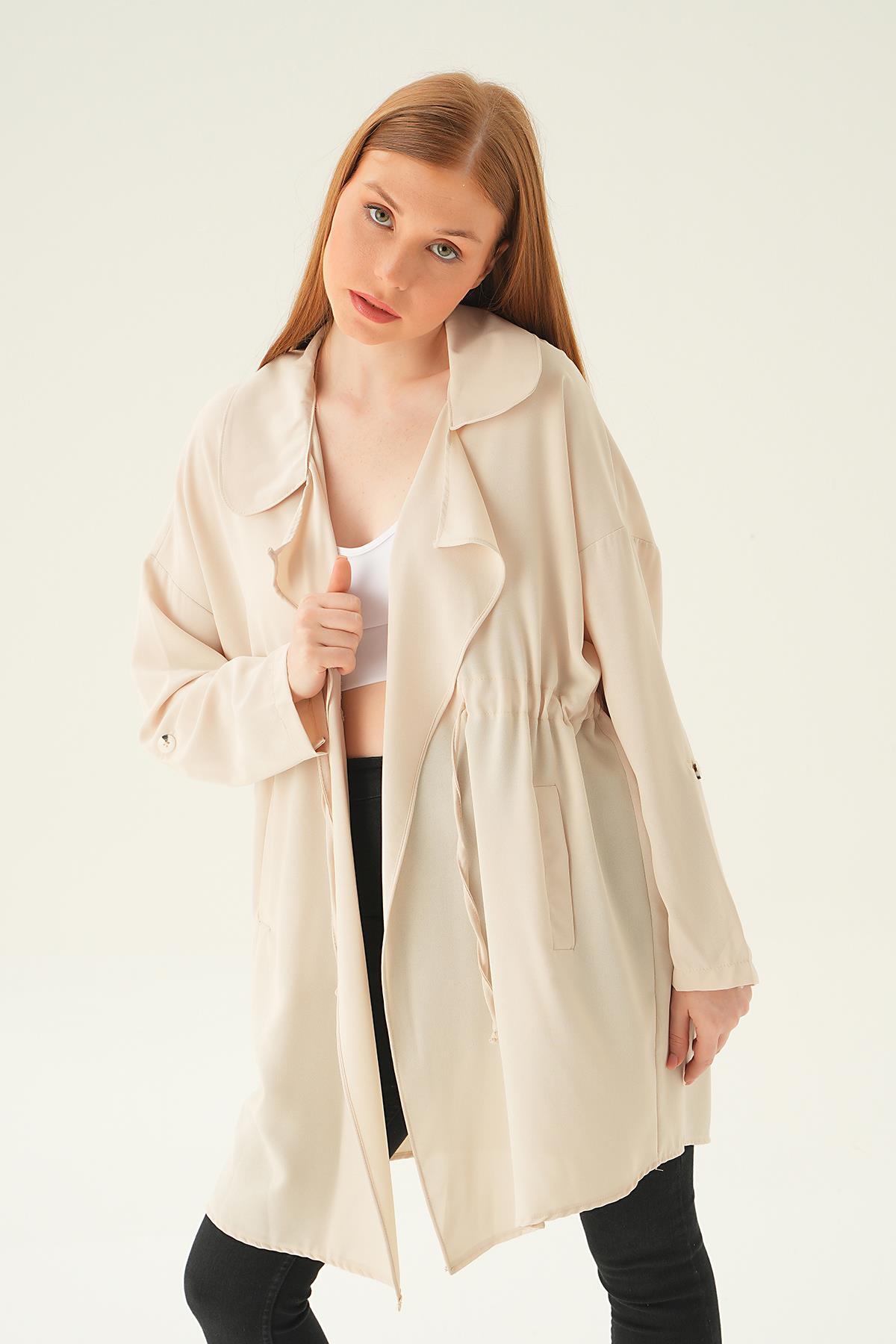 Taş Kol Katlama Bel Bağlamalı Ceket 6833A