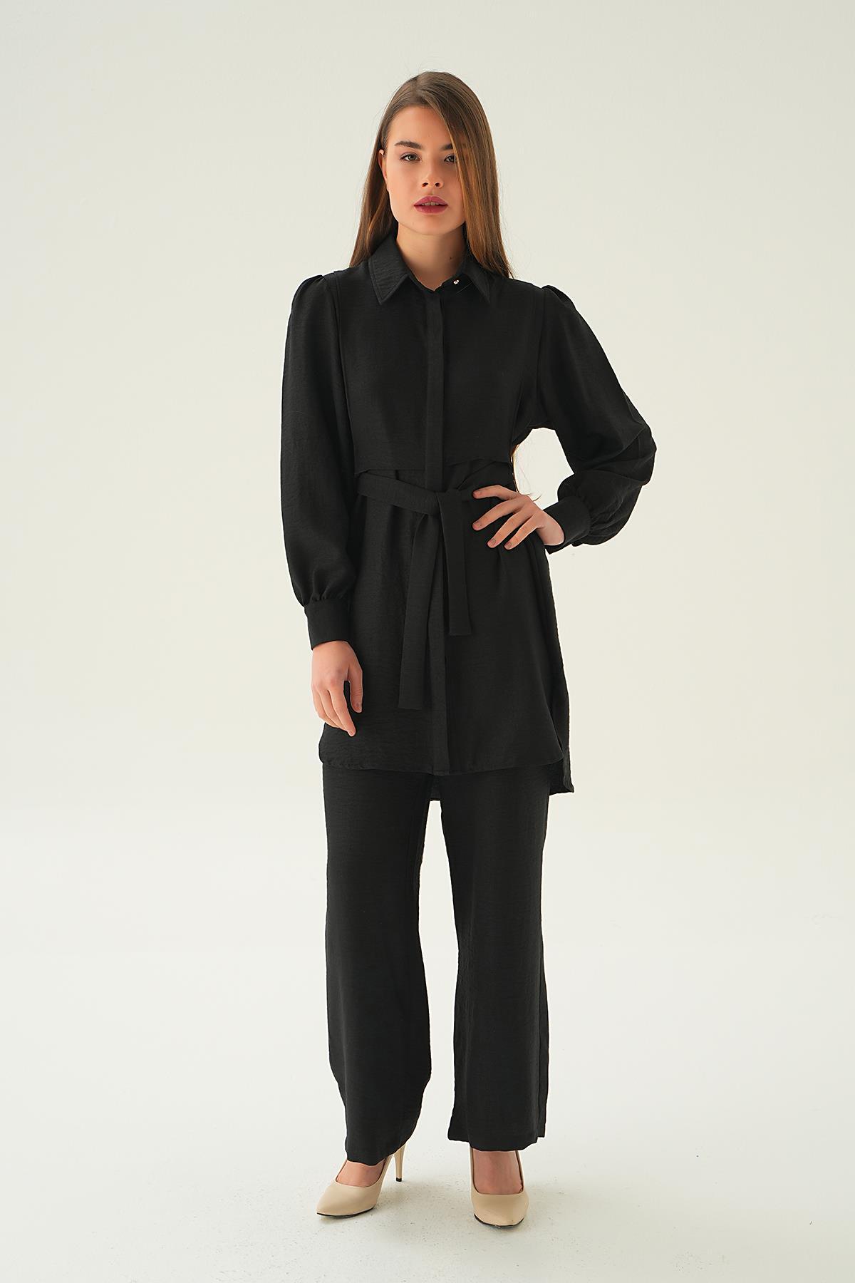 Siyah Bağlamalı Tunik Pantolon Takım 6835A