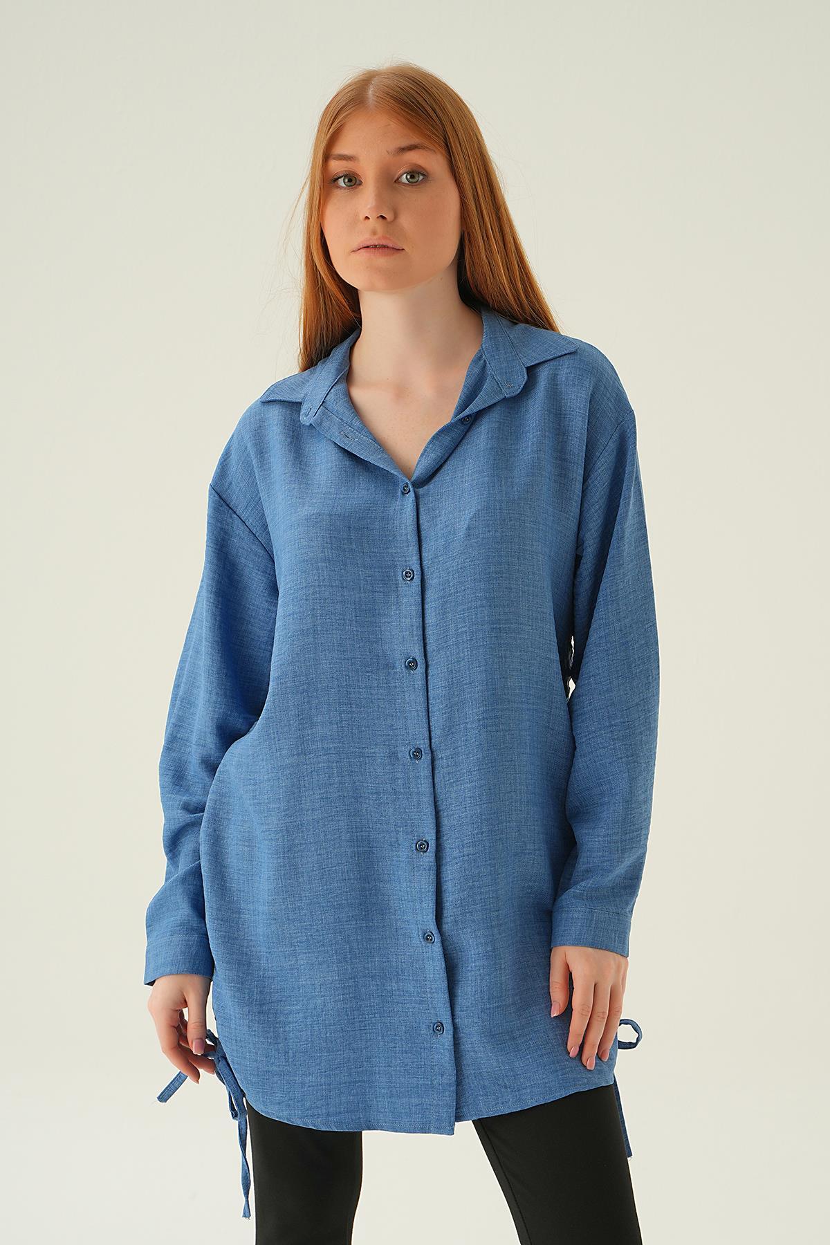 İndigo Yanları Büzgülü Tunik 6837A