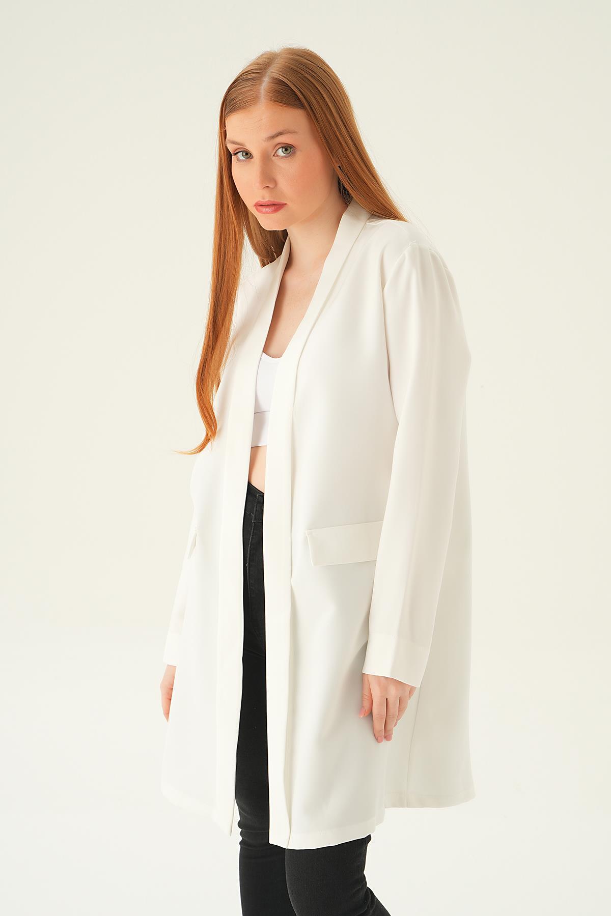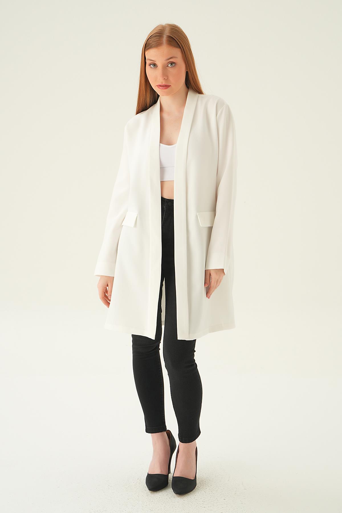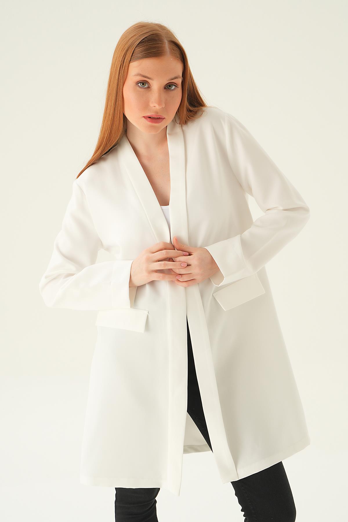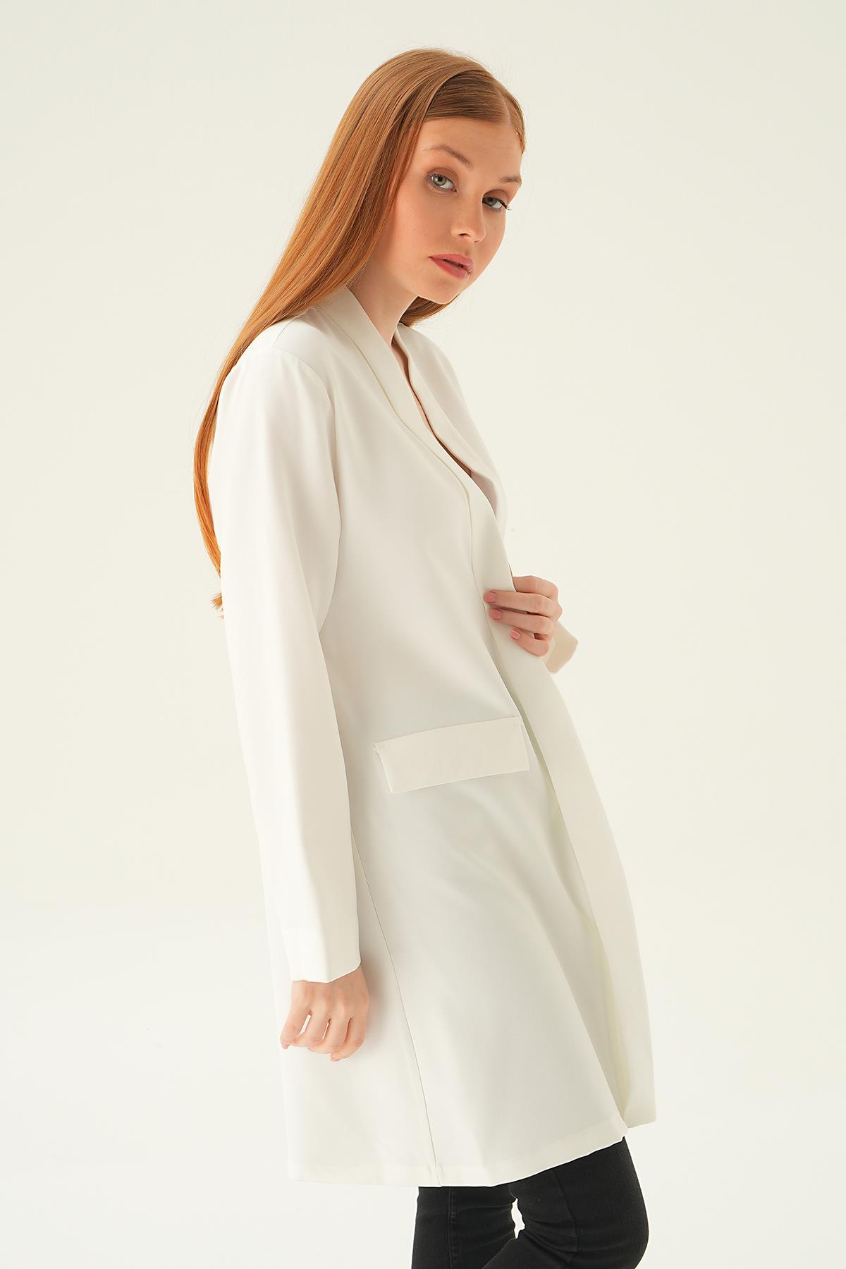 Ekru Uzun Ceket 6839A