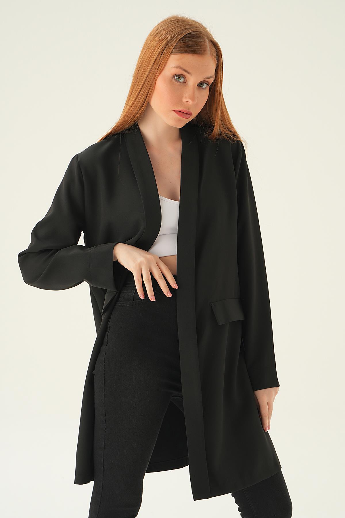 Siyah Uzun Ceket 6839A