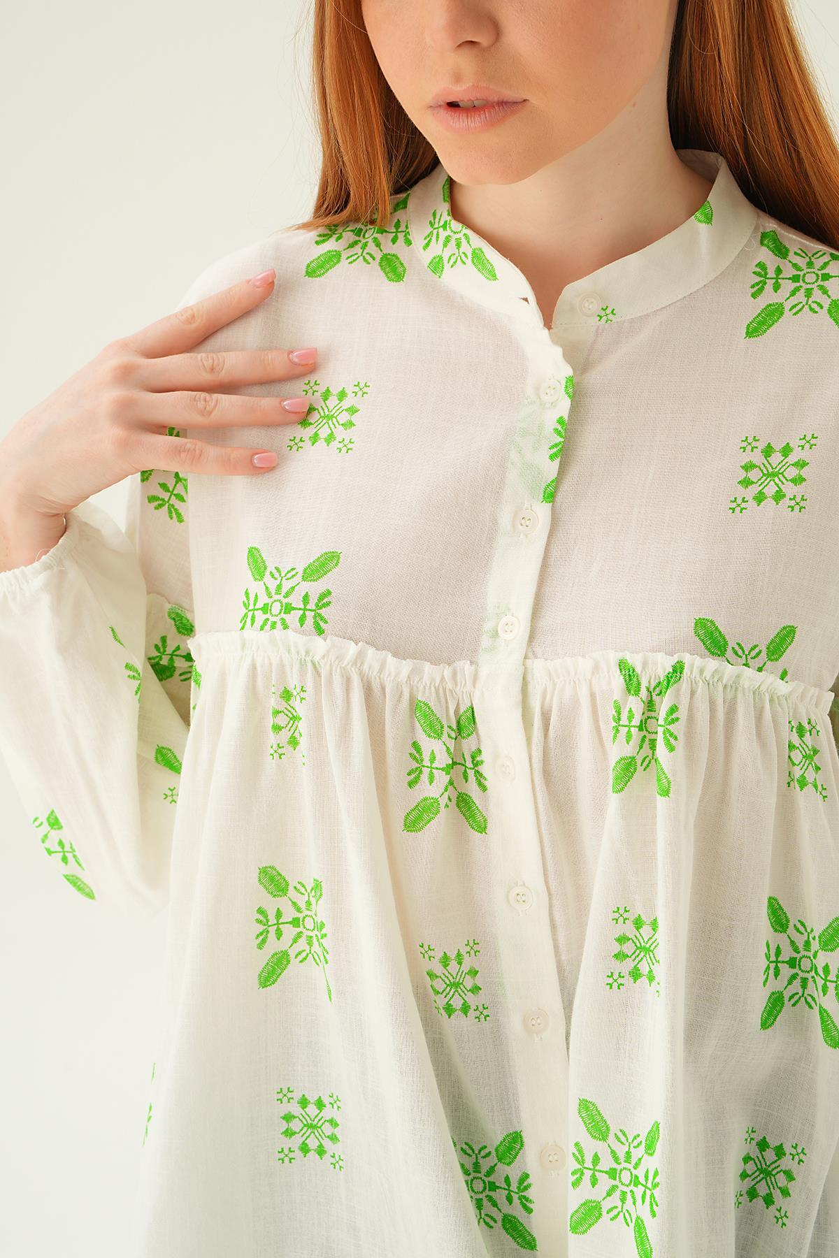 6853A Hakim Yaka Desenli Tunik Benetton Yeşili