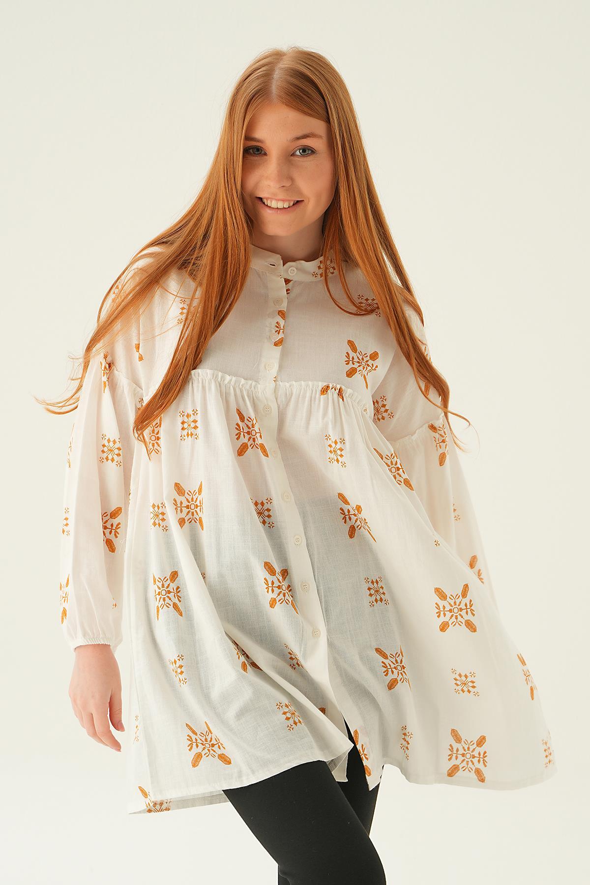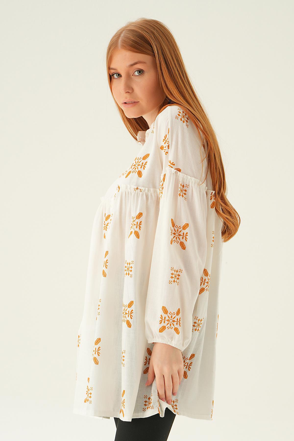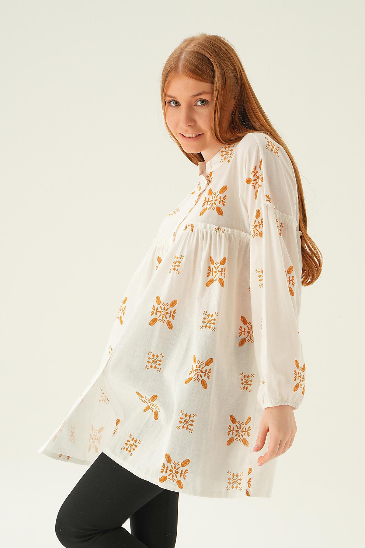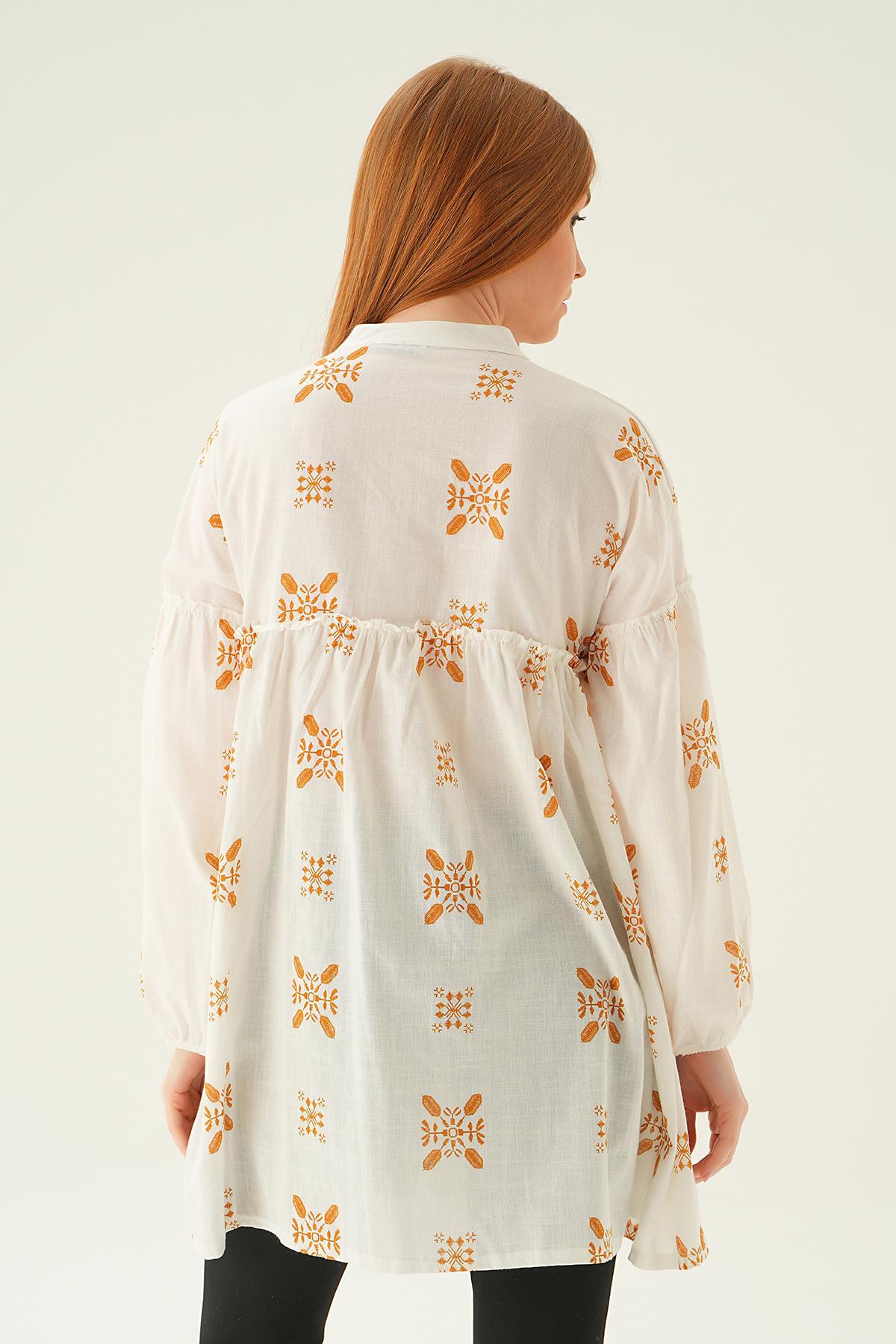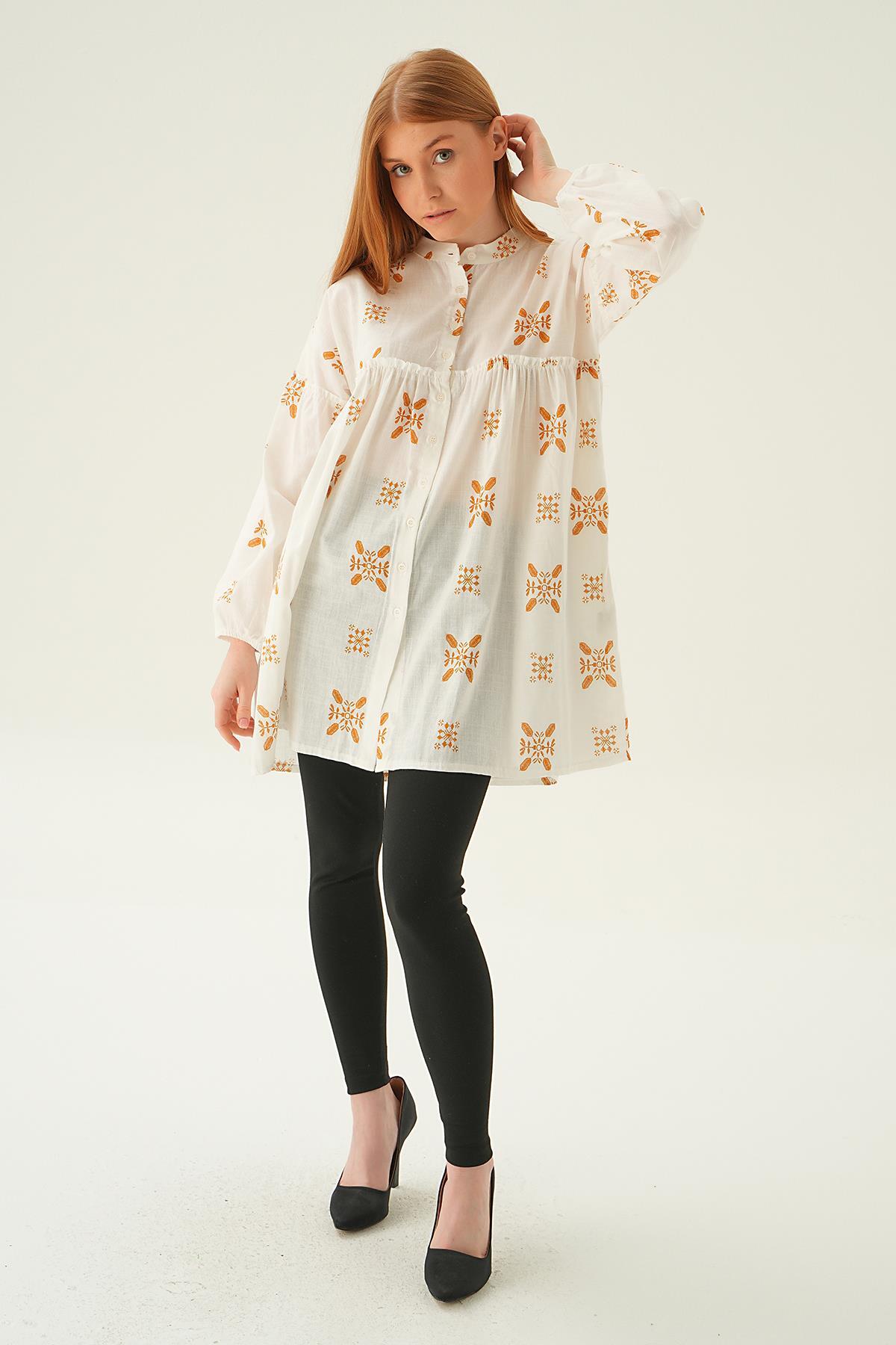 Bisküvi Hakim Yaka Desenli Tunik 6853A