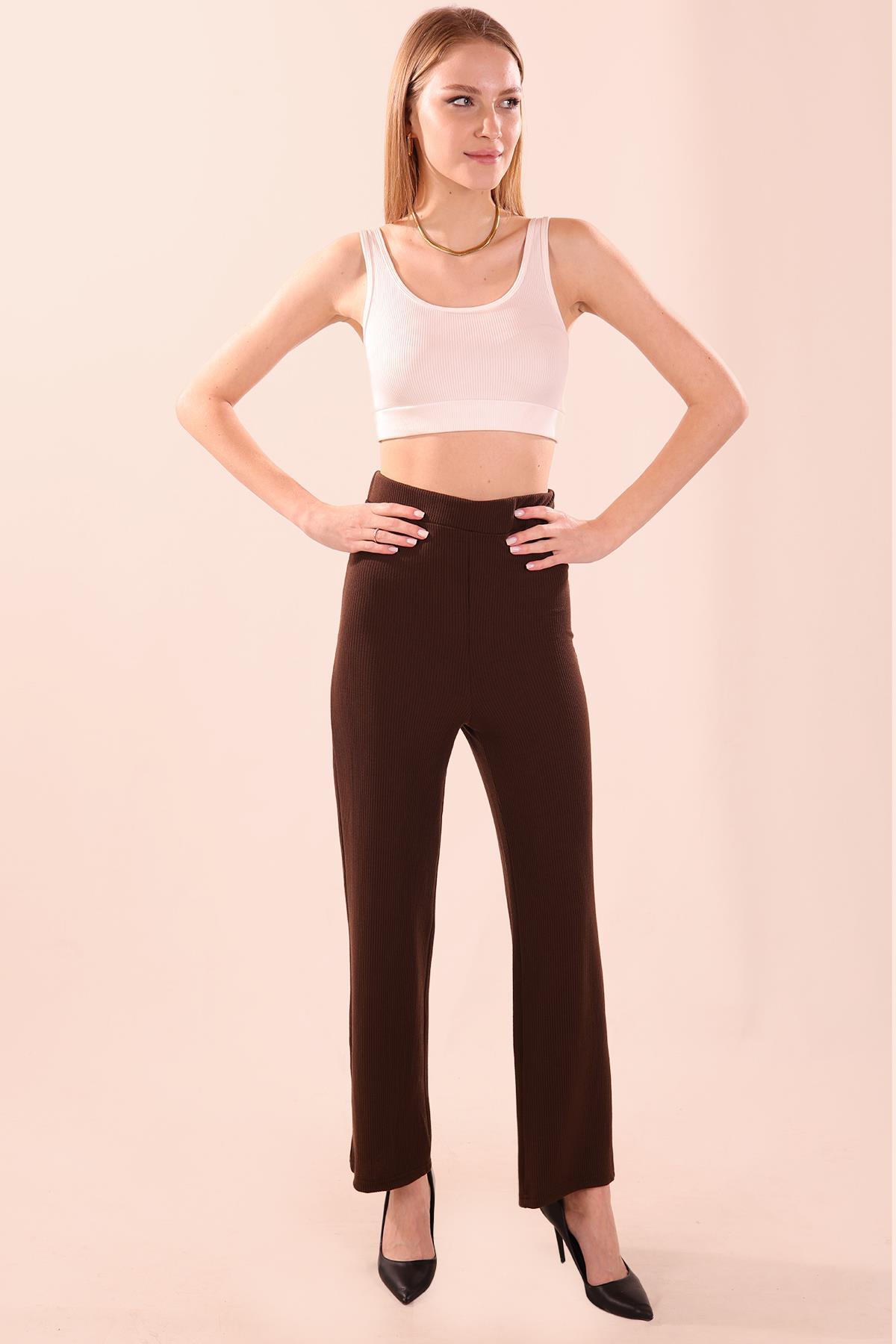 Kahve Bel Lastikli Pantolon 6855A