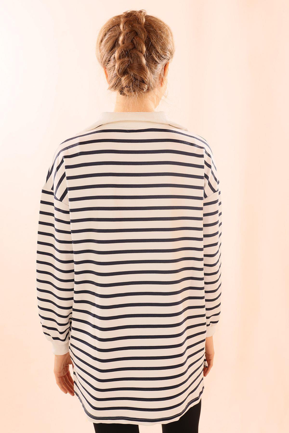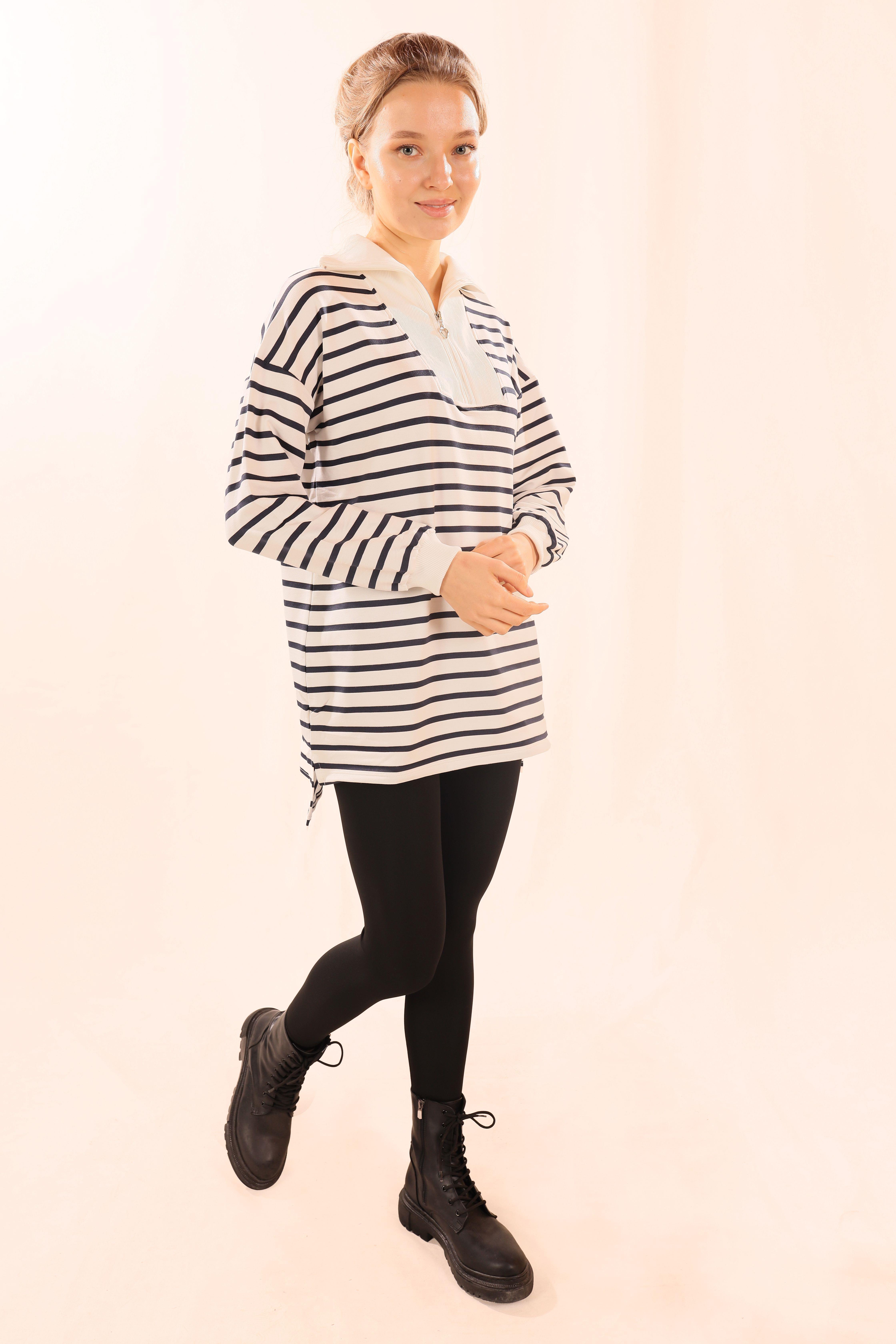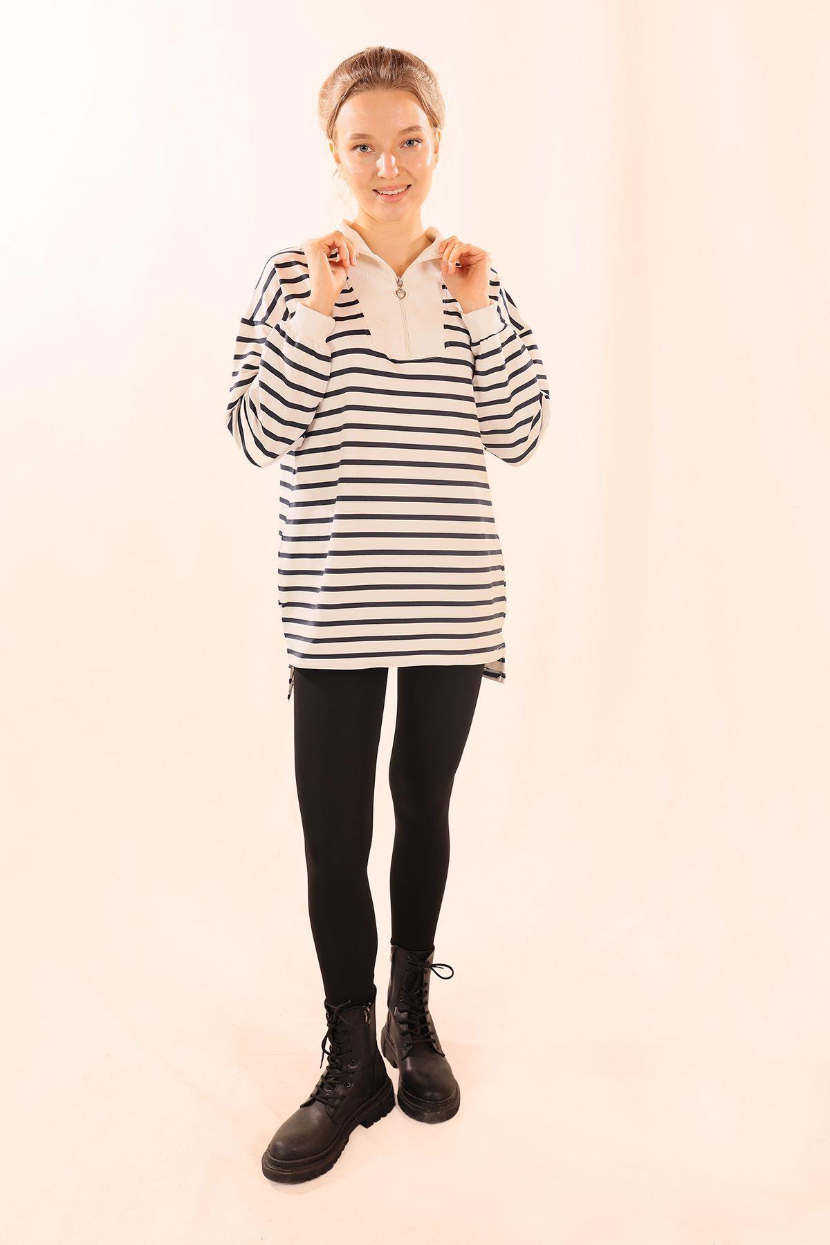 Laci Fermuarlı Çizgili Sweat 6861