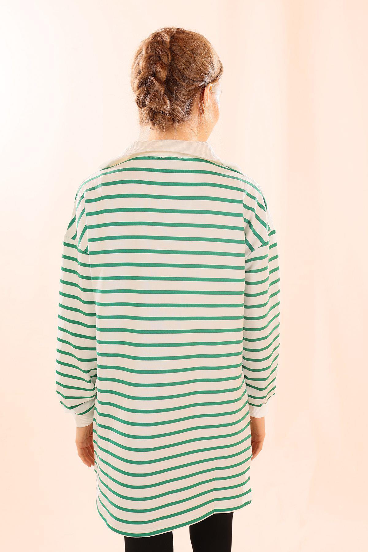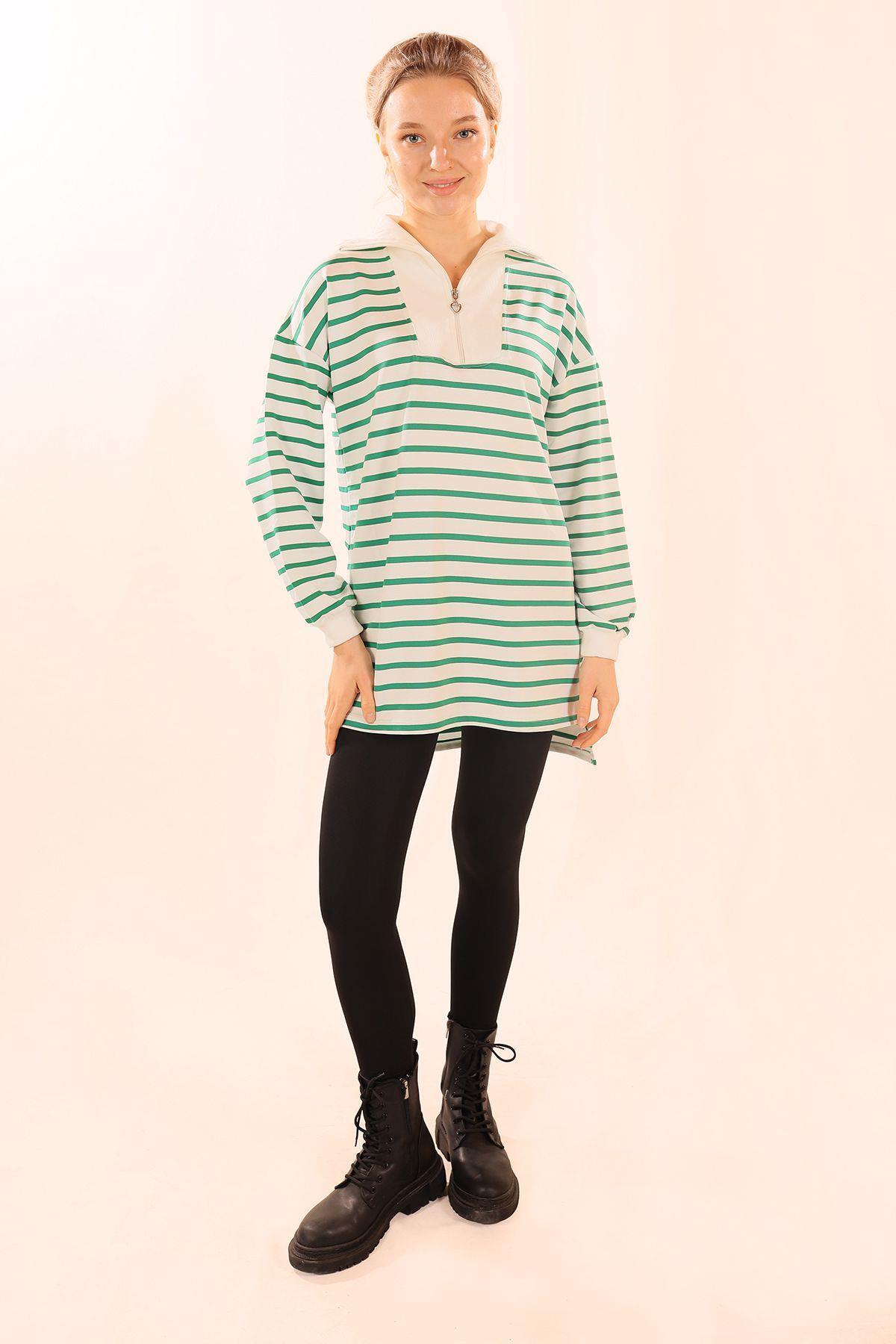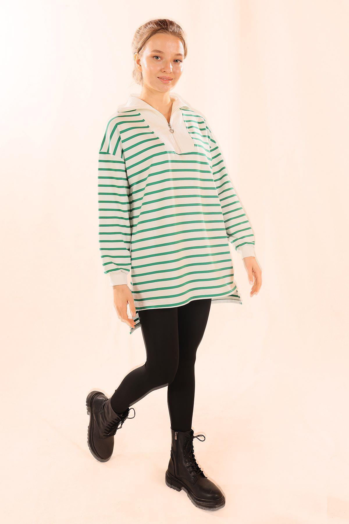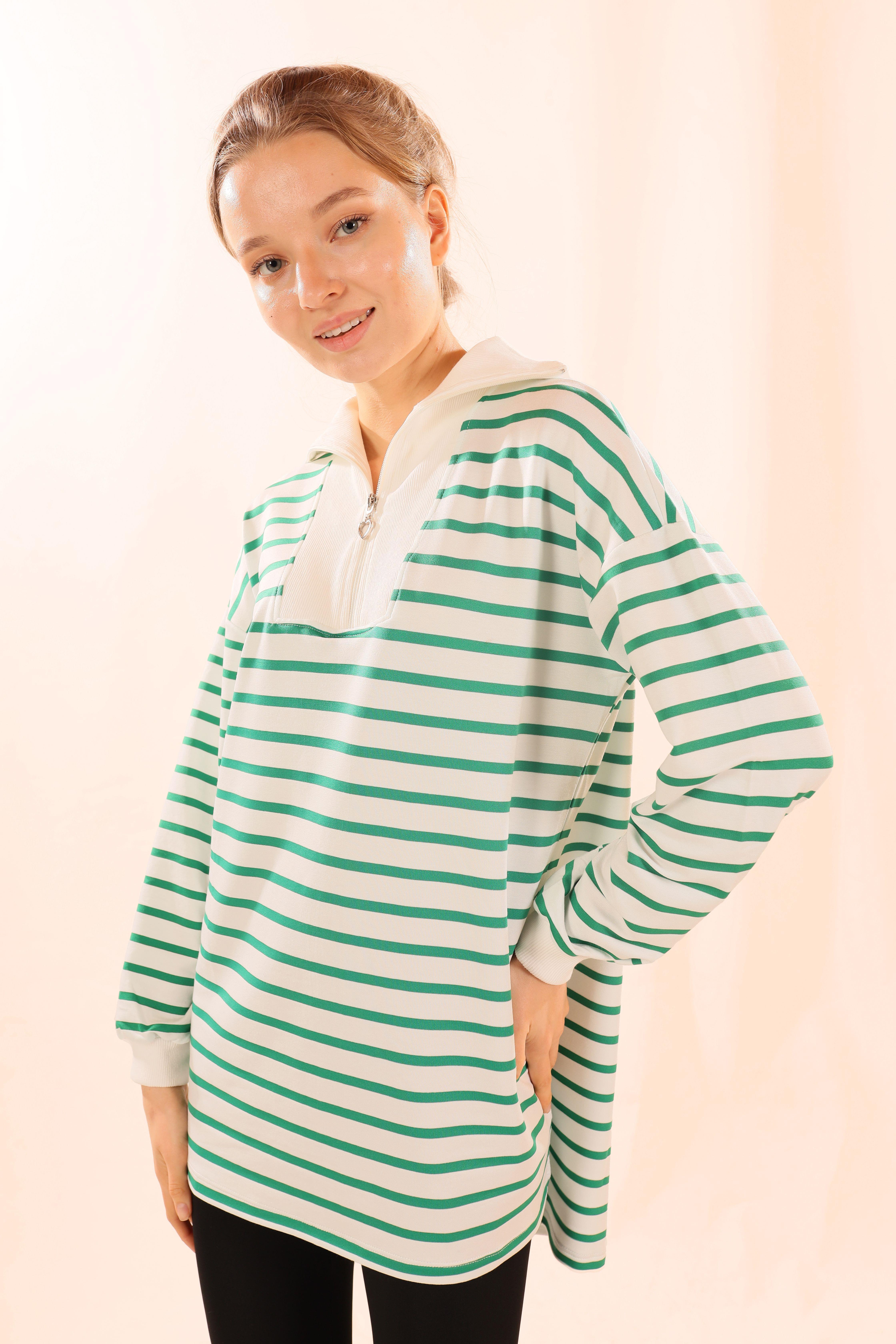 Yeşil Fermuarlı Çizgili Sweat 6861