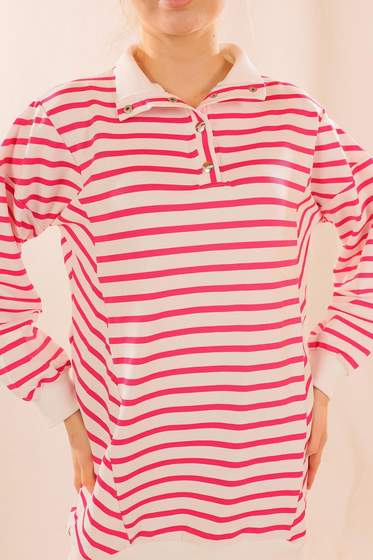 6868 Yaka Çıtçıtlı Çizgili Sweat Fuşya