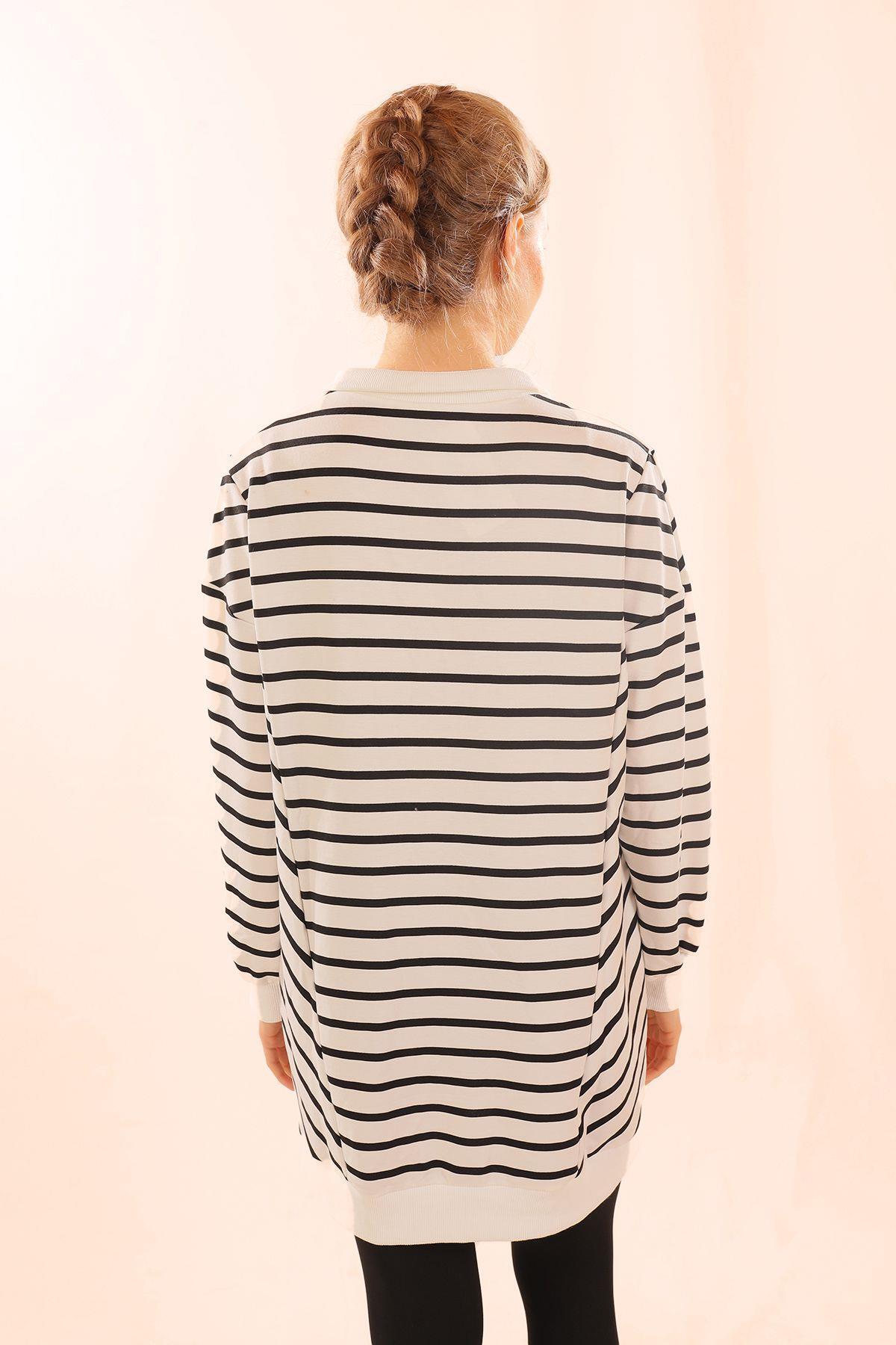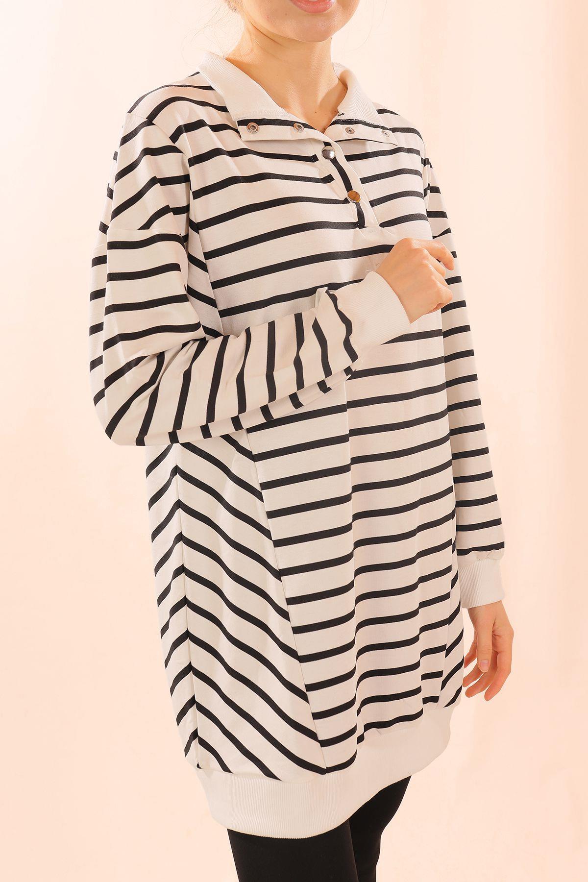 Siyah Yaka Çıtçıtlı Çizgili Sweat 6868