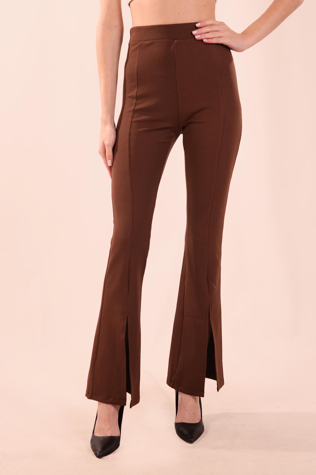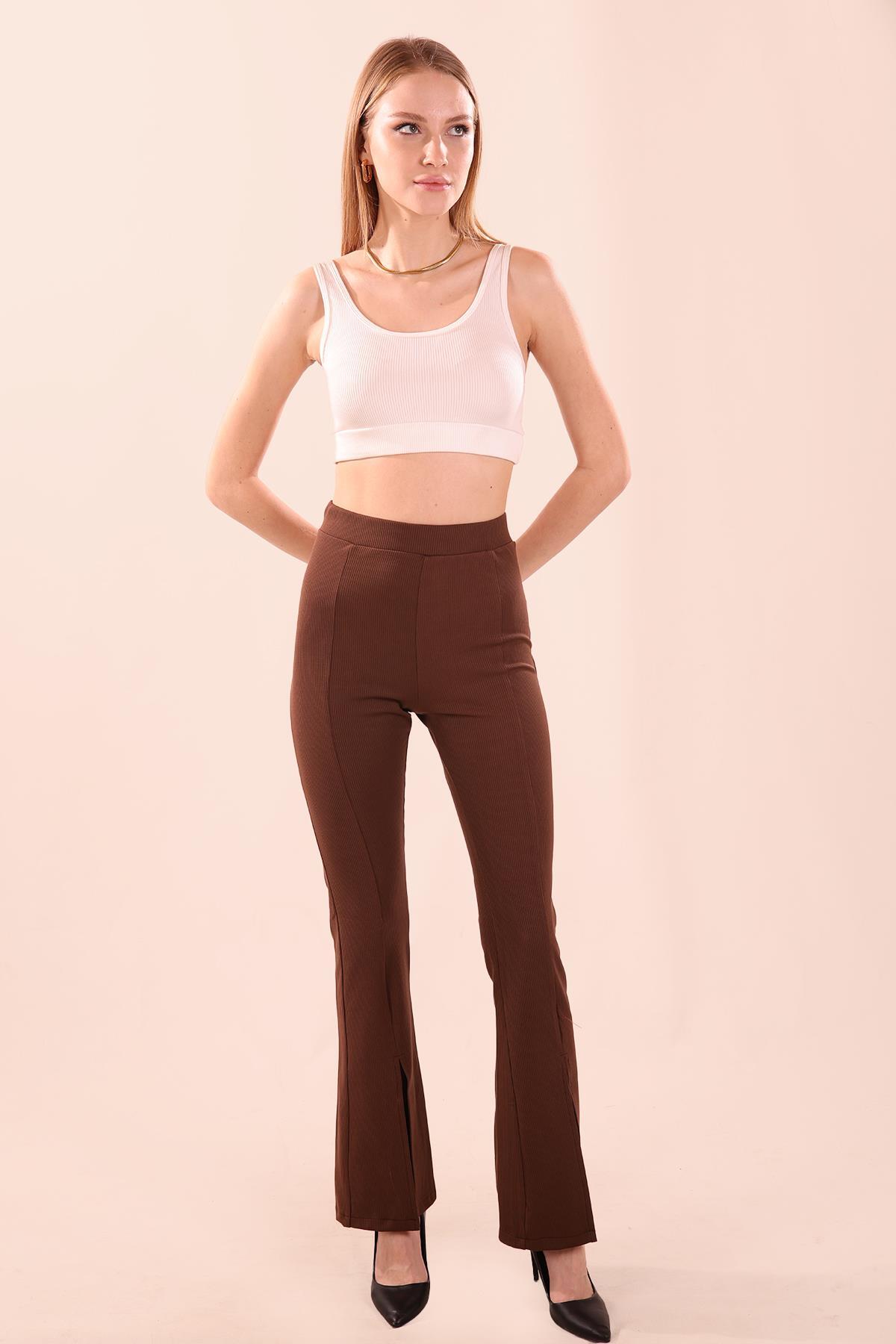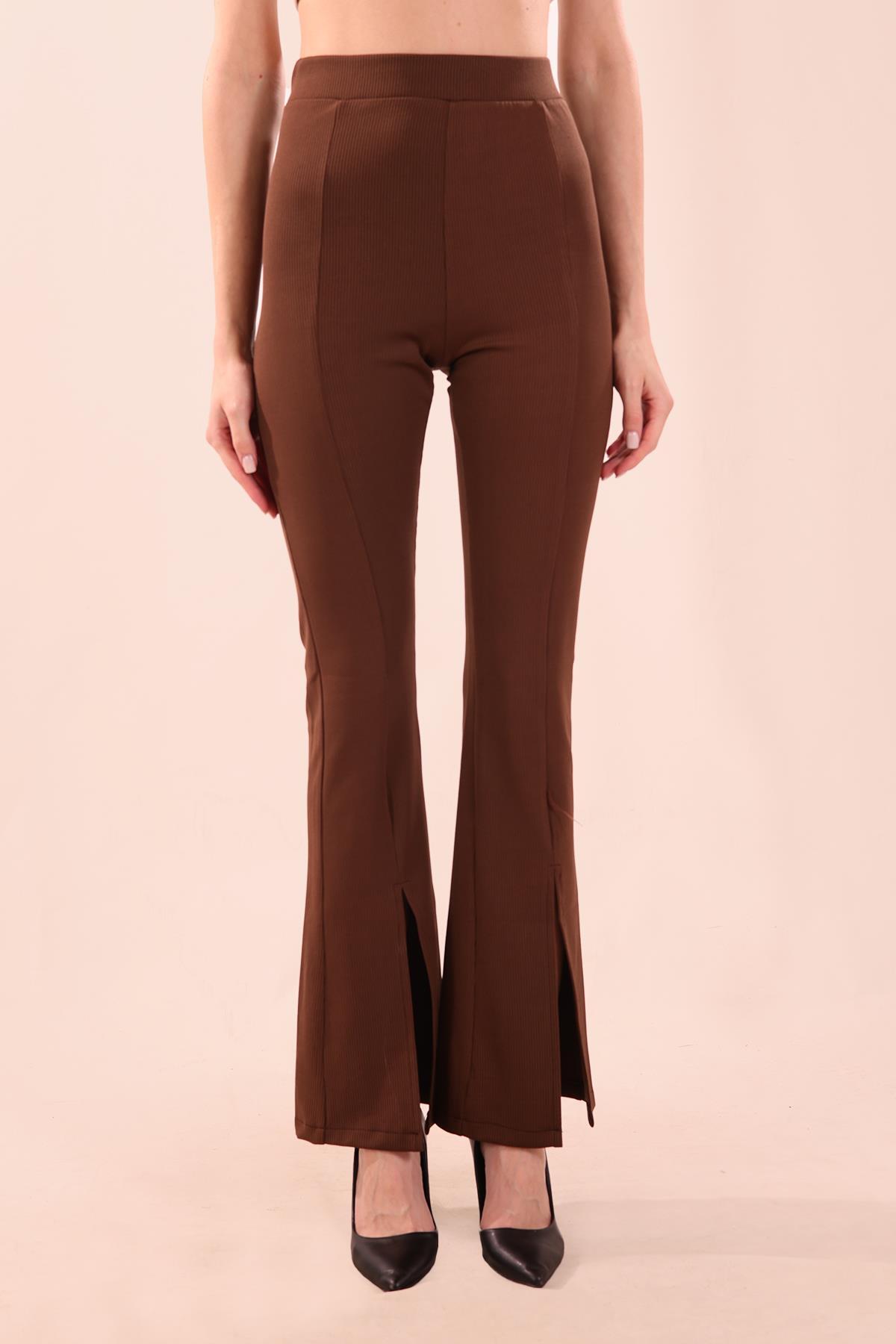 Kahve İspanyol Paça Yırtmaçlı Pantolon 6869A