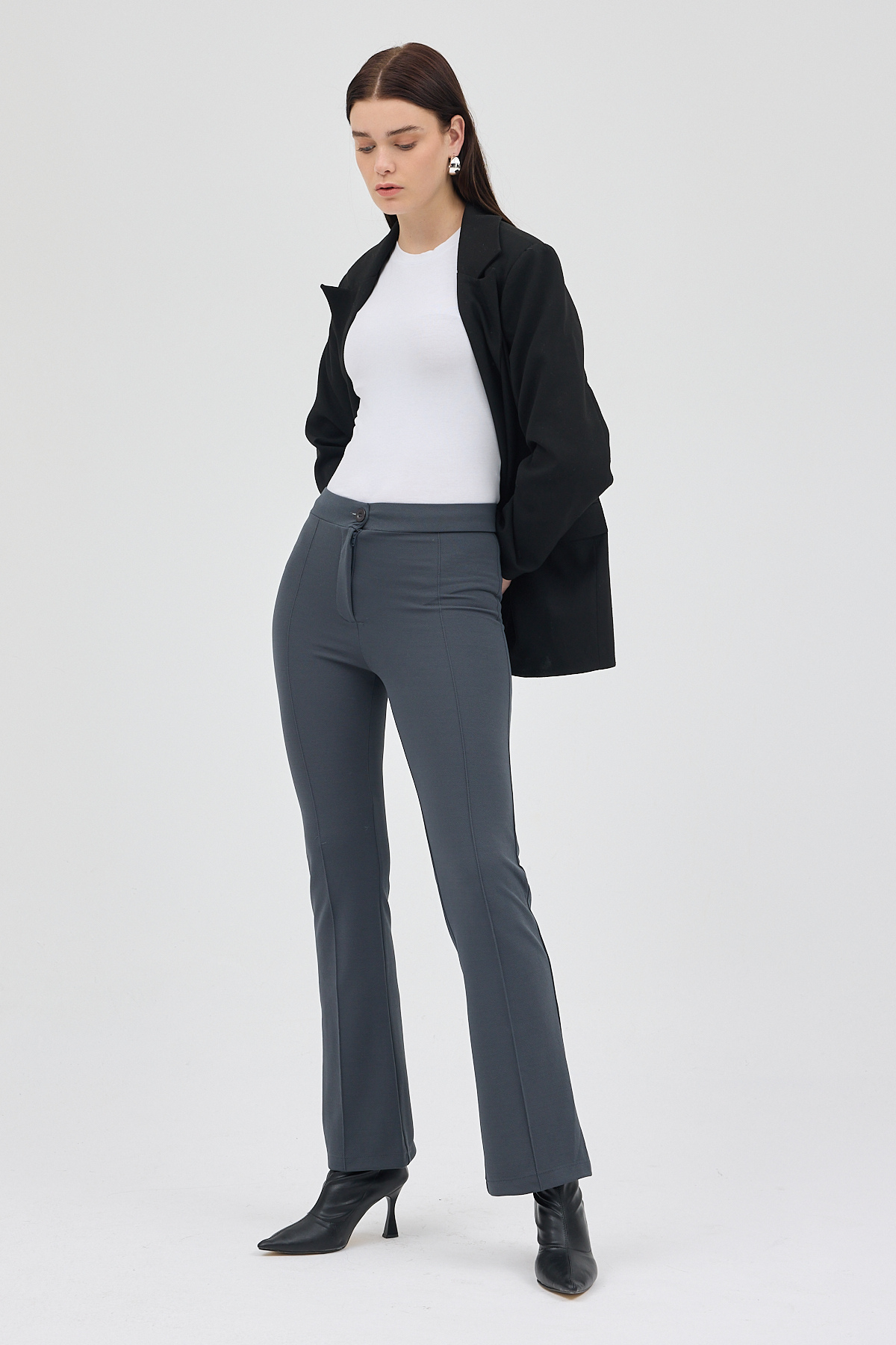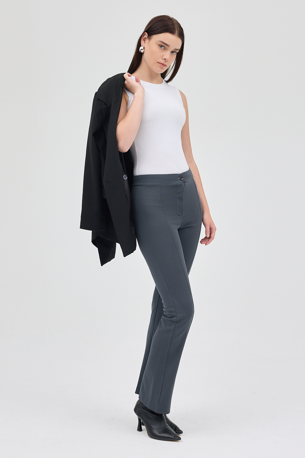 Füme Straight/Düz Kesim Yüksek Bel Nervür Dikişli Örme Pantolon TCR-6873A