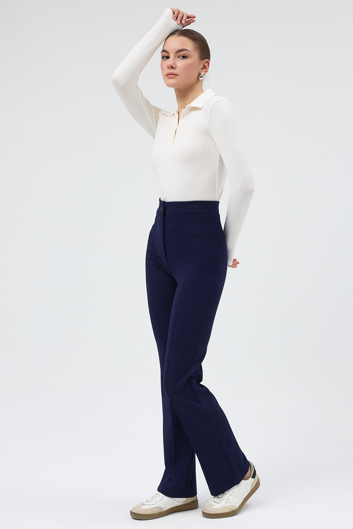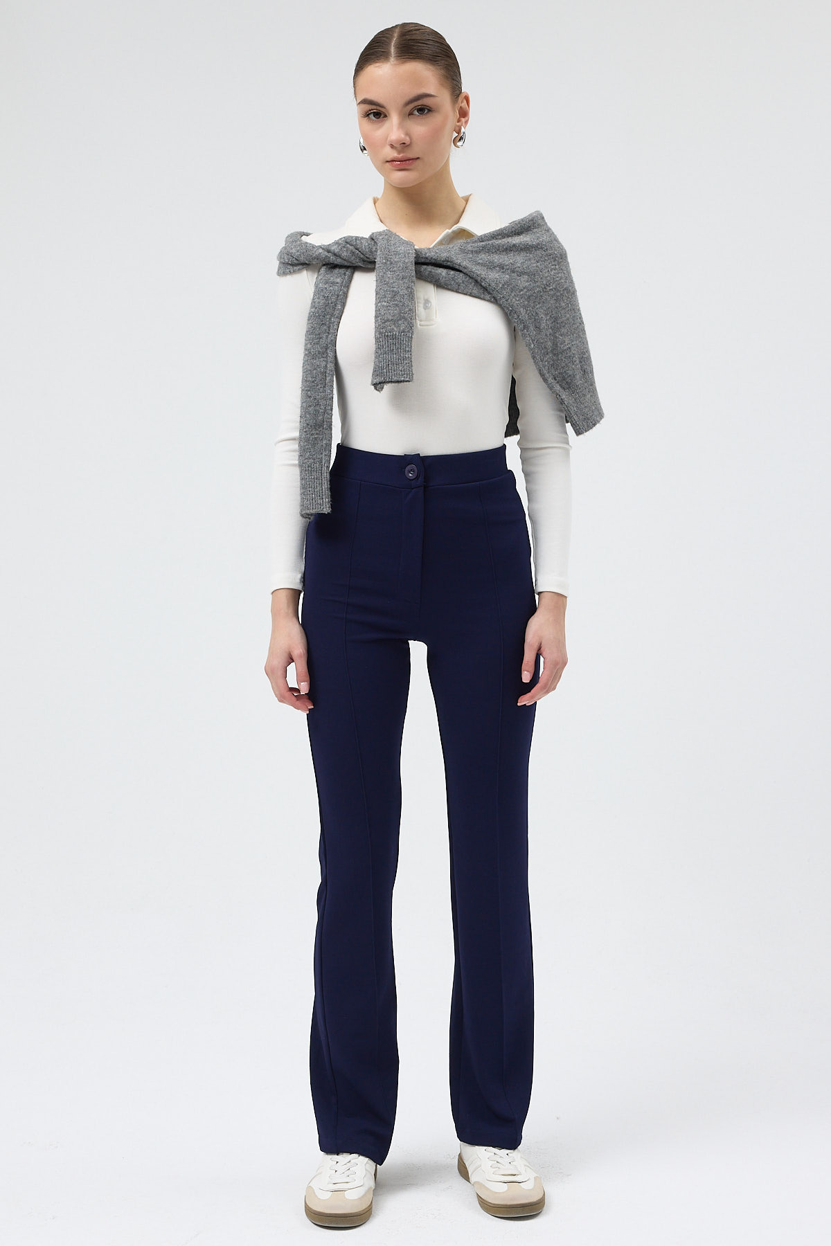 Laci Straight/Düz Kesim Yüksek Bel Nervür Dikişli Örme Pantolon TCR-6873A
