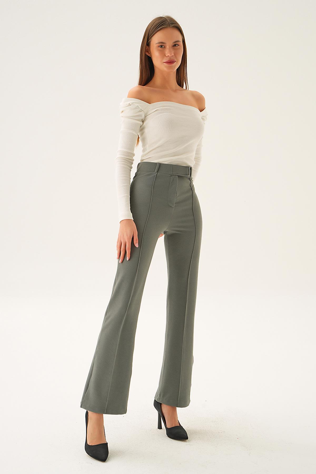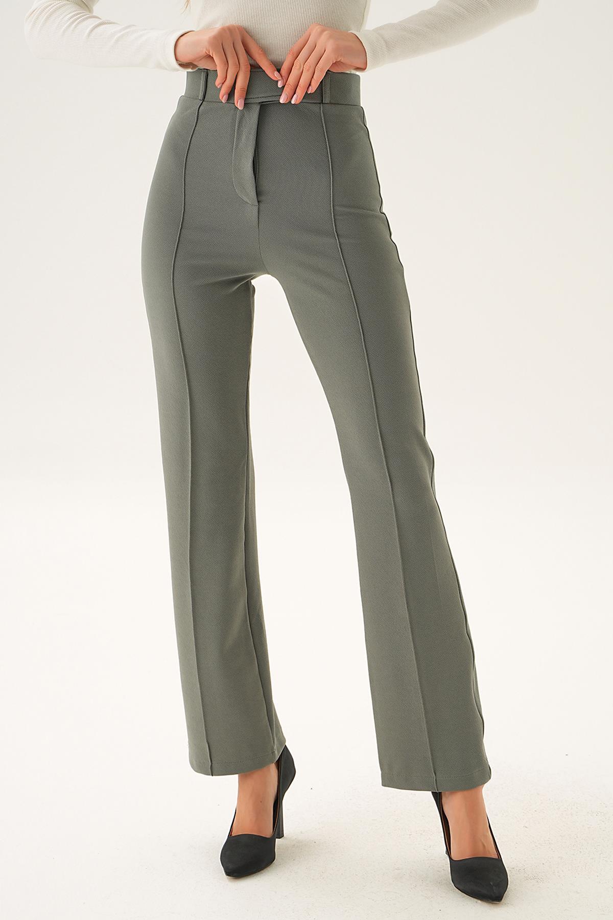 Haki Pileli Geniş Paça Pantolon 3867