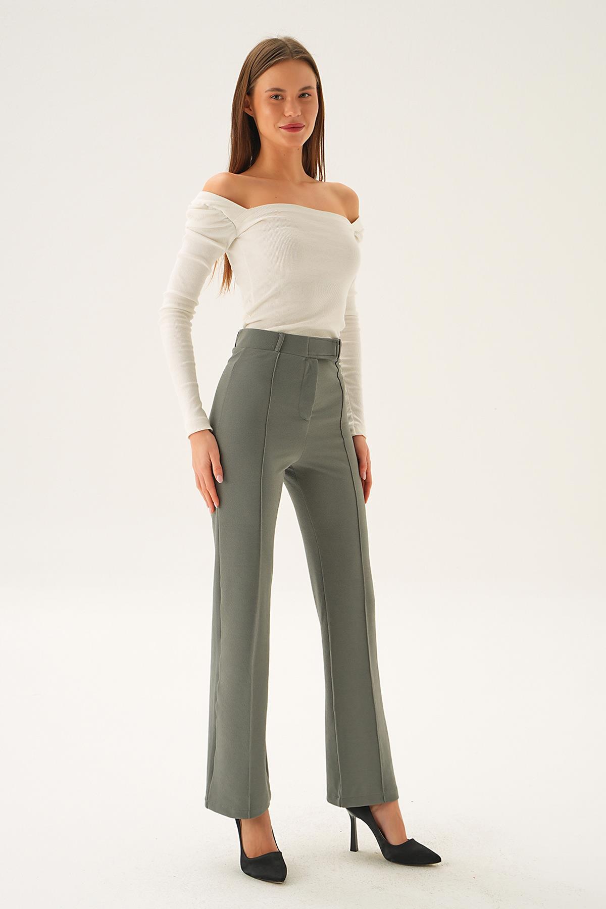 Haki Pileli Palazzo Pantolon 3871 - RAYS Haki Pileli Palazzo Pantolon 3871 - RAYS (1)