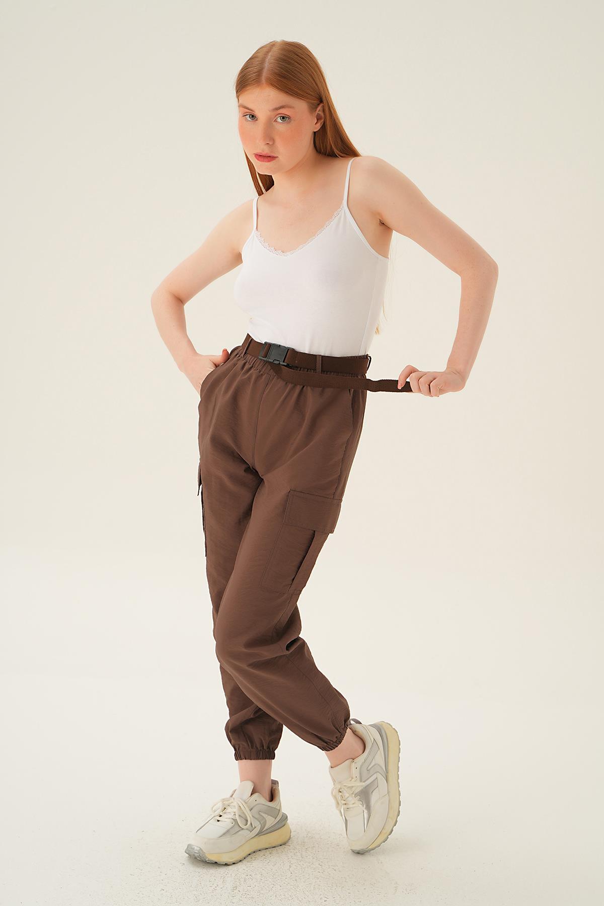 Acı Kahve Kemerli Paraşüt Pantolon 6888A