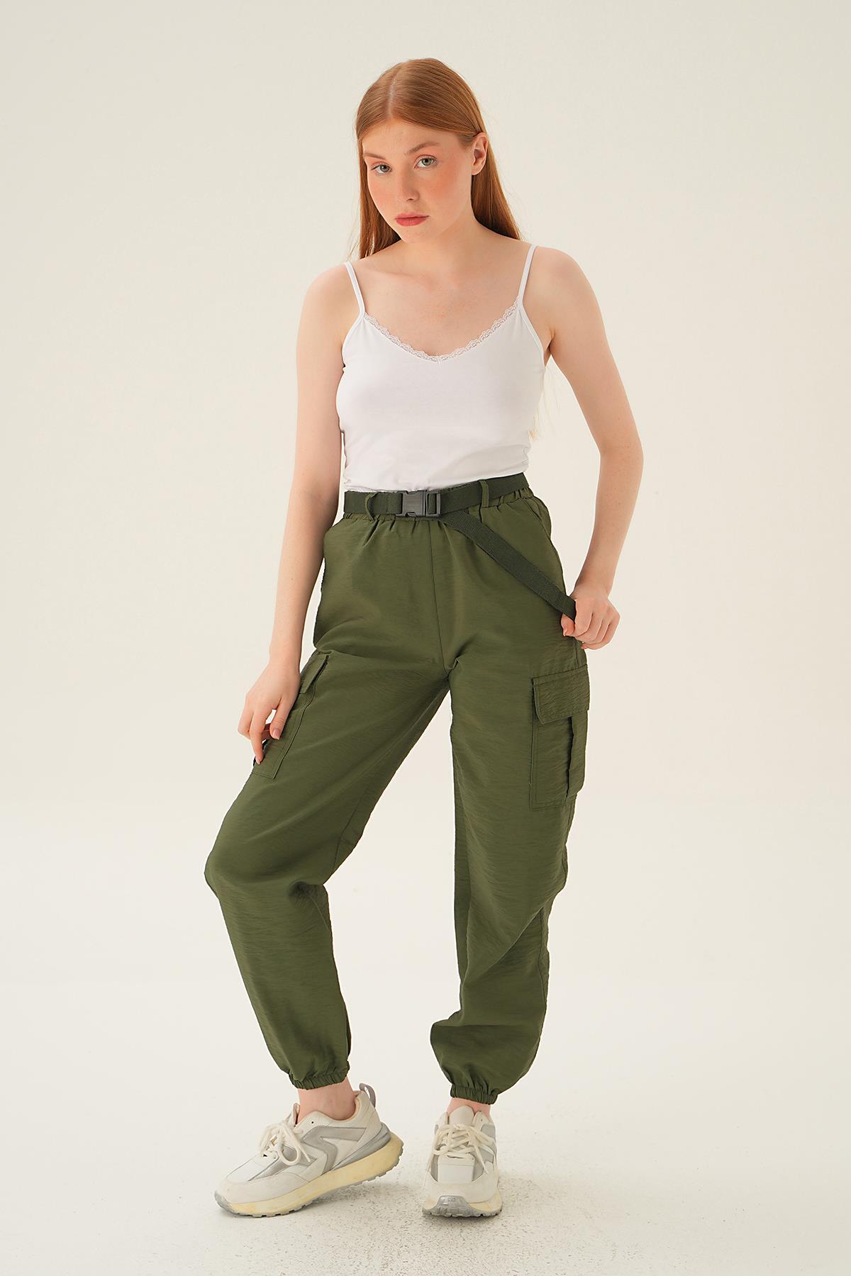 Haki Kemerli Paraşüt Pantolon 6888A