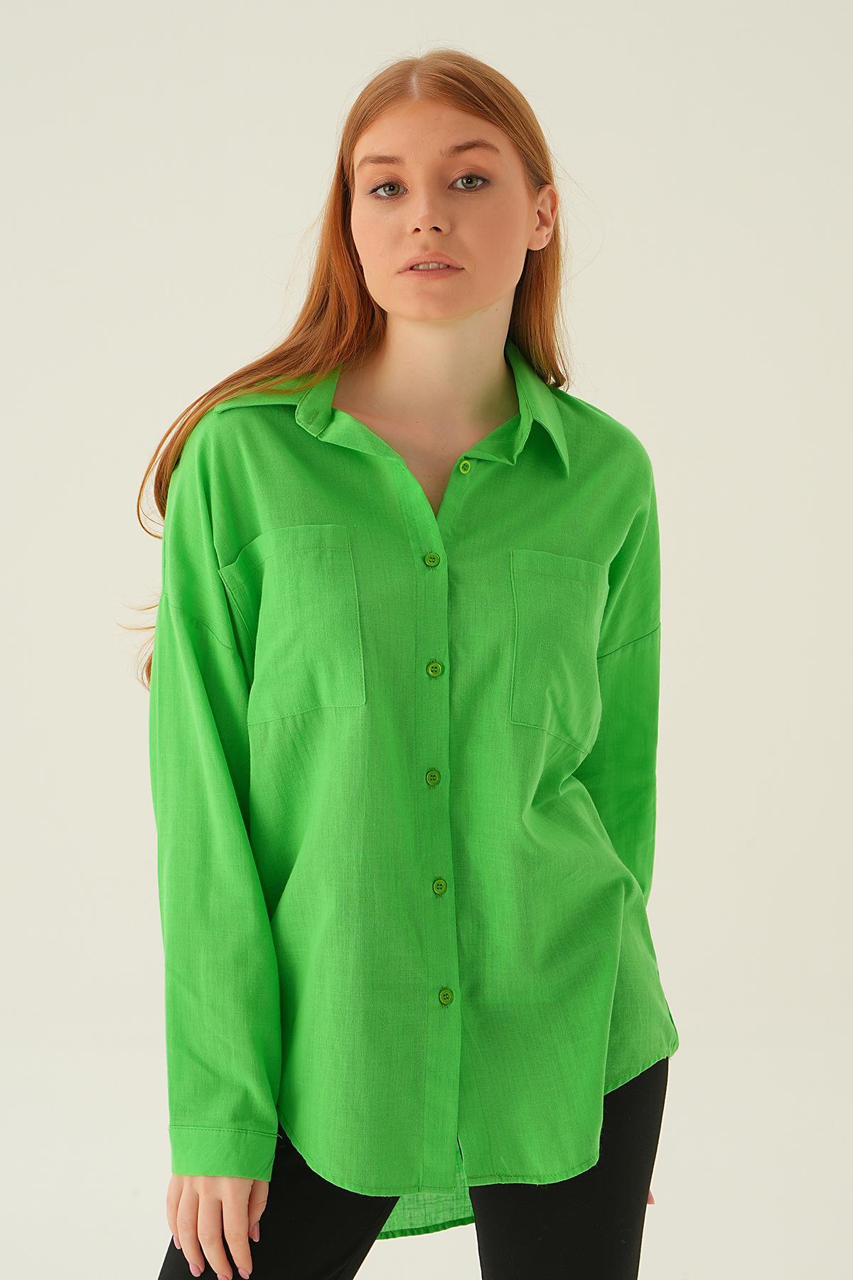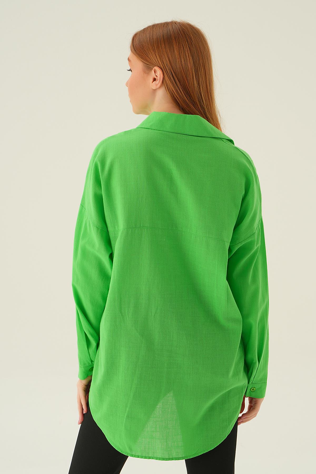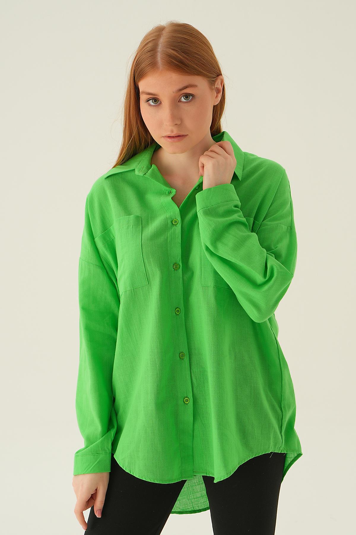 Fıstık Yeşili Çift Cep Gömlek 6891A