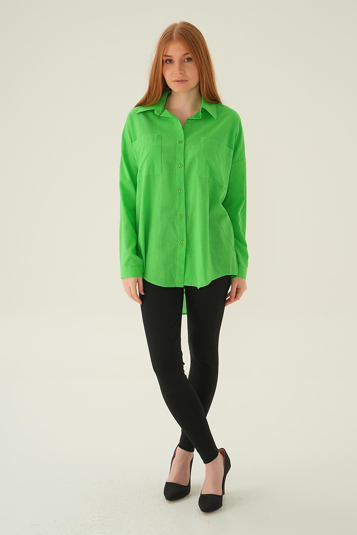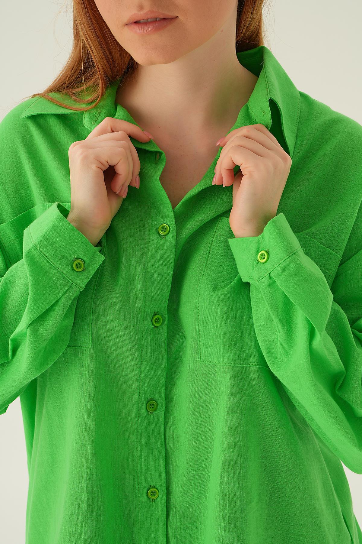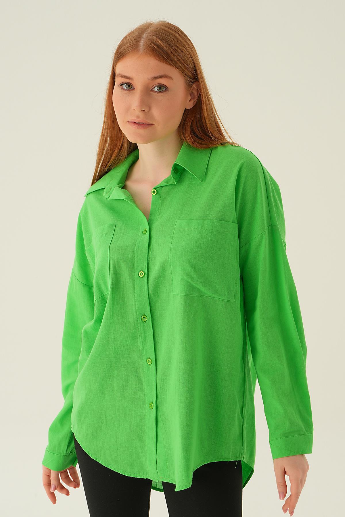 Fıstık Yeşili Çift Cep Gömlek 6891A