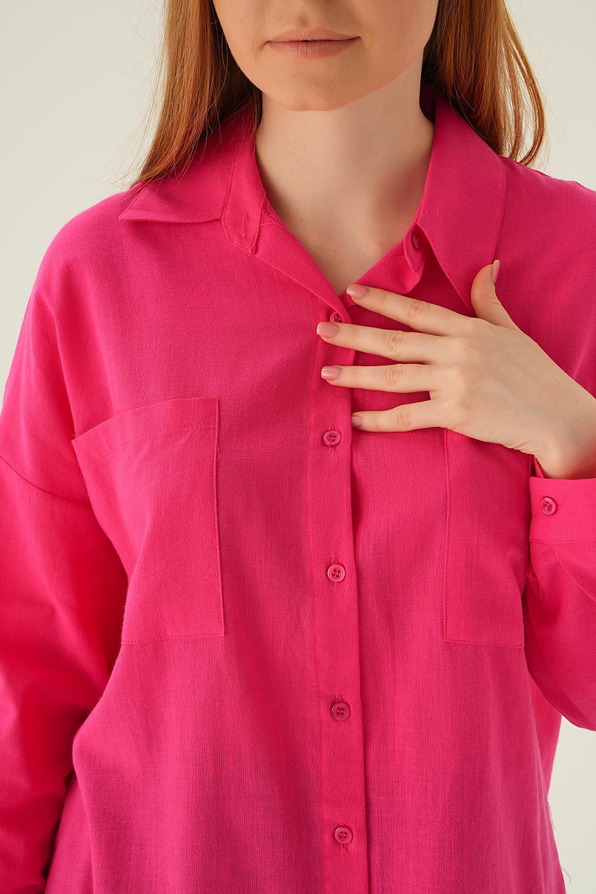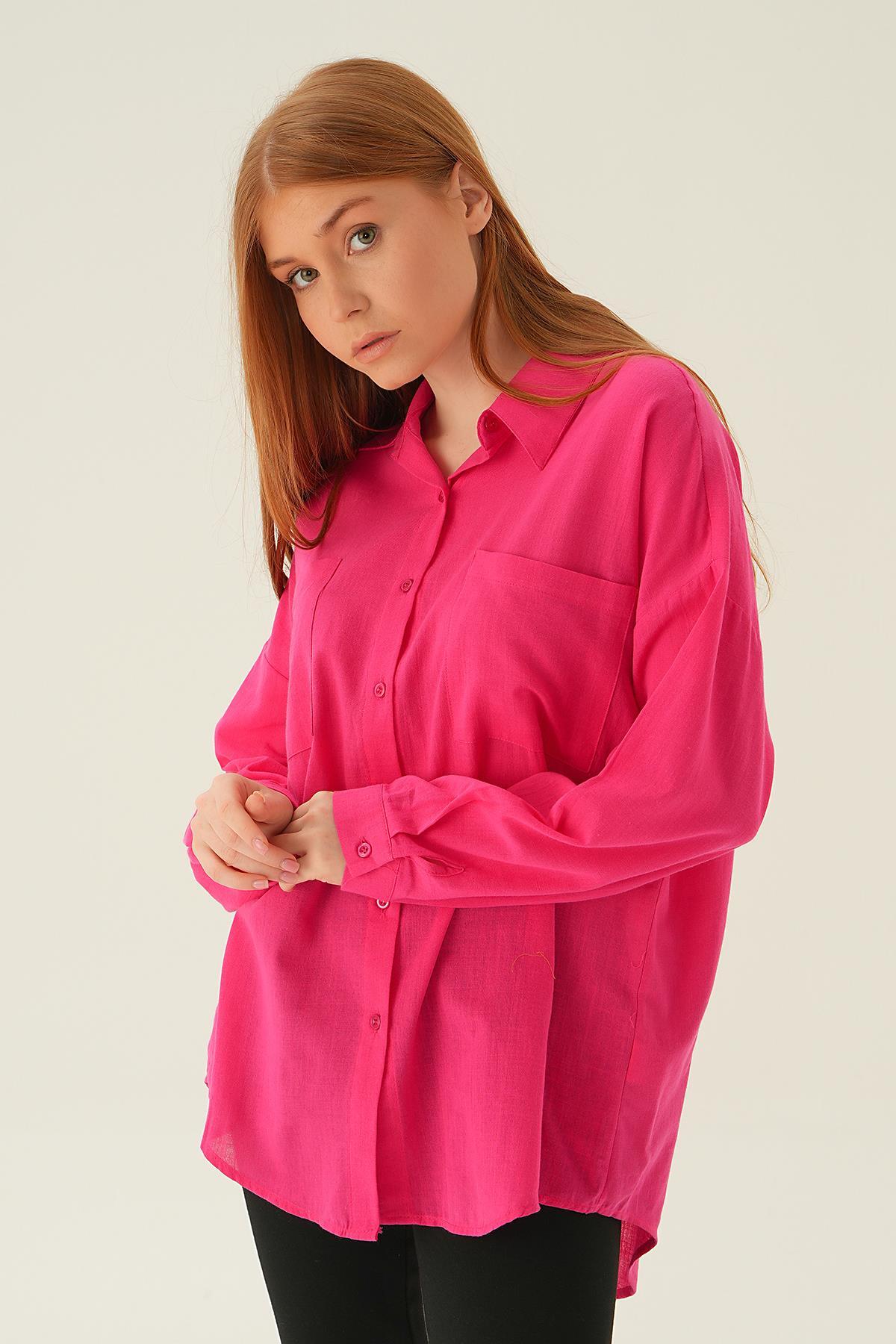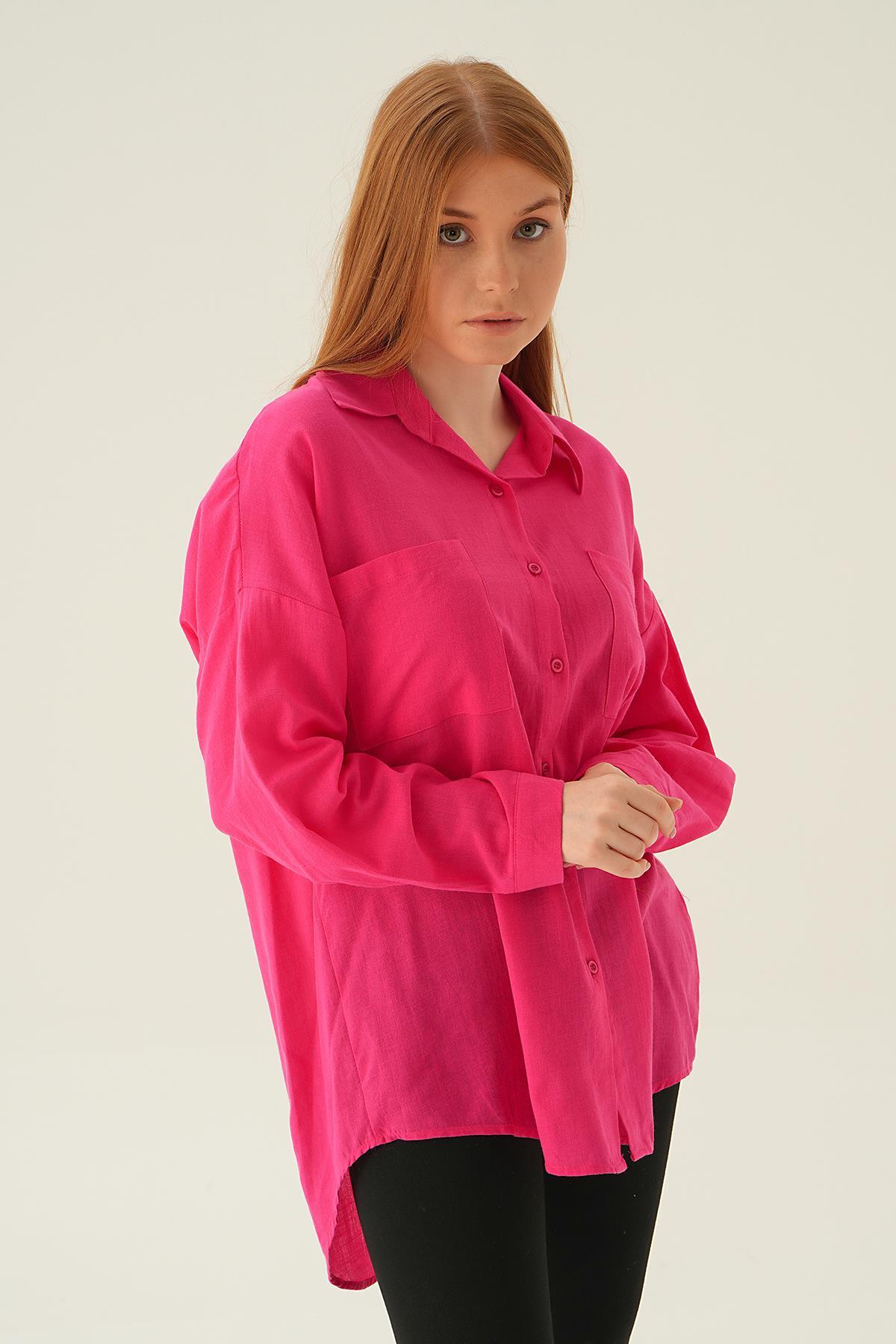Pembe Çizgili Oversize Gömlek 5460 - RAYS Pembe Çizgili Oversize Gömlek 5460 - RAYS (1)